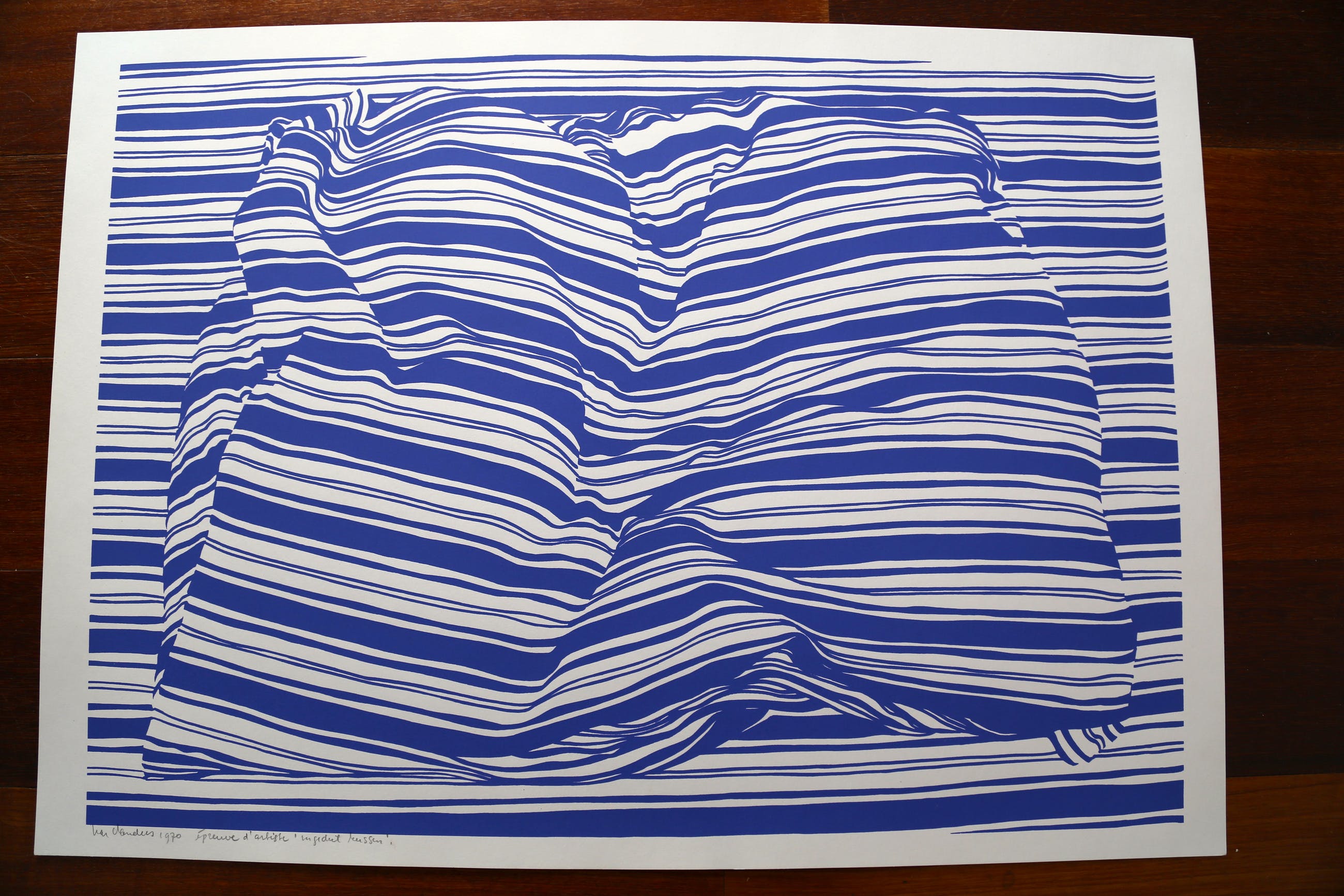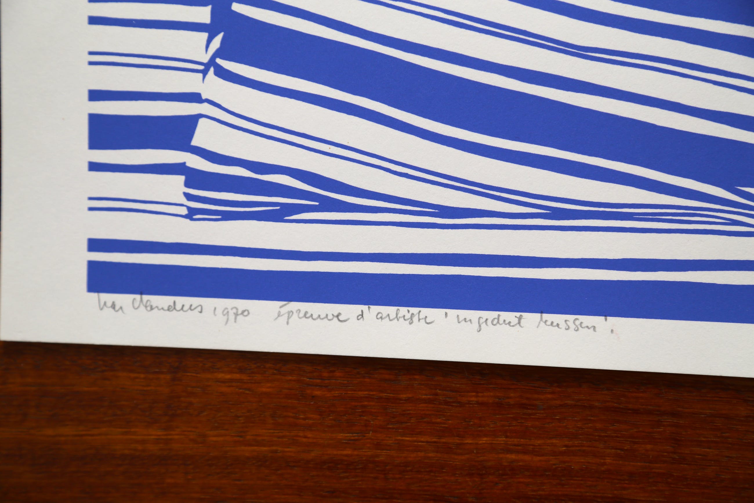 Zeefdruk, epreuve d'artiste blauw. Afbeelding zelf 64 x 46 cm.