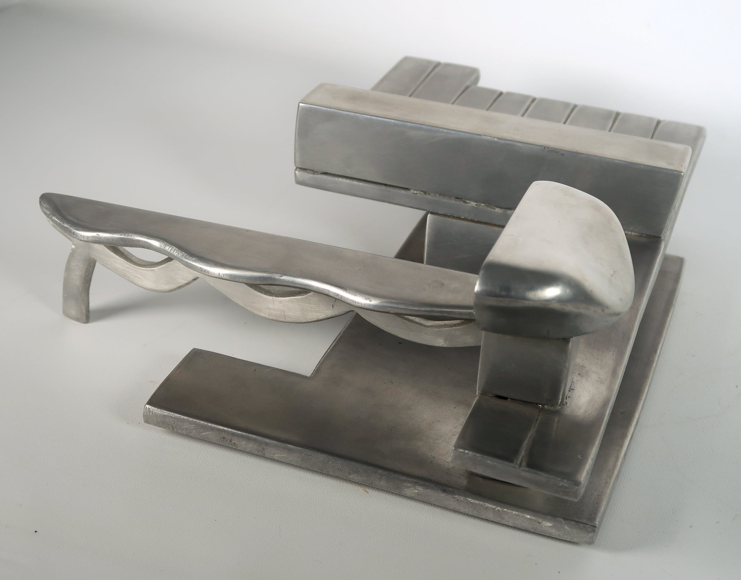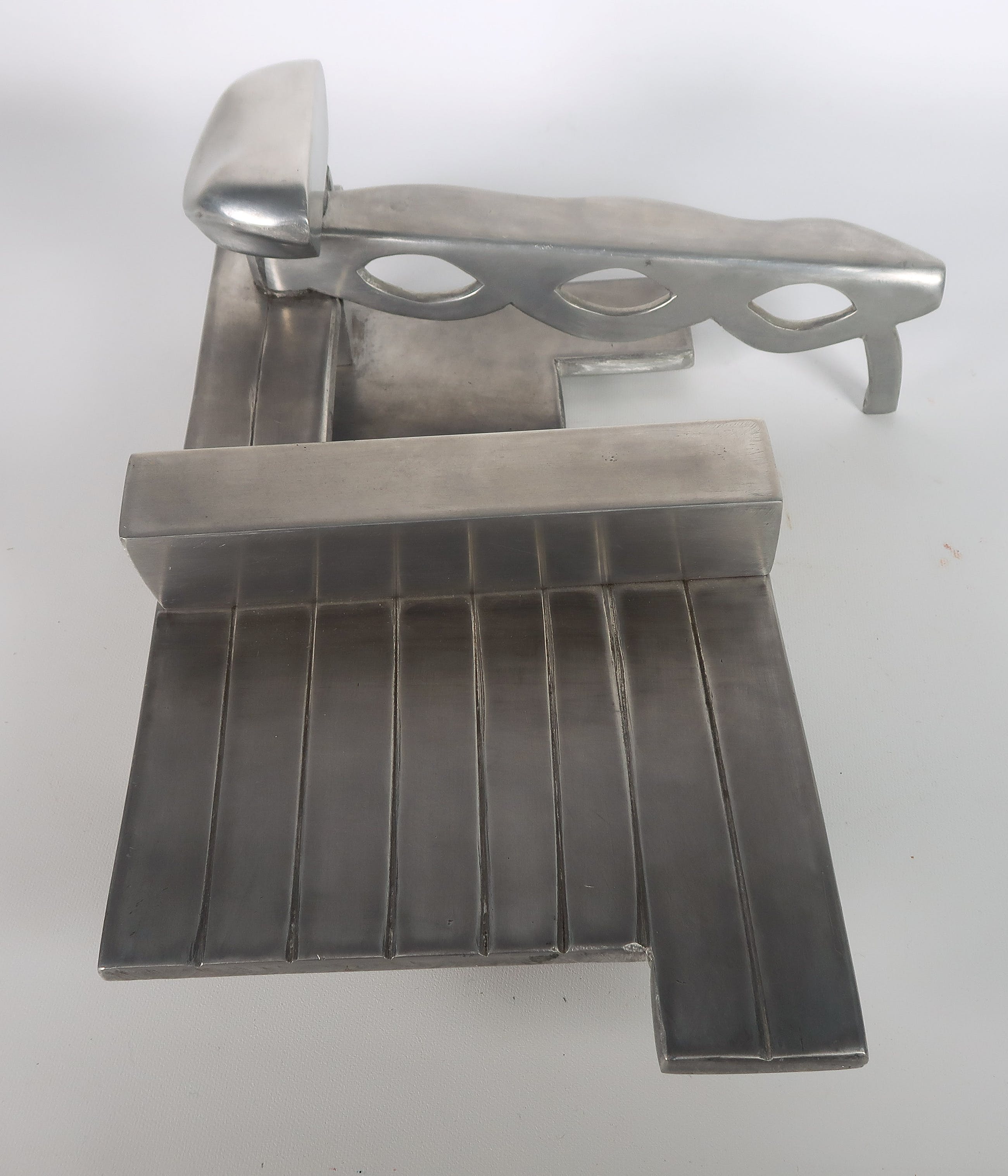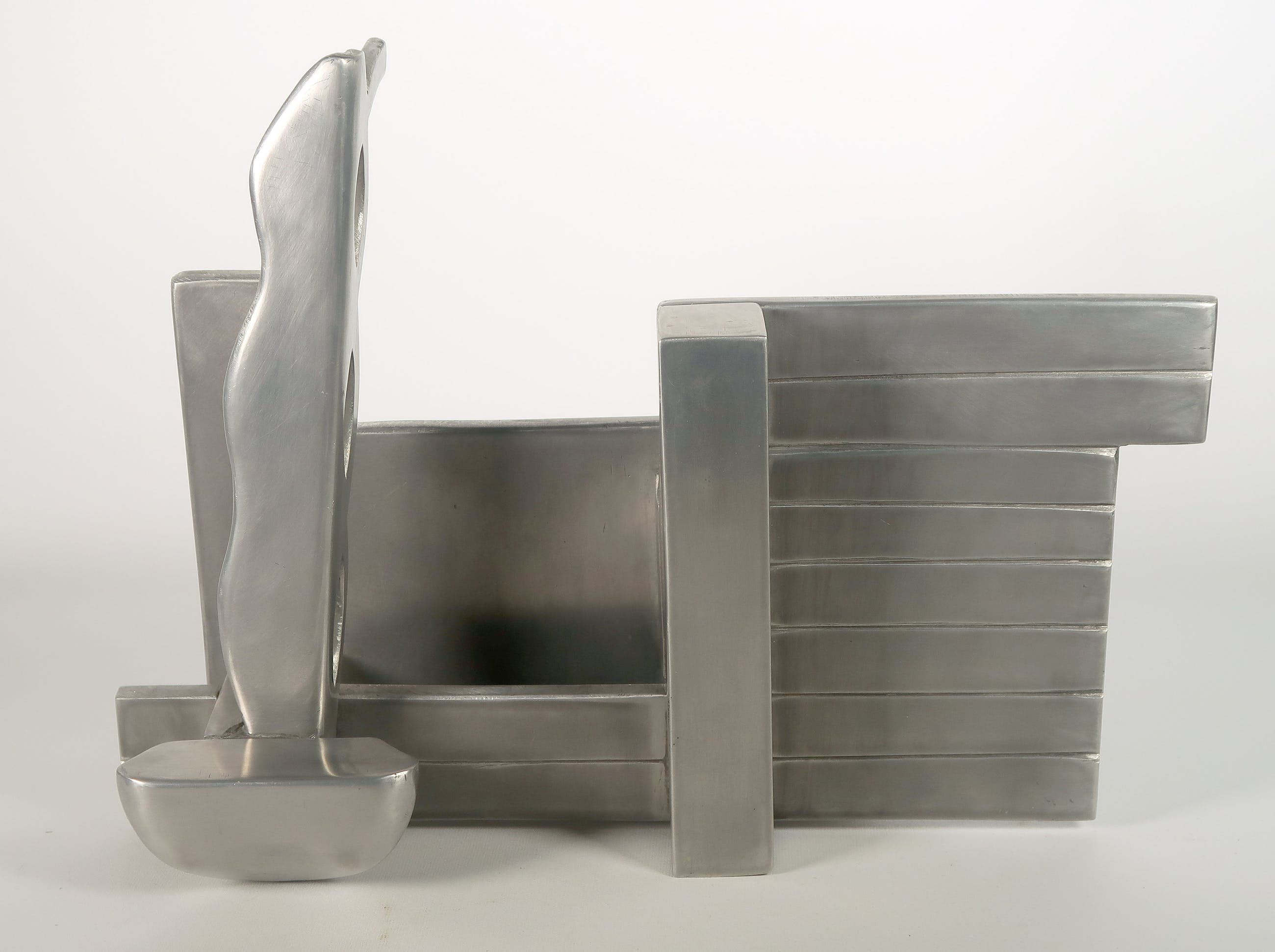 Beeld van aluminium van Harald Schole. Een belangrijk thema in het werk van Schole, is de behoefte van de mens om middels de natuur de grenzen van het ‘mens zijn’ te ervaren. Dit reflecteert zich in beelden waar elementen als deur- of raamvormen worden geïntroduceerd.