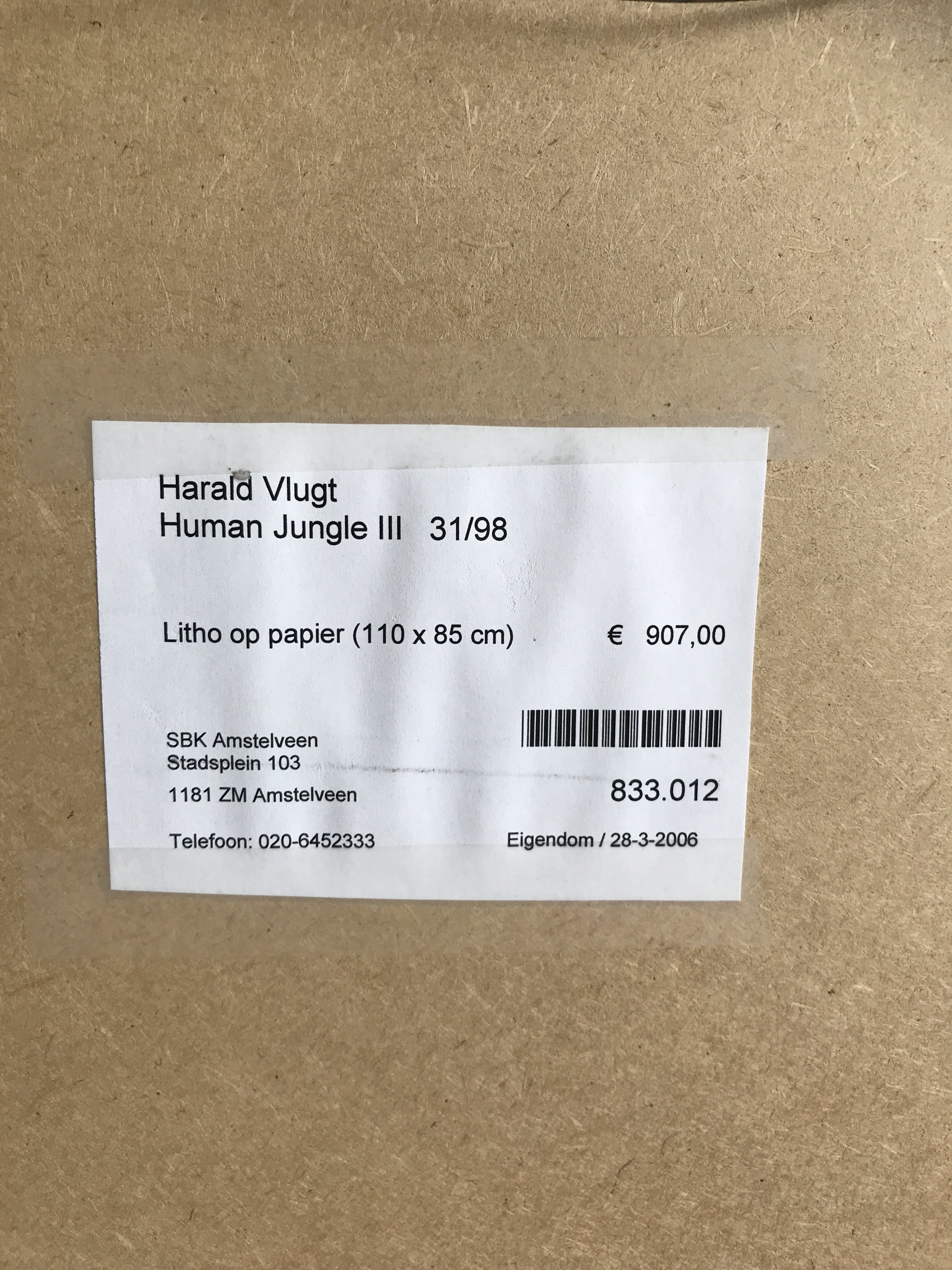 Het werk is af te halen op locatie. Als koper dient u zelf verpakkingsmateriaal mee te nemen. De locatie is: Amstelveen, Nederland