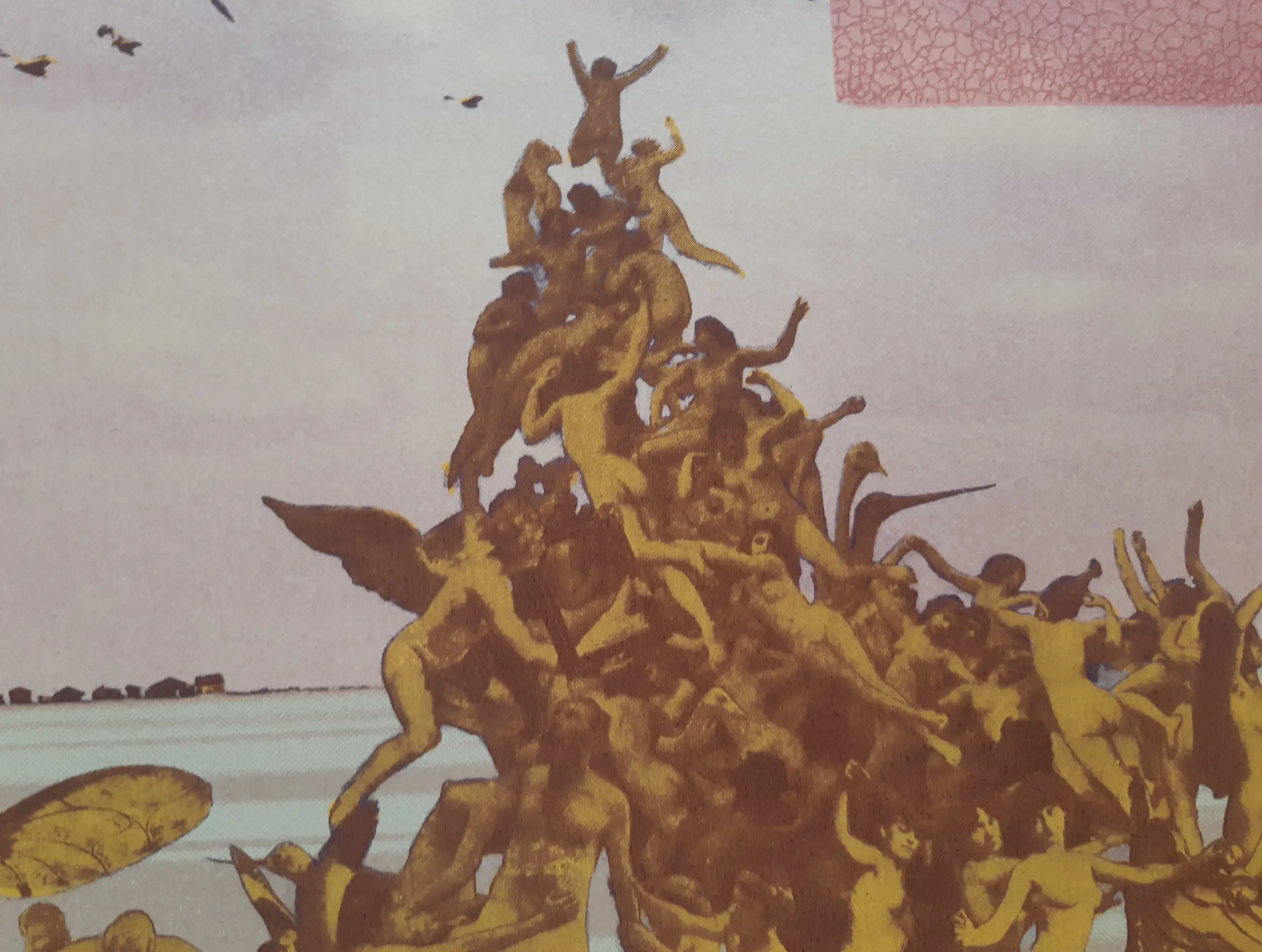 Groot en detailrijk werk van Harald Vlugt, zonder marge afgedrukt op stevig papier. Door de maker gesigneerd, gedateerd en genummerd. Met blindstemples. De litho verkeert in nieuwstaat.