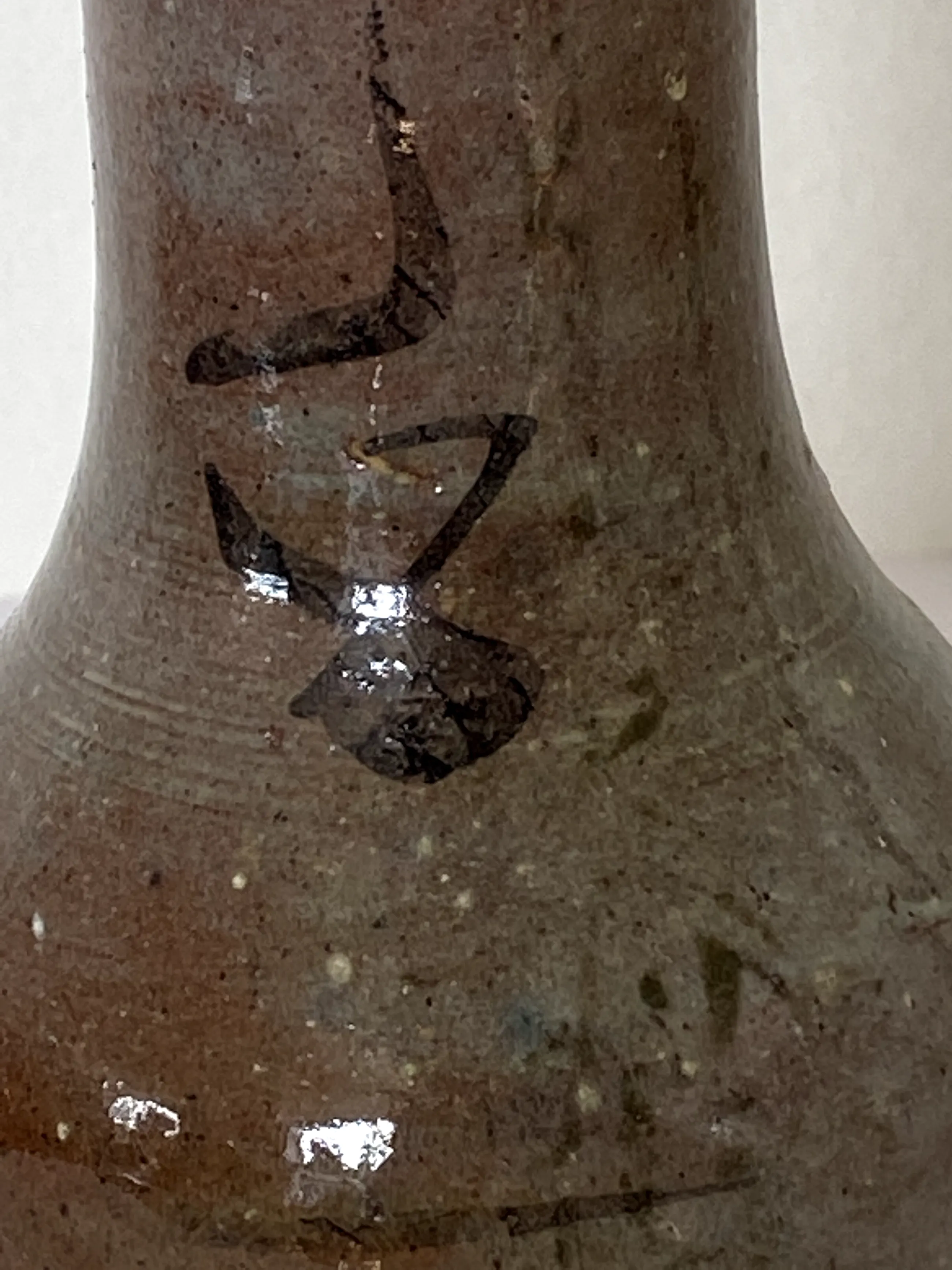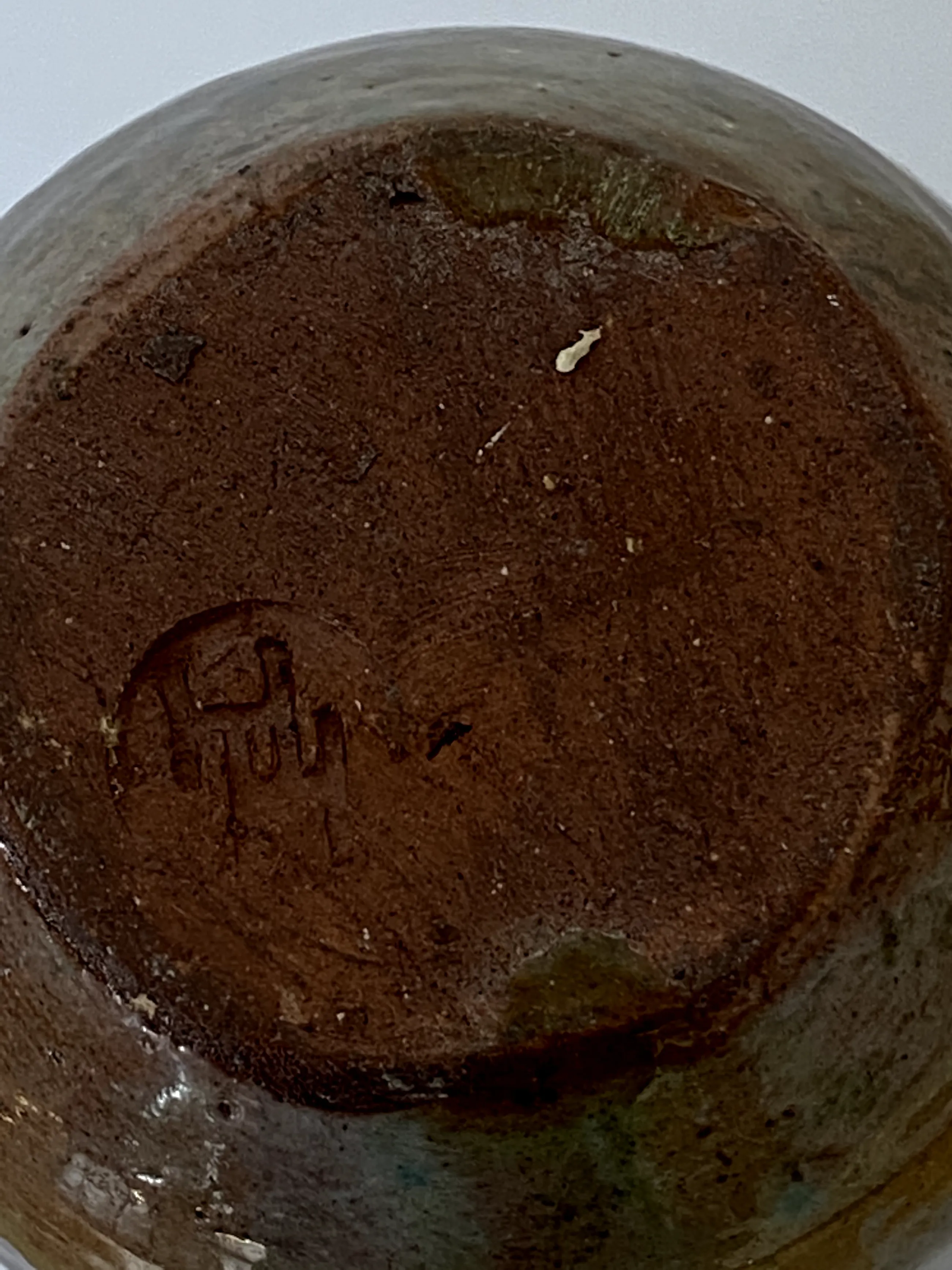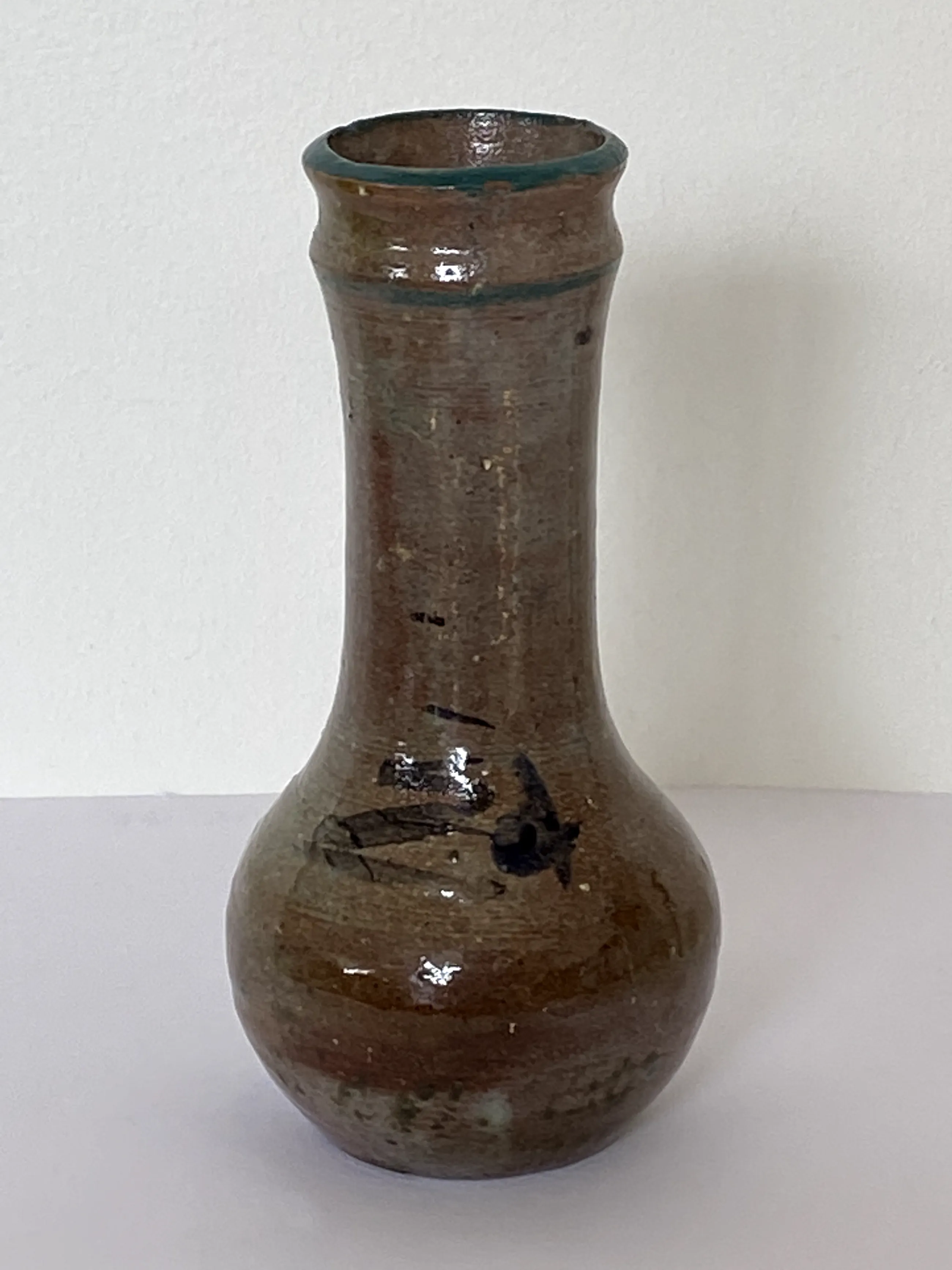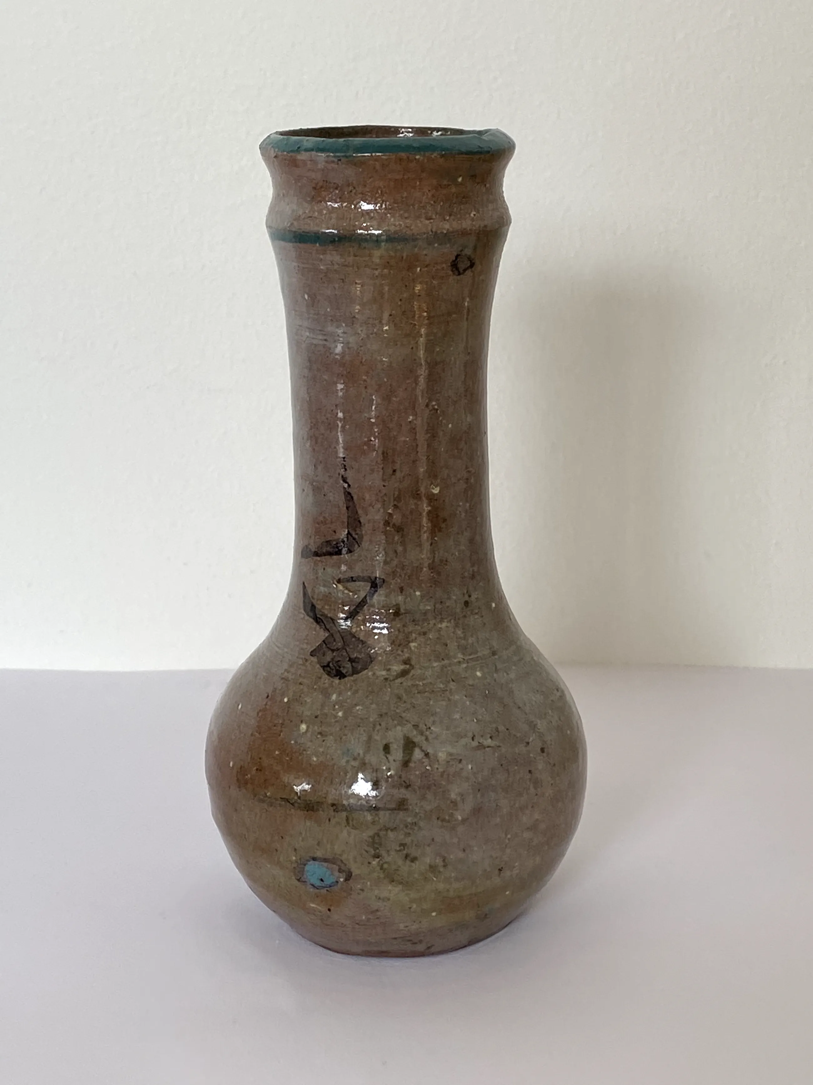 Mooi klein vaasje. Vervaardigd door de schilder/keramist Harm Kamerlingh Onnes. Circa 1960. Gesigneerd aan de onderzijde. Mooi poëtisch abstract beschilderd.