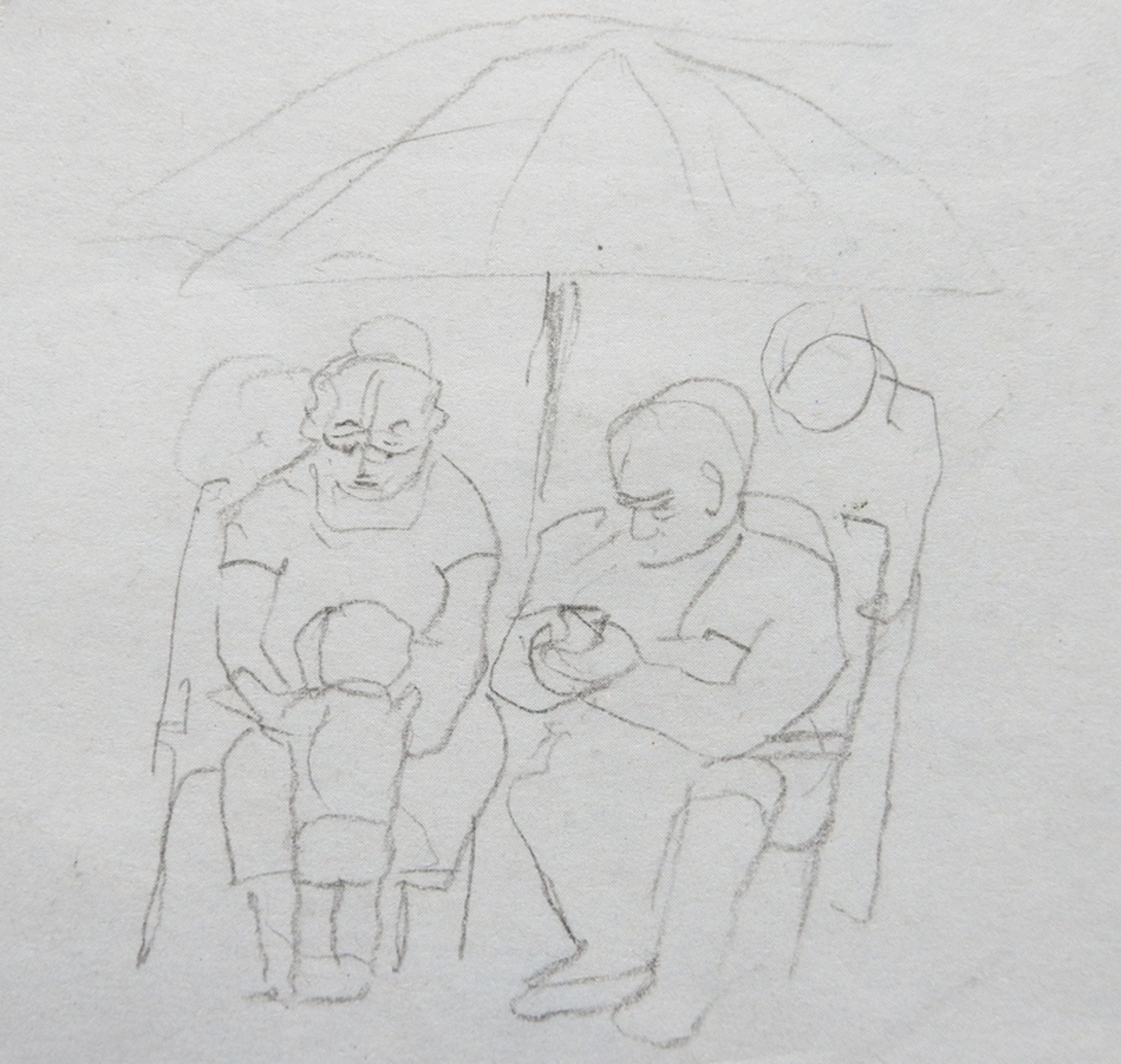 Het betreffen twee schetsen op een omgevouwen blad.