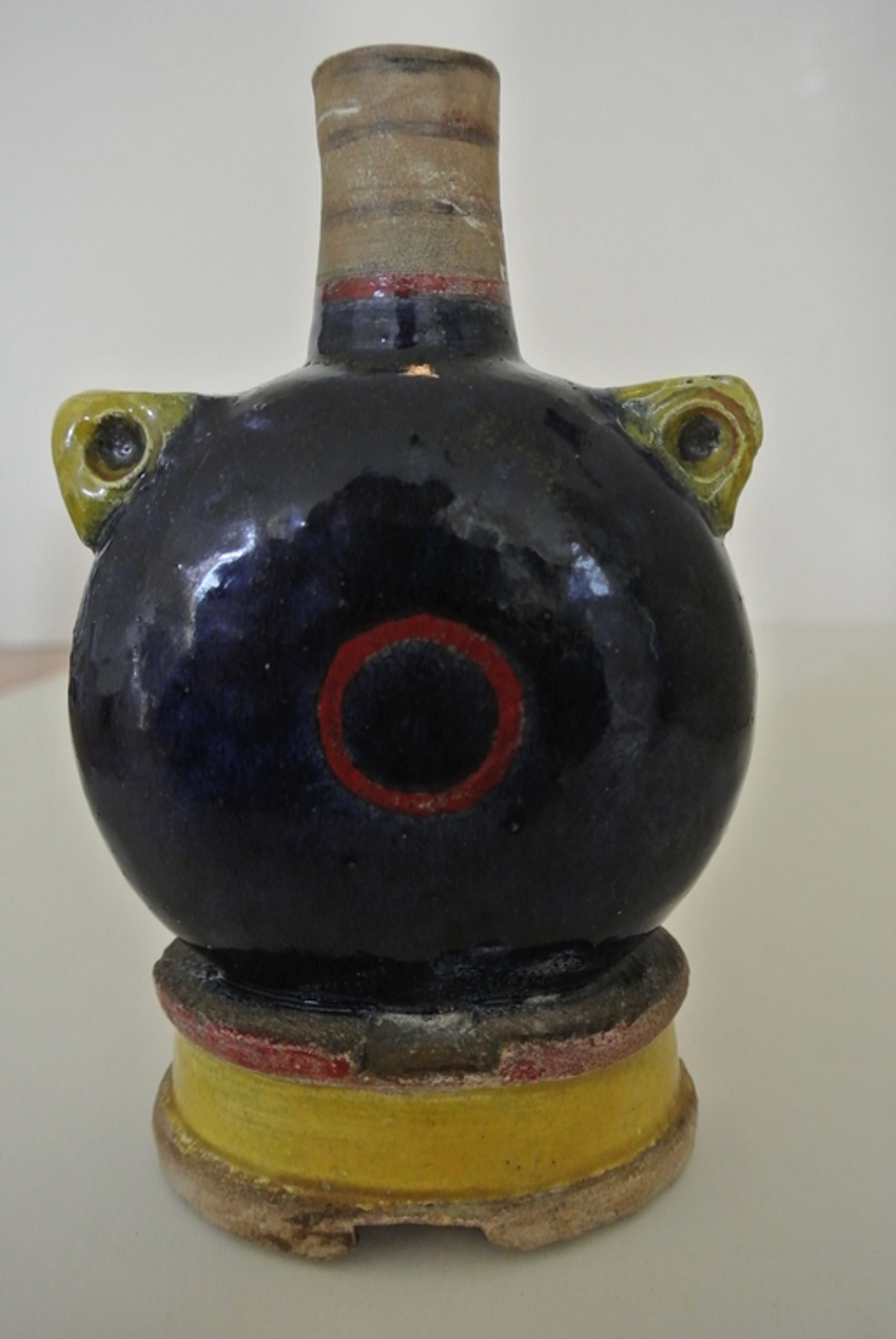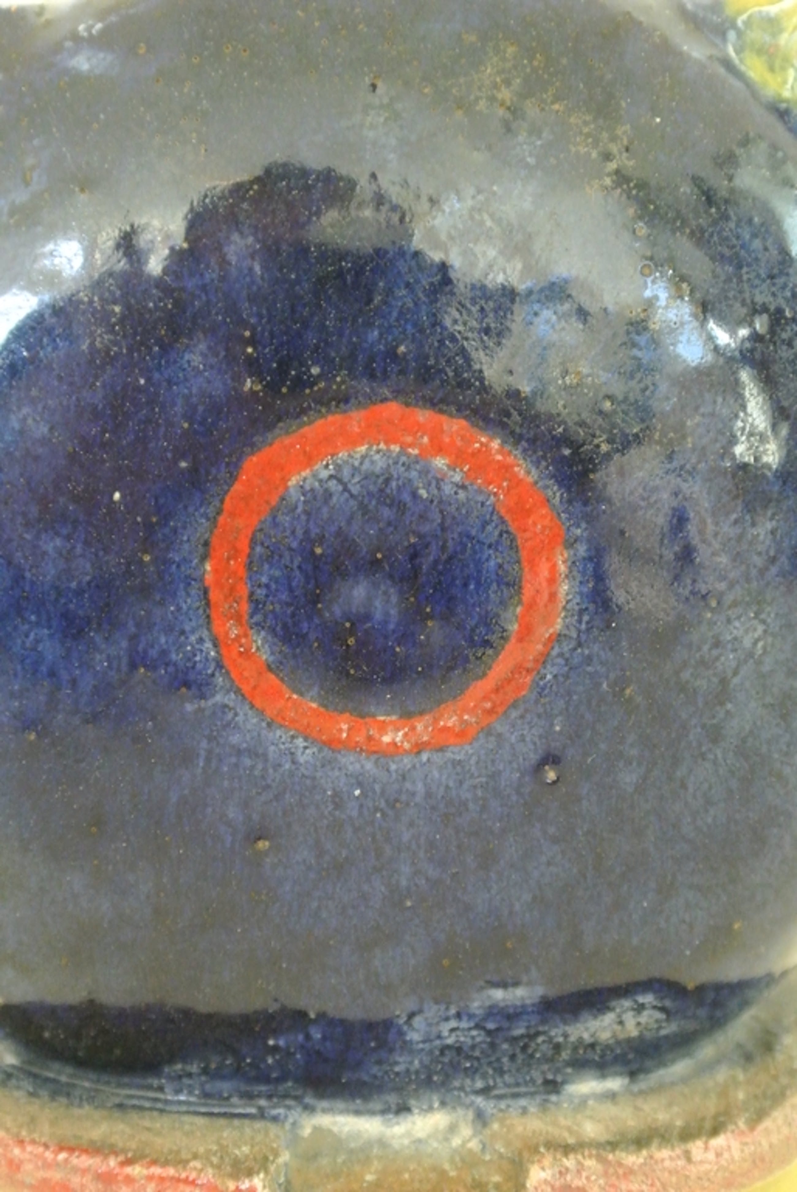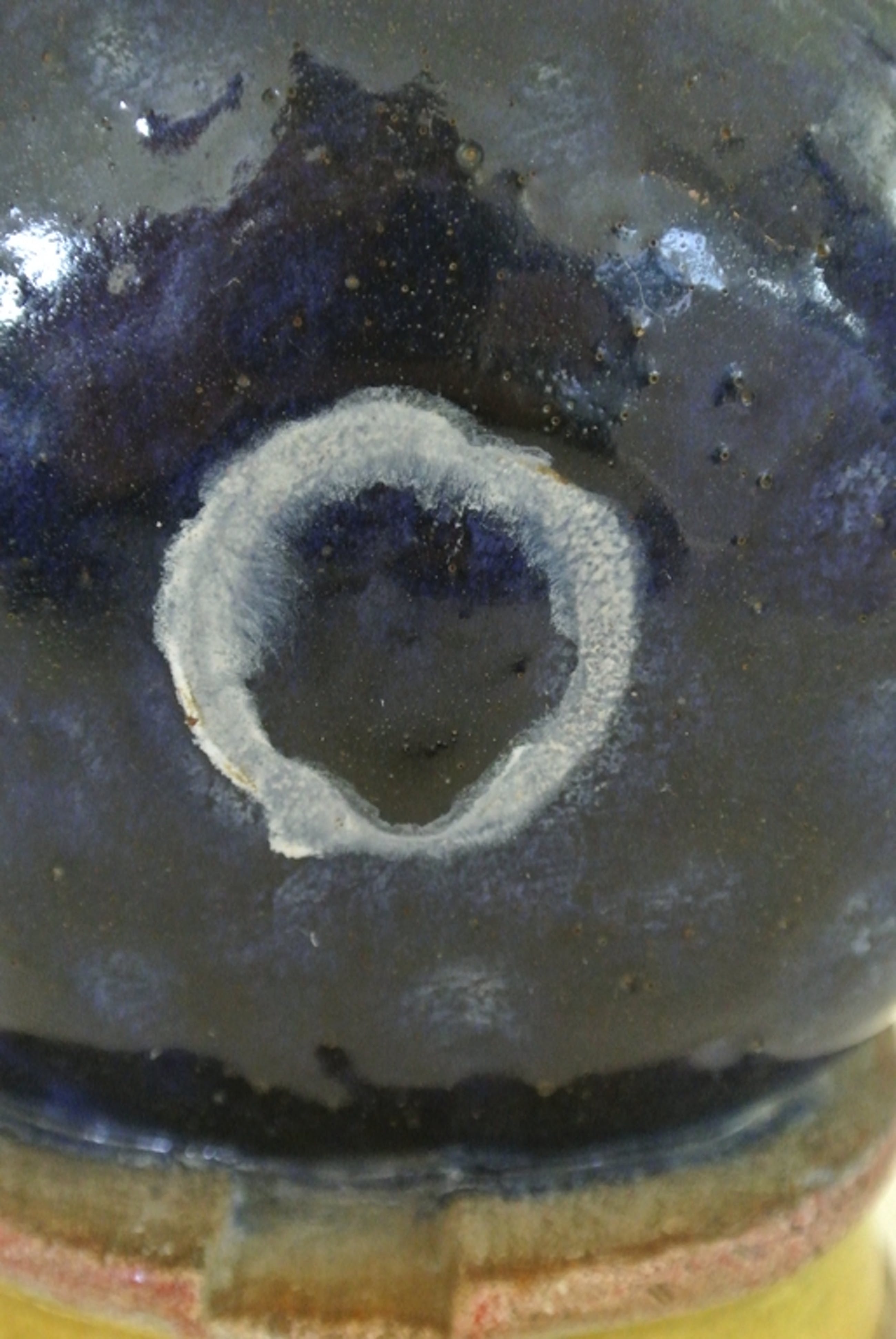 Een perfect glazuur dat niet ging bloeden of zich met een ander glazuur vermengde. ( het witte glazuur aan de achterkant deed dit wel )