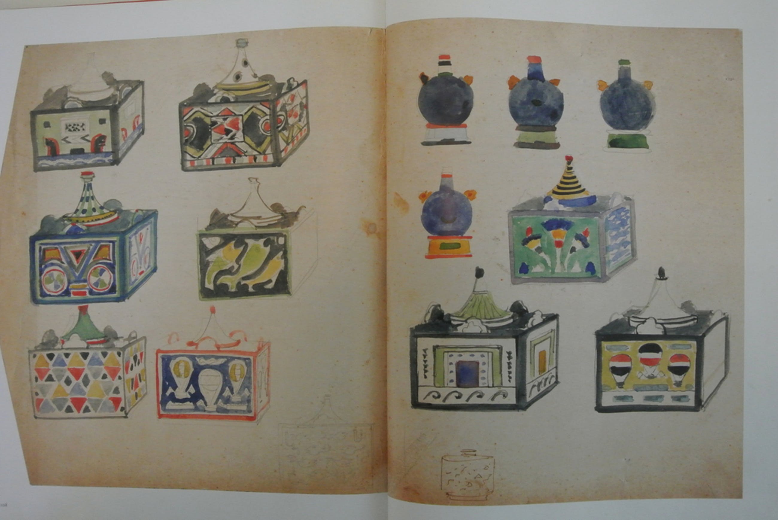 Voordat hij keramisch werk maakte tekende hij vaak de ontwerpen in zijn schetsboek. ( zie foto )
