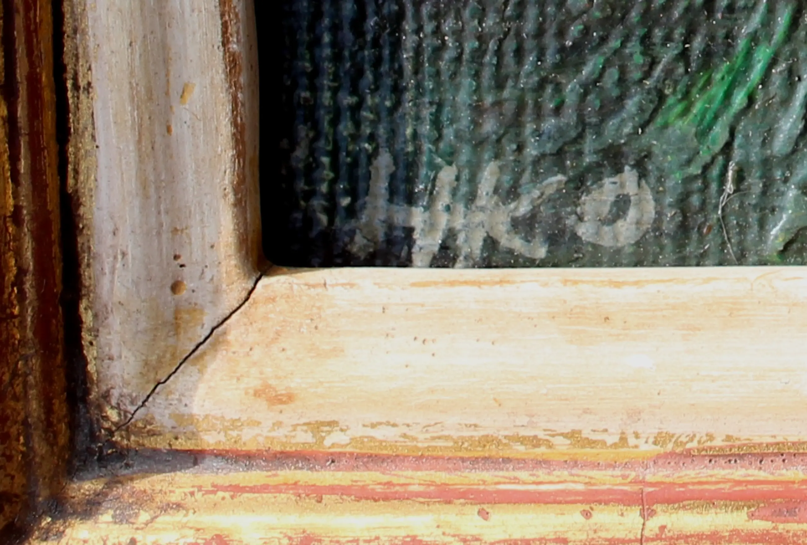 Passe-partout/lijsten: Beschadigingen aan een lijst worden niet beschreven. Indien het werk achter glas is ingelijst en het glas gebroken is, zal dit wel vermeld worden. Passe-partouts worden op geen enkele manier gegarandeerd en ook niet altijd meegezonden.