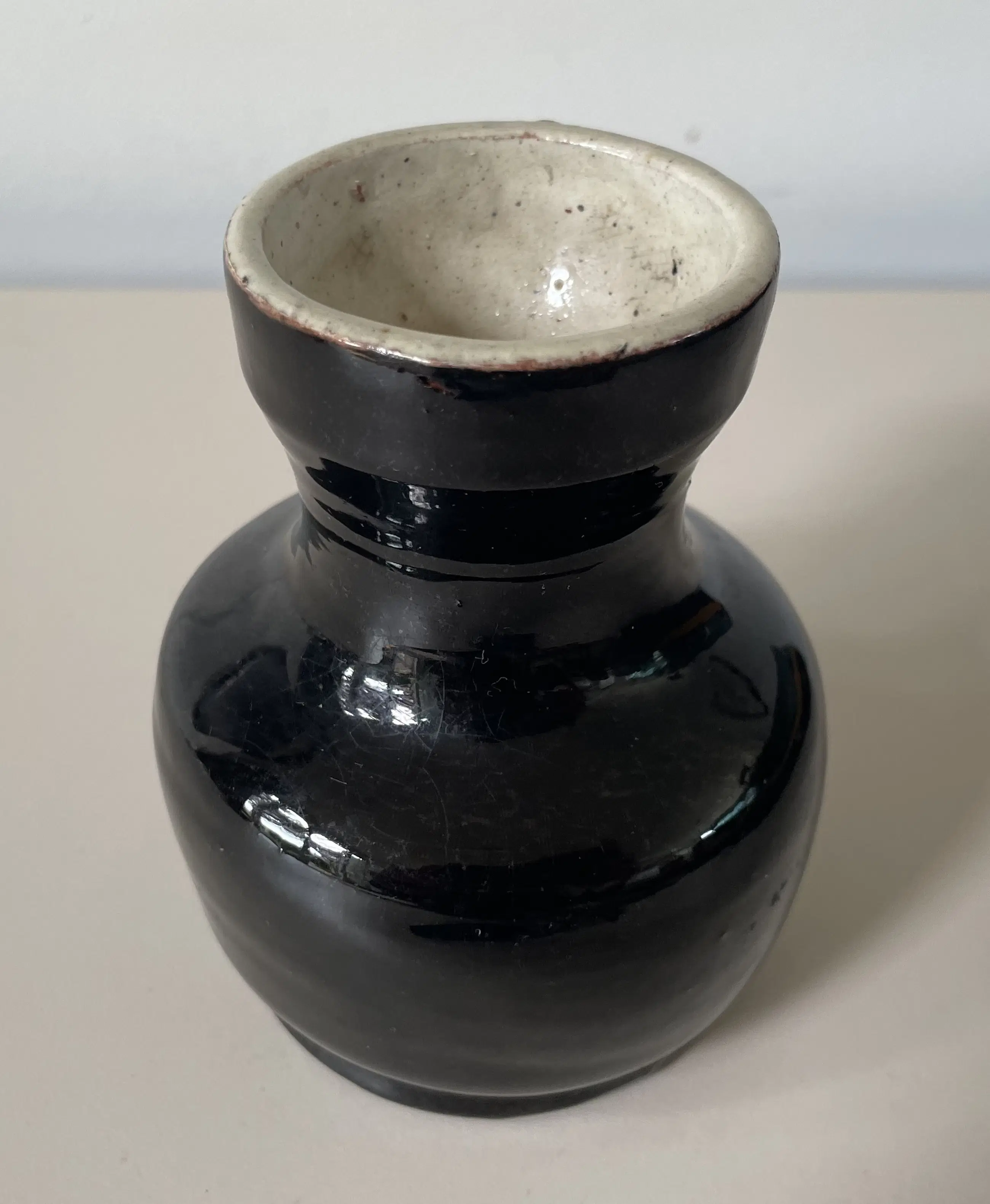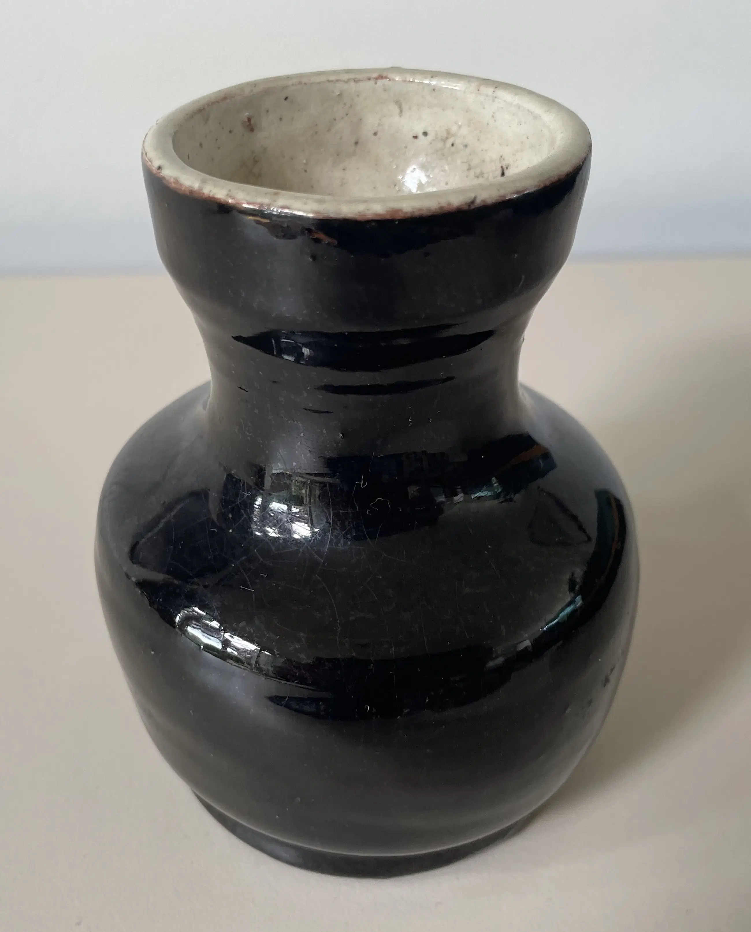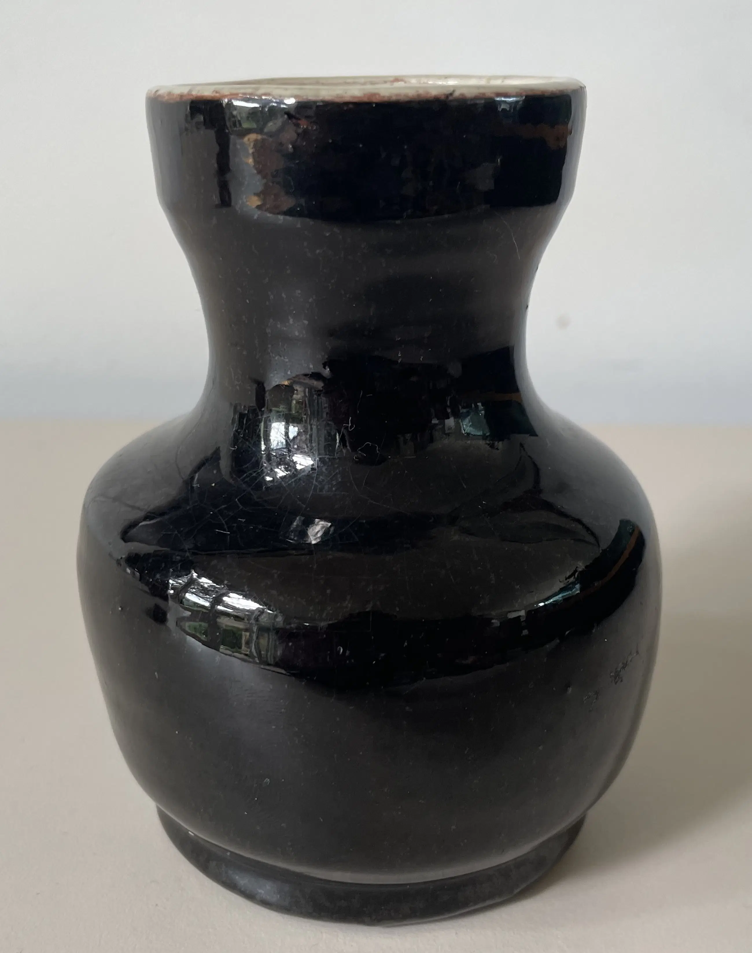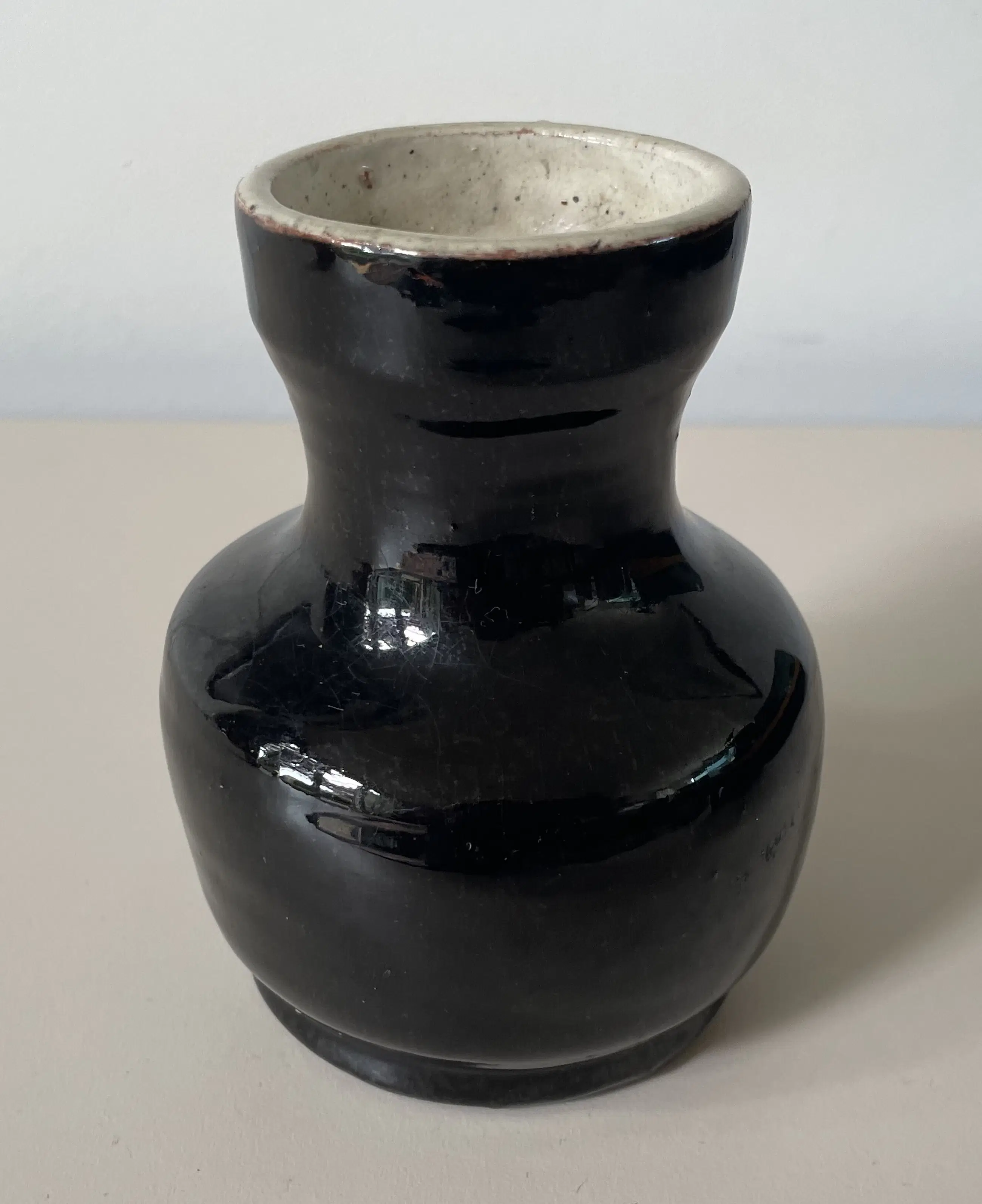 Heeft een chipje en glazuurflinters onderaan het vaasje.