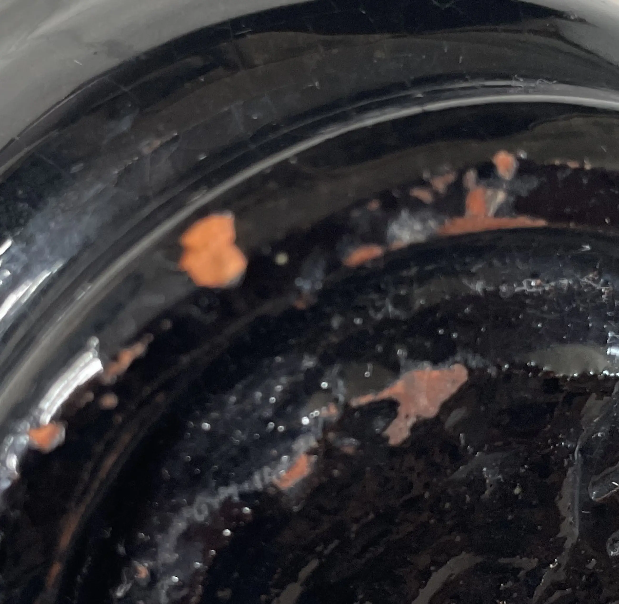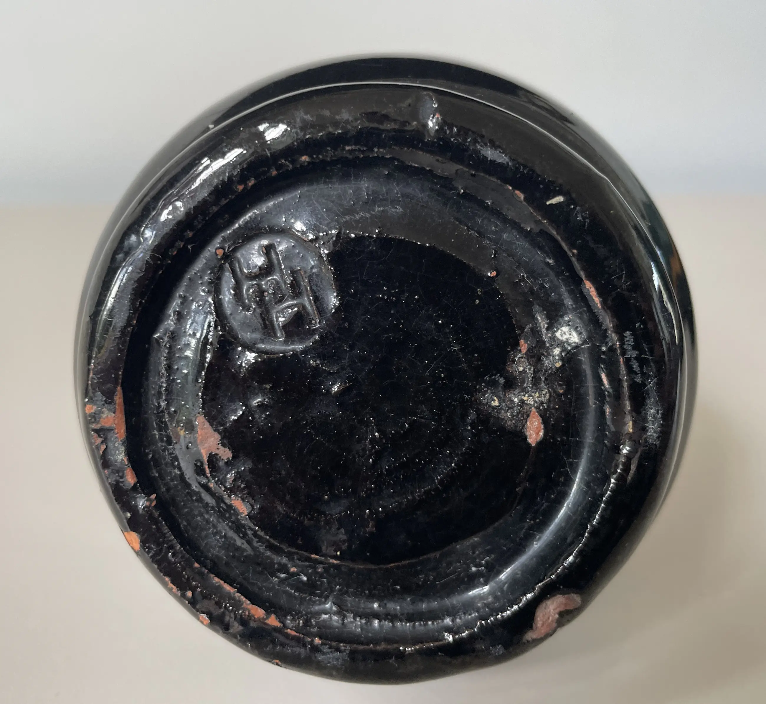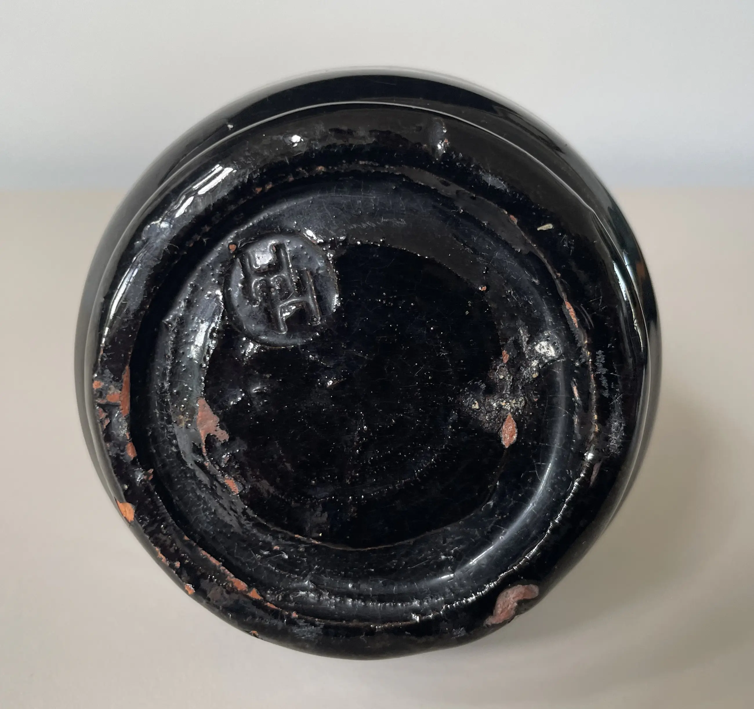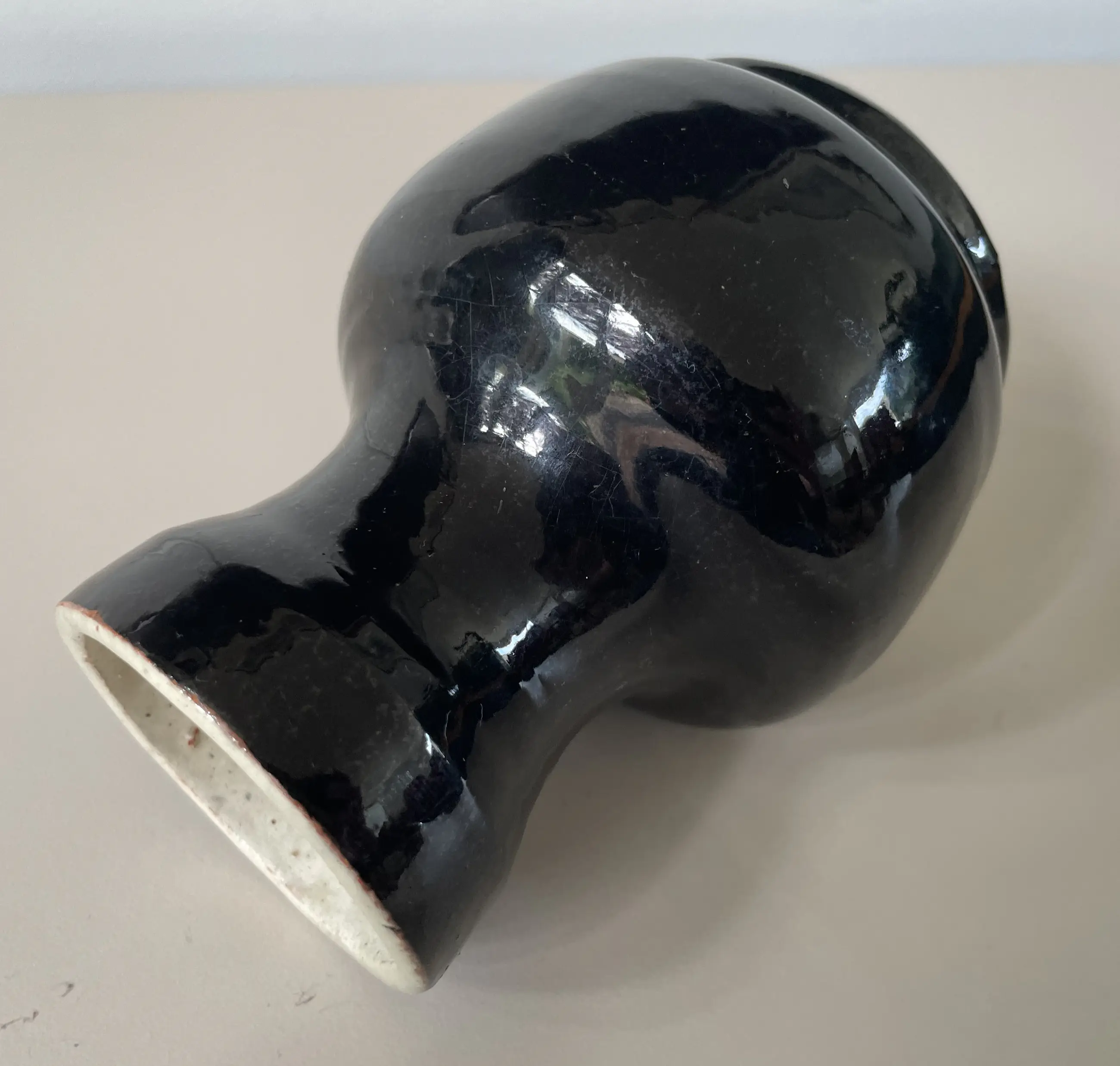 Heeft een chipje en glazuurflinters onderaan het vaasje.