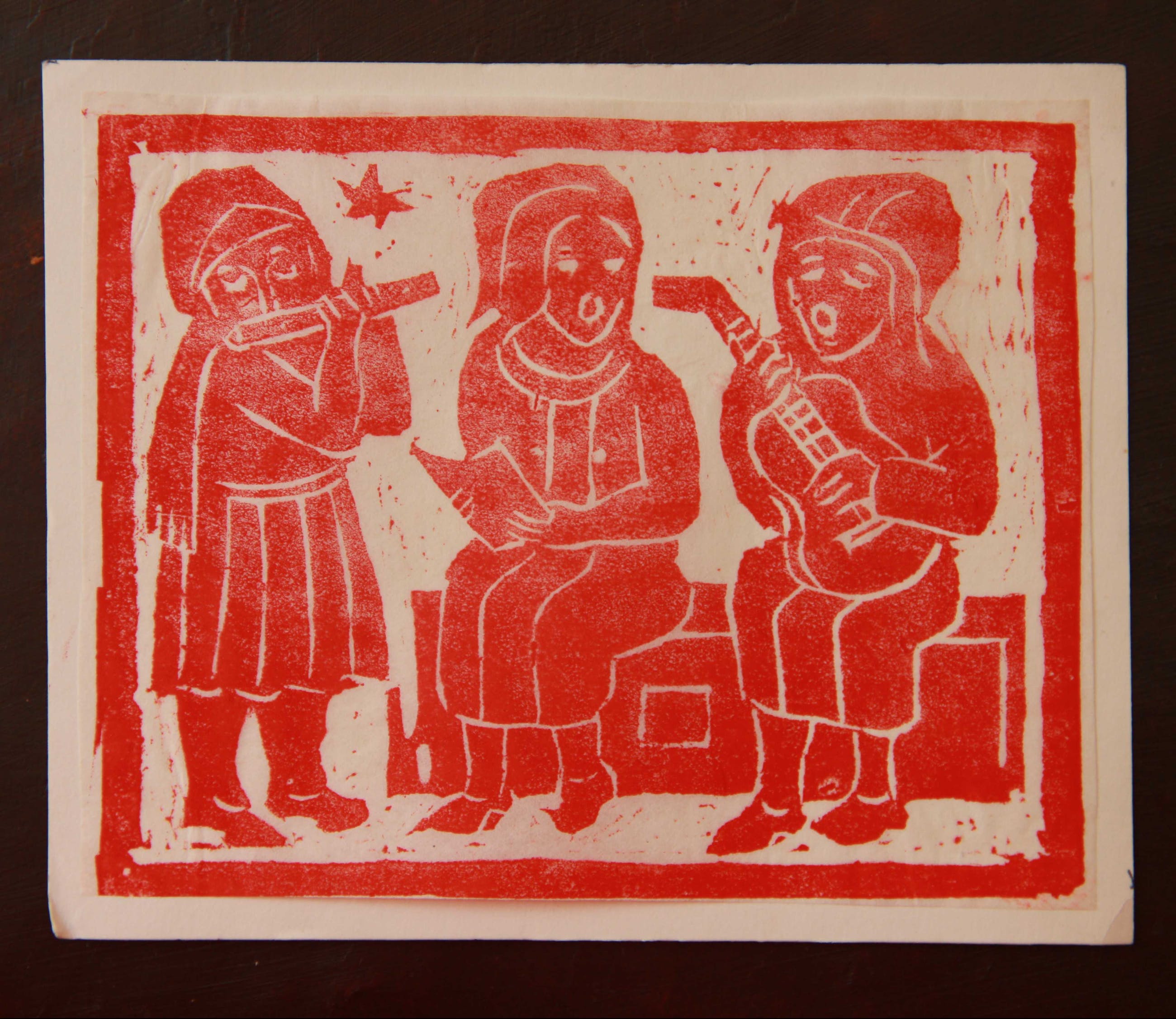 Harm Kamerlingh Onnes was een oudoom van mijn moeder. Hij stuurde de familie elk jaar een afdruk van een linoleumsnede als kerstkaart, waaronder deze uit 1963.