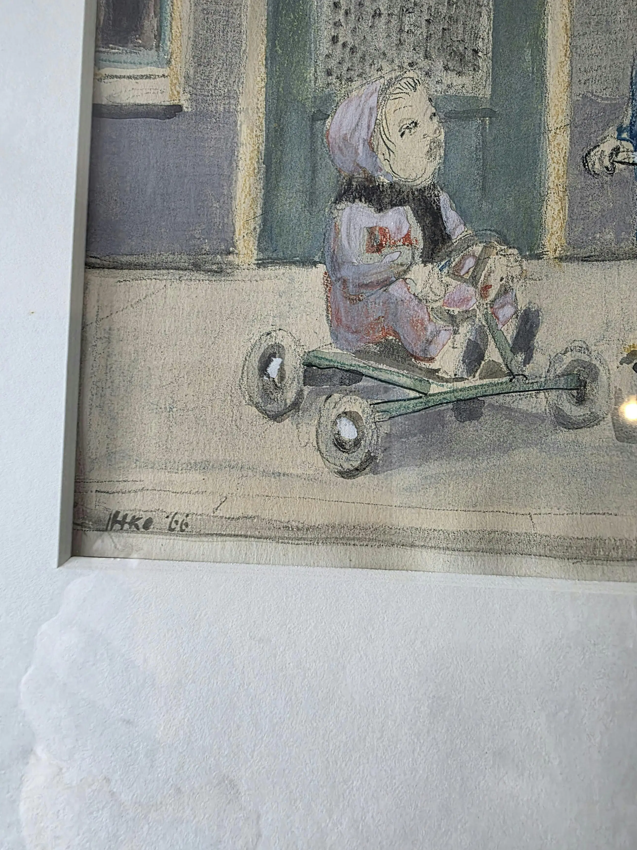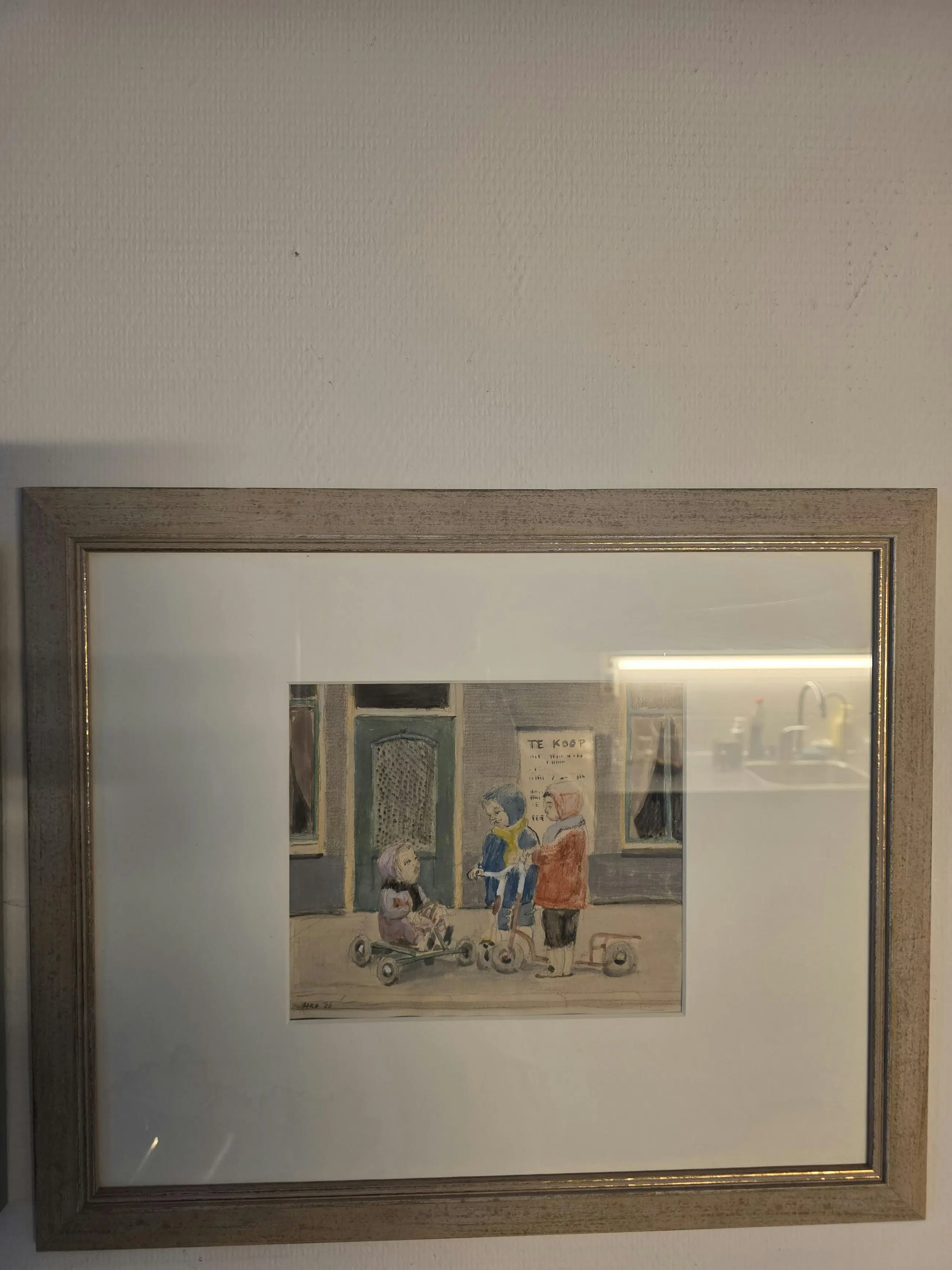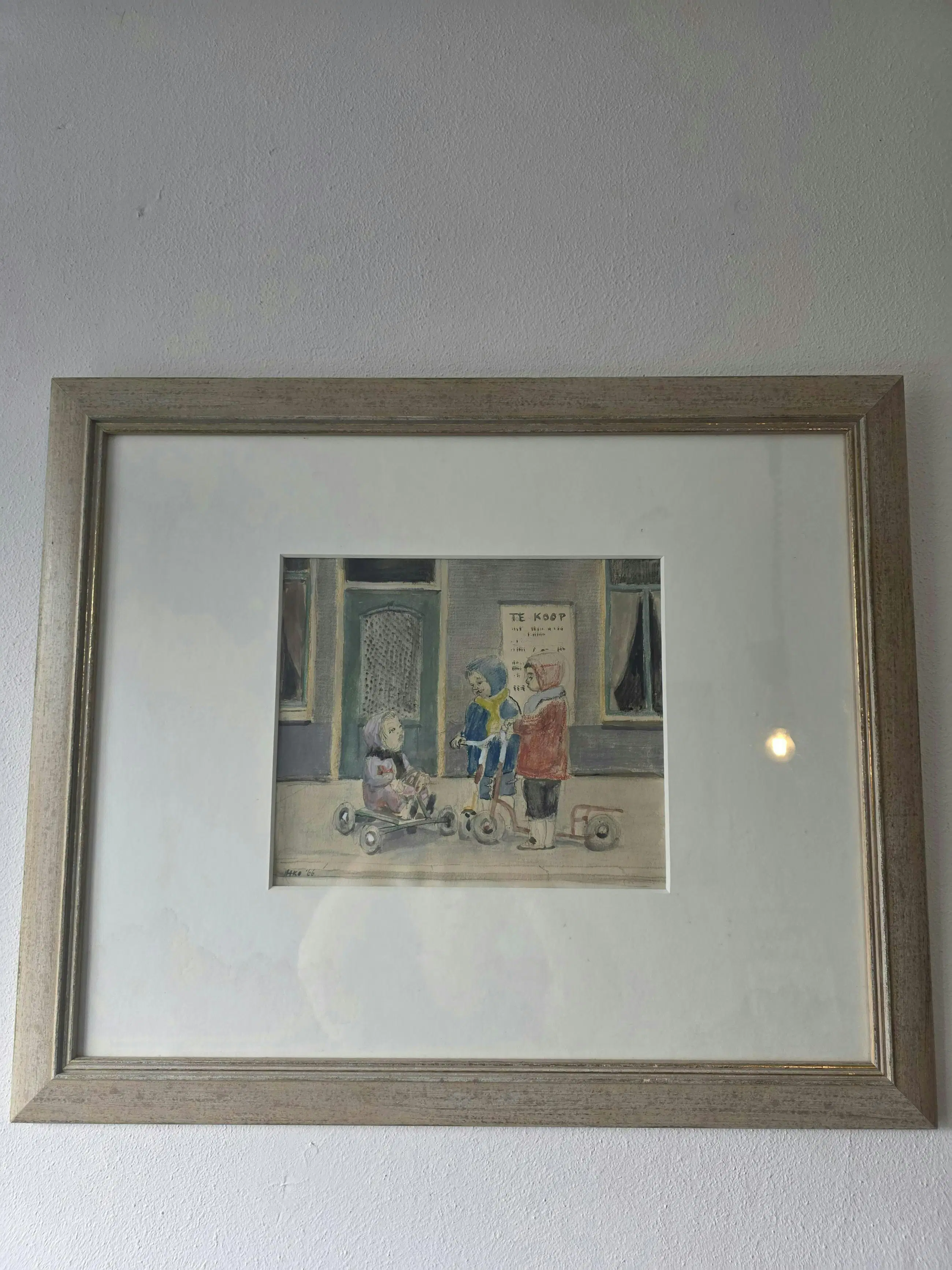 Prachtig origineel werk van Harm Kamerlingh Onnes gemengde techniek, in hele goede staat ,mooi ingelijst, Heel herkenbaar werk, een typisch nostalgisch tafereel van deze zeer gewaardeerde kunstenaar. Word zorgvuldig verpakt en verzekerd verzonden.