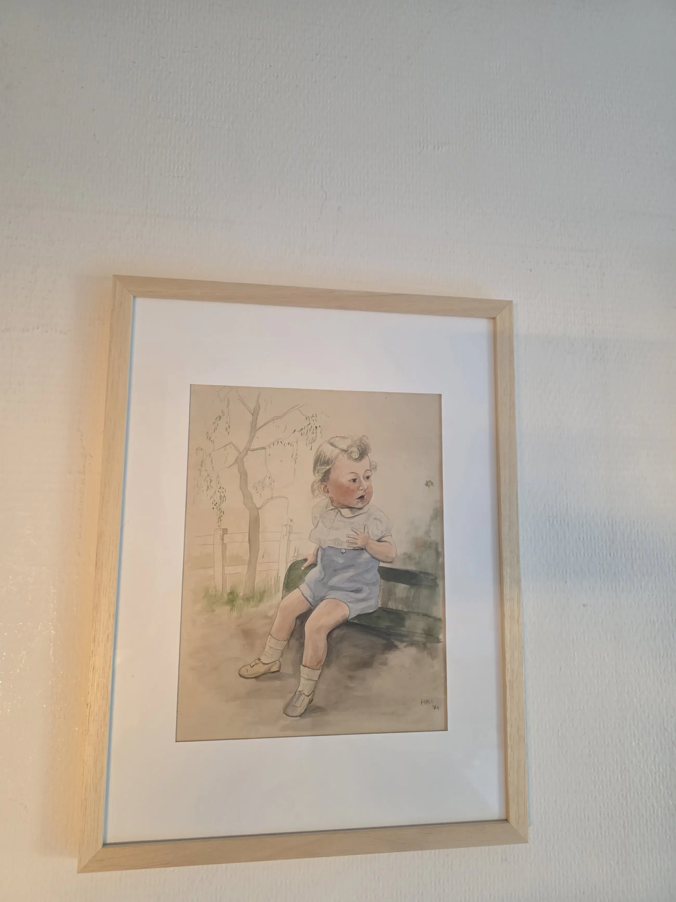 Aquarel van Harm Kamerlingh Onnes, een kind met vlinder. Een poëtisch en verstild tafereel. De Aquarel is uitgevoerd met een lichte transparante toetsen een subtiel kleurgebruik. De expressie van het kind en de fragiele aanwezigheid van de vlinder geven het werk een dromerige bijna tijdloze uitstraling. Het werk verkeert in zeer goede staat en is voorzien van een nieuwe lijst. 28x26 met lijst 42x32. Word zorgvuldig verpakt en verzekerd verzonden.