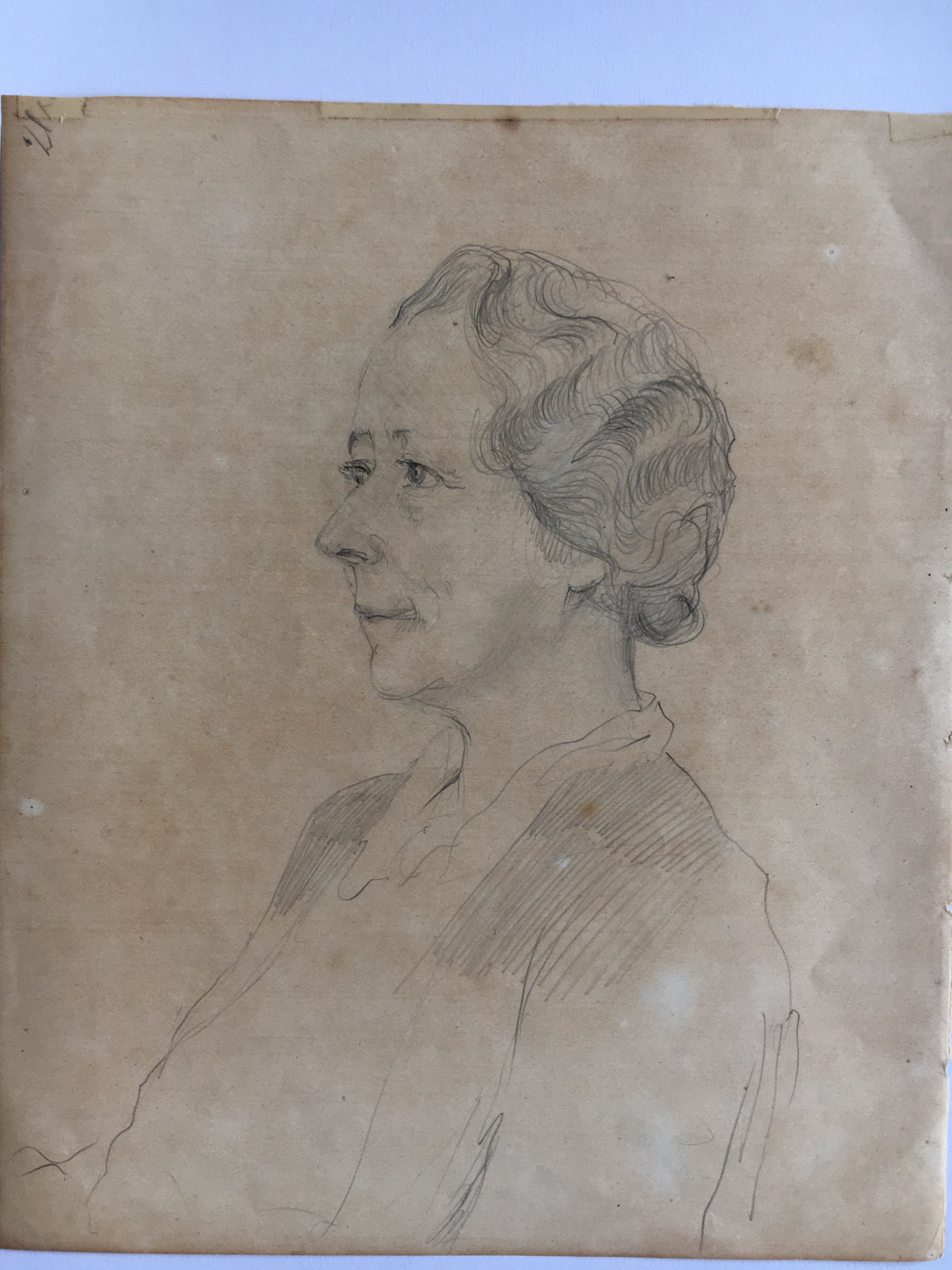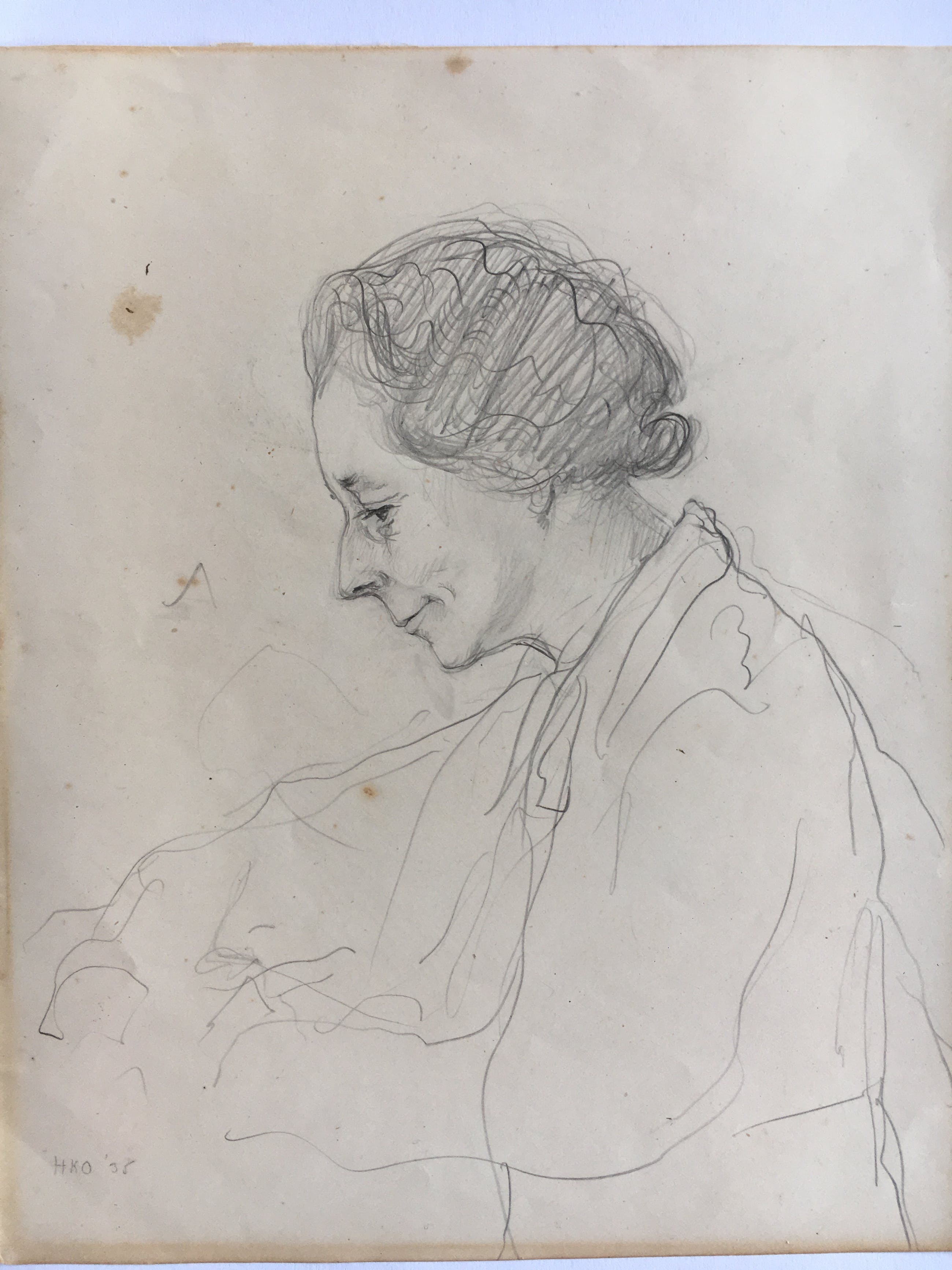 Portet (potlood) van een dame. Tevens portret weerszijde. Gesigneerd en gedateerd HKO 1935.