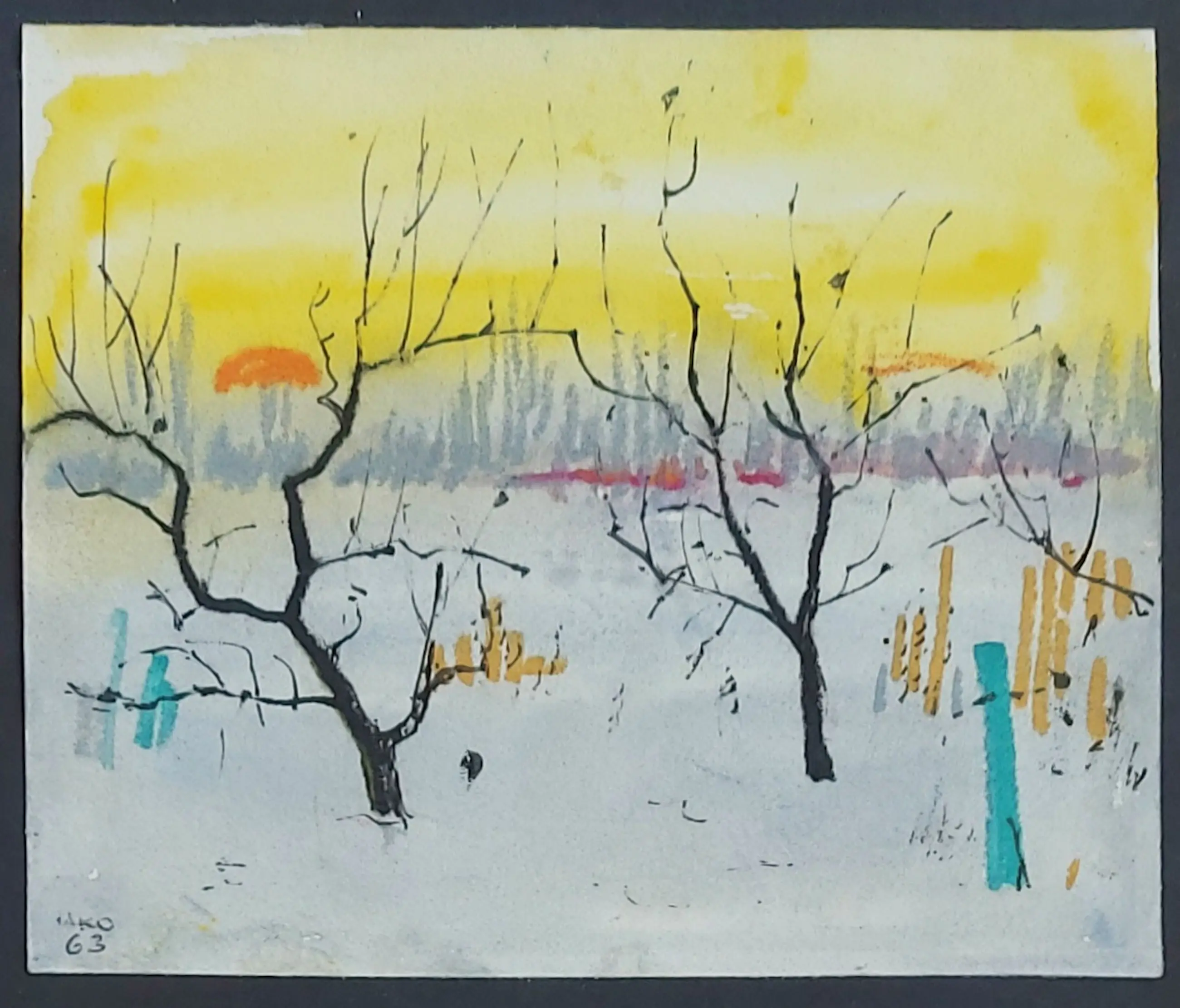 een zeer leuke Gouache van HKO met titel winter 1963