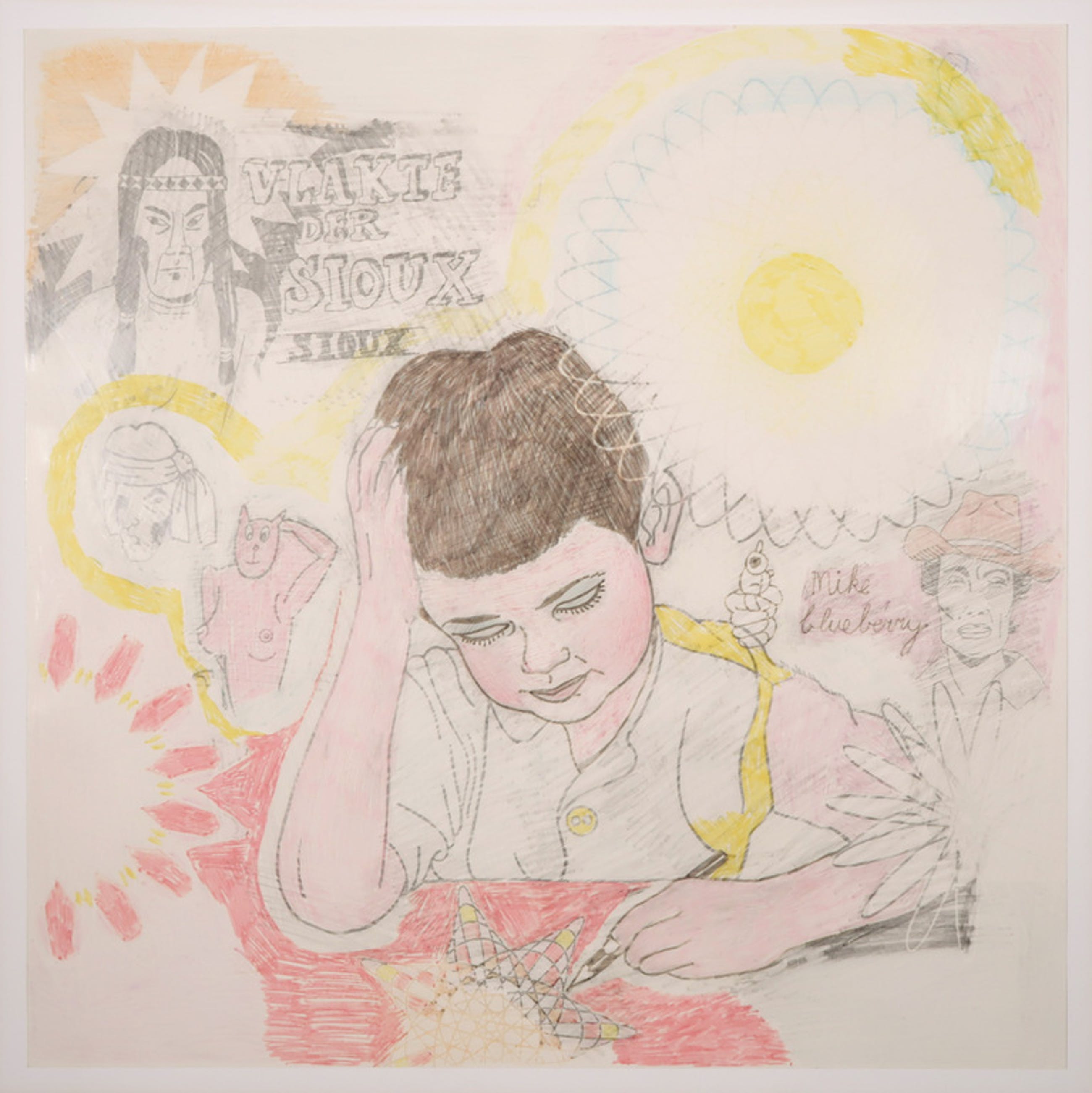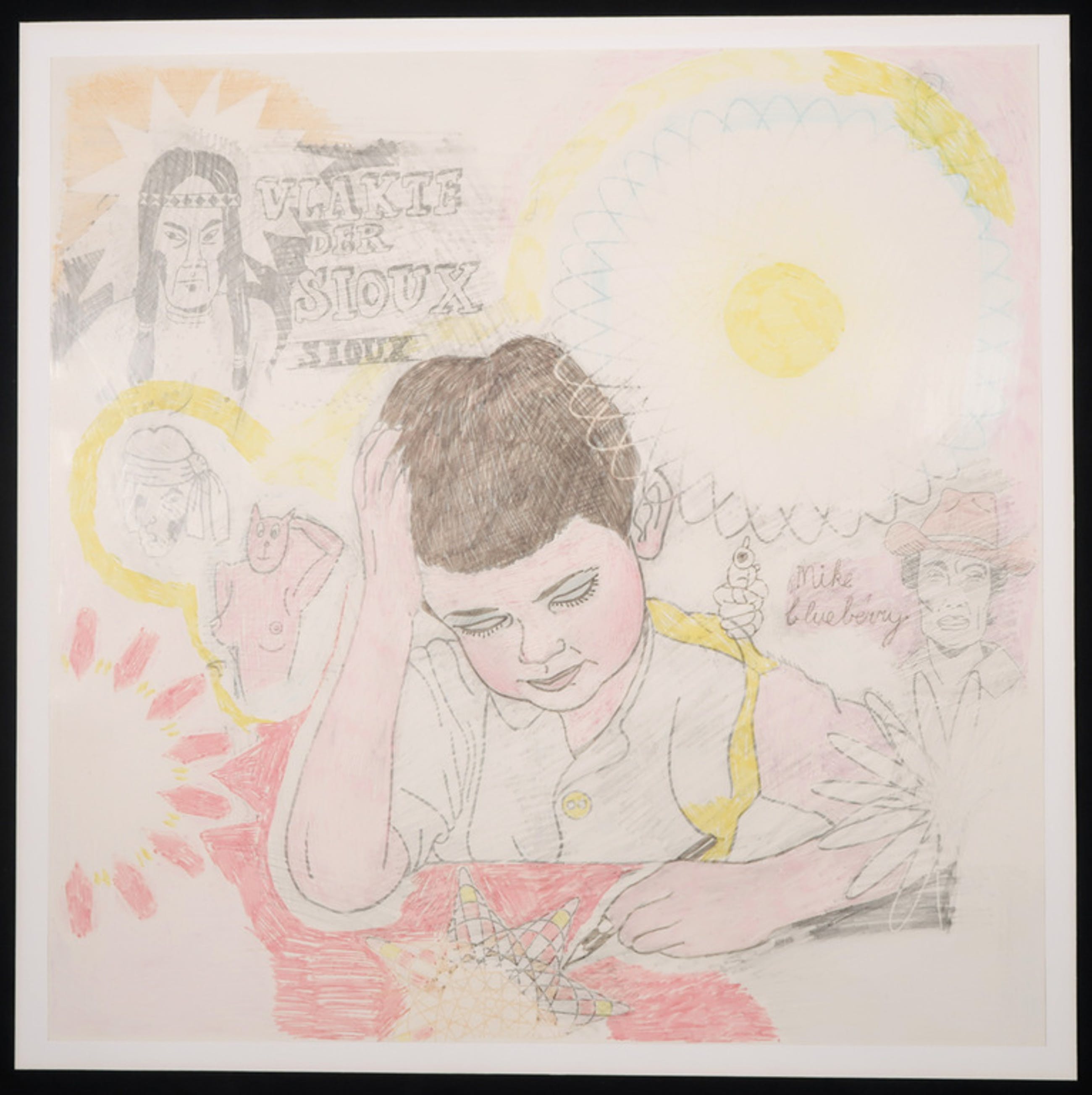 Materiaal: Onzichtbare inkt, viltstift en kleurpotlood op papier, bevestigd op stevig onderblad. N.B.: elk exemplaar is door de kunstenaar met de hand zichtbaar gemaakt, ieder exemplaar is derhalve uniek