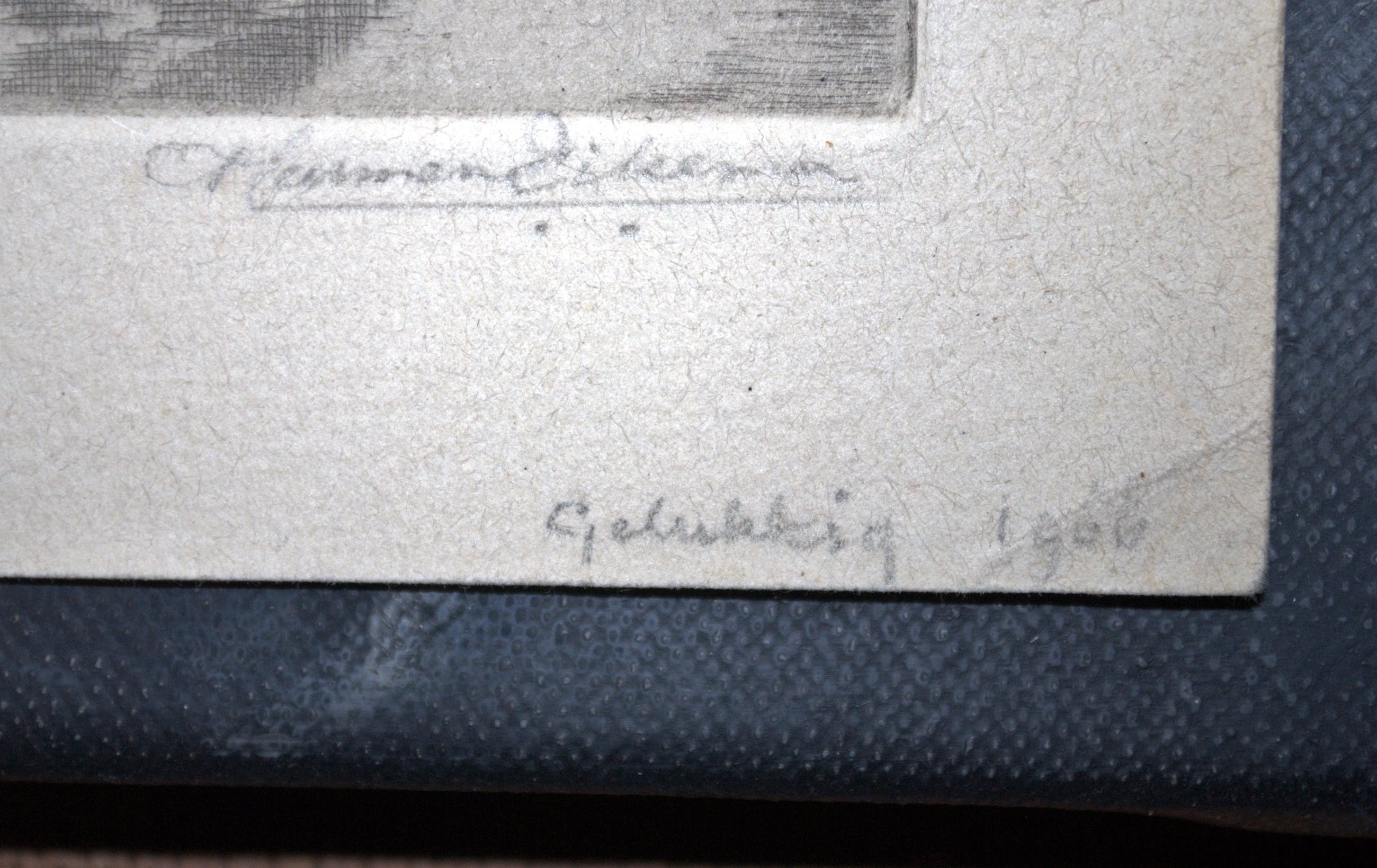 • achter glas en passepartout, uitsnede ca 13x9 cm