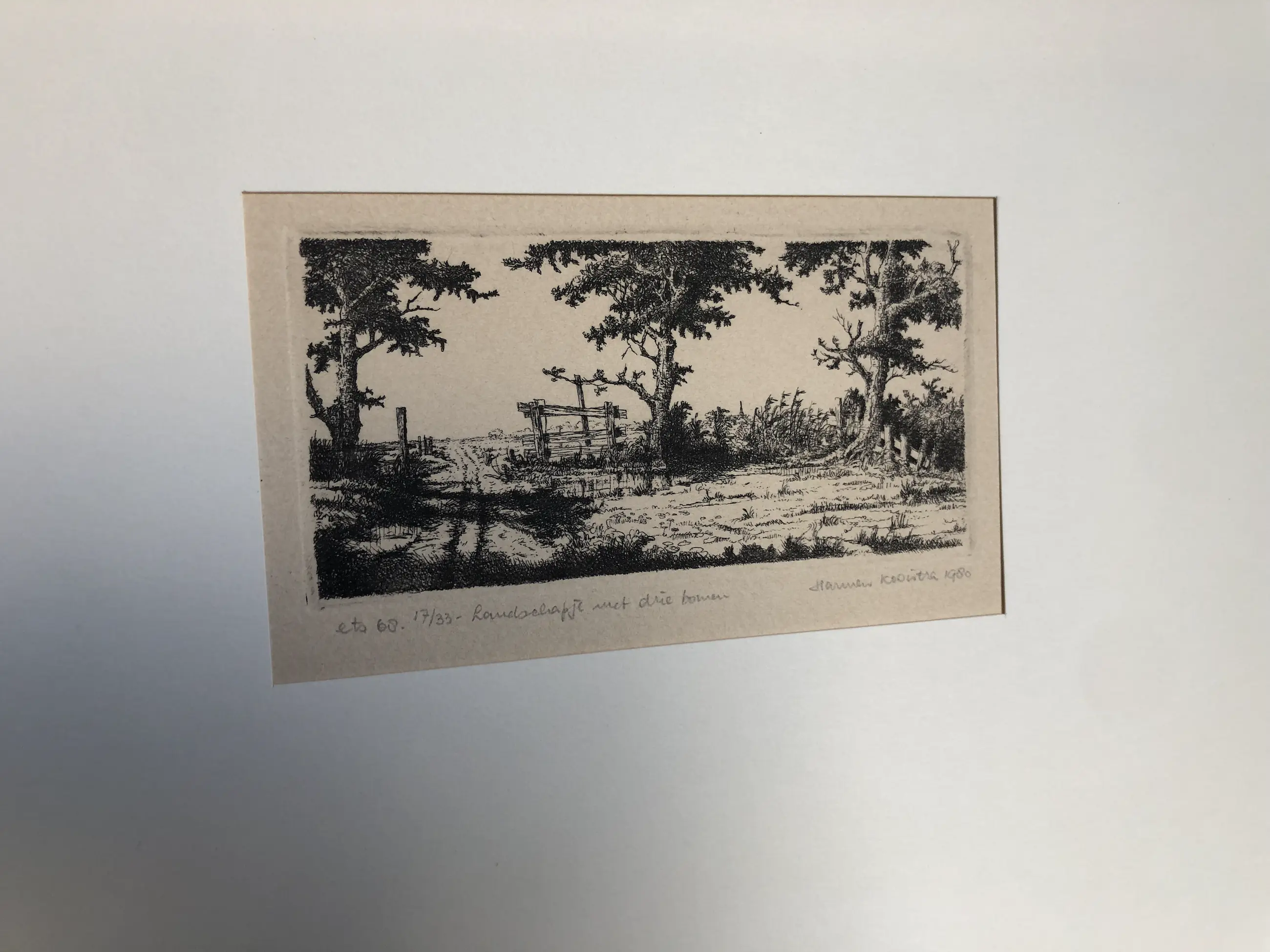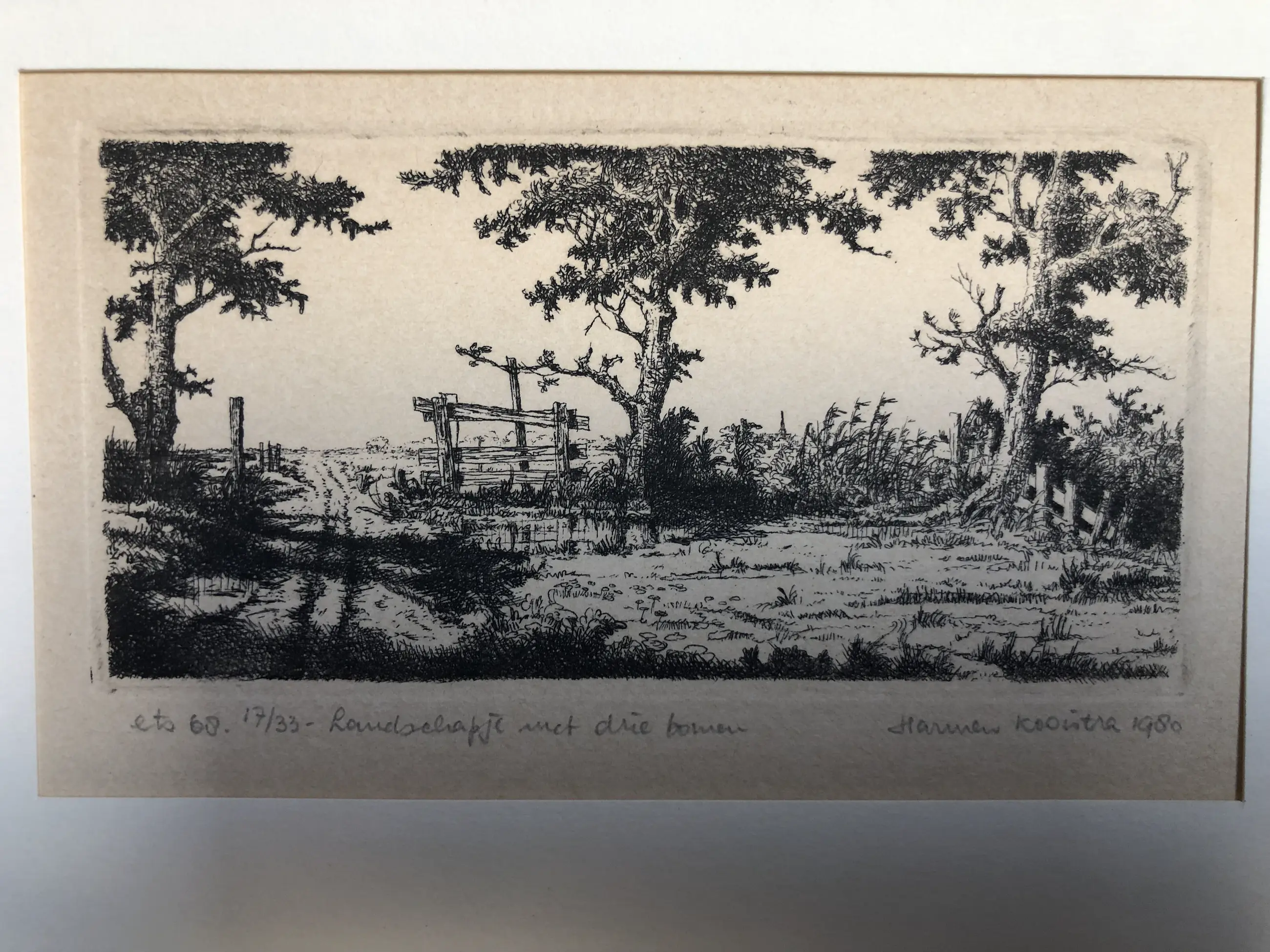 Prachtige realistische ets in passe partout kleine oplage