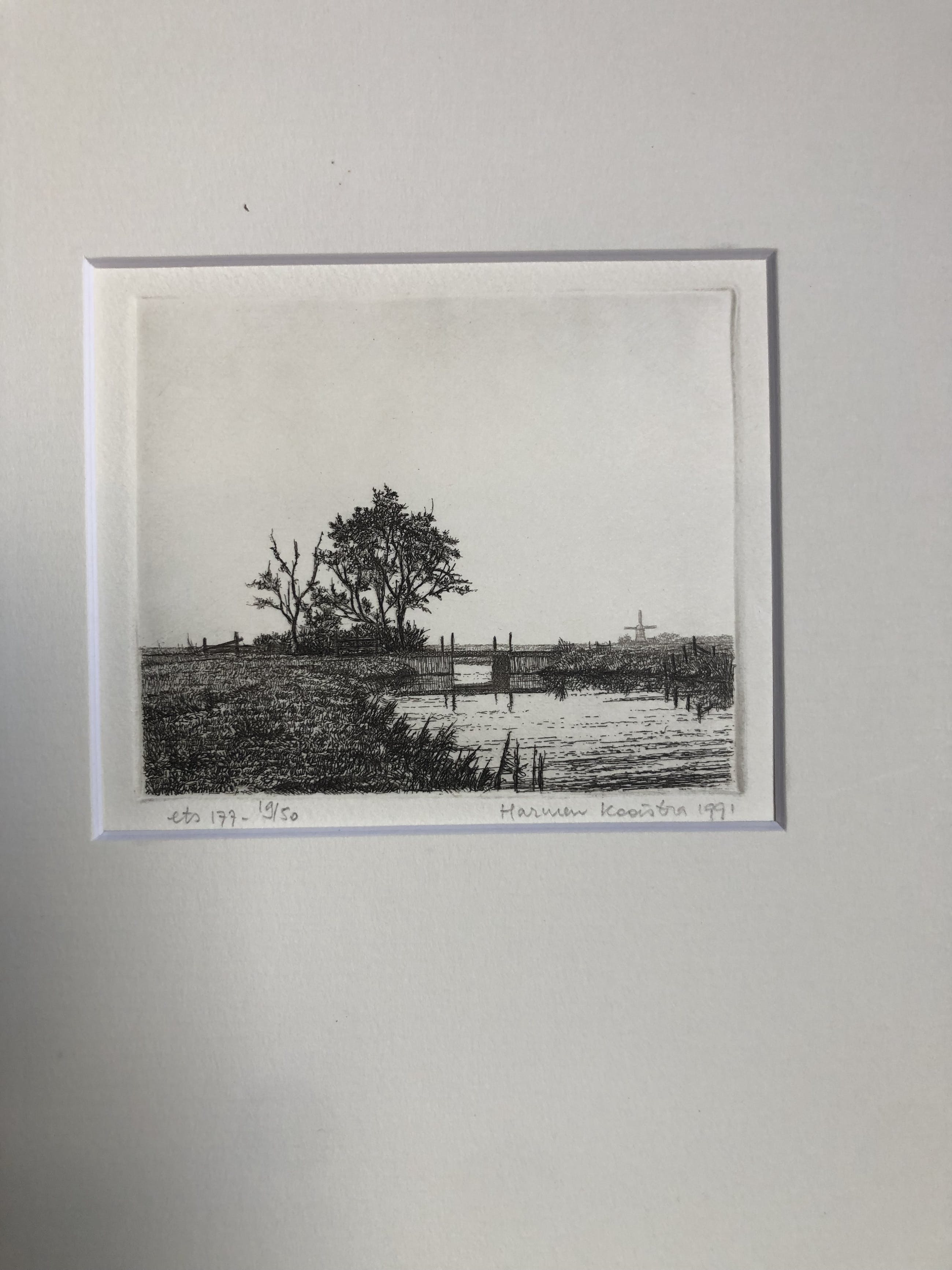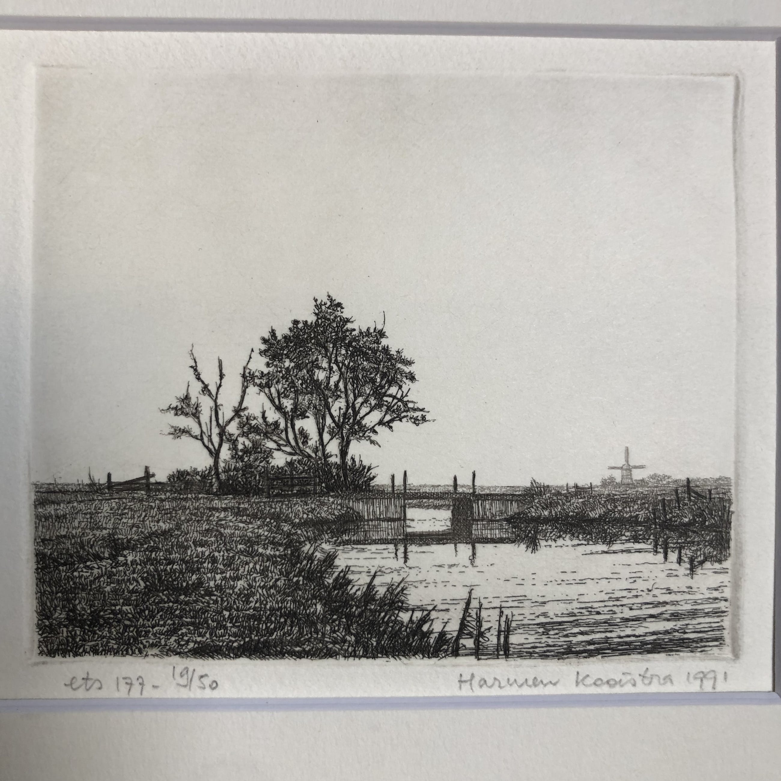 Prachtige verfijnde ets van Harmen Kooistra In passe partout nr. 177 - 19/50