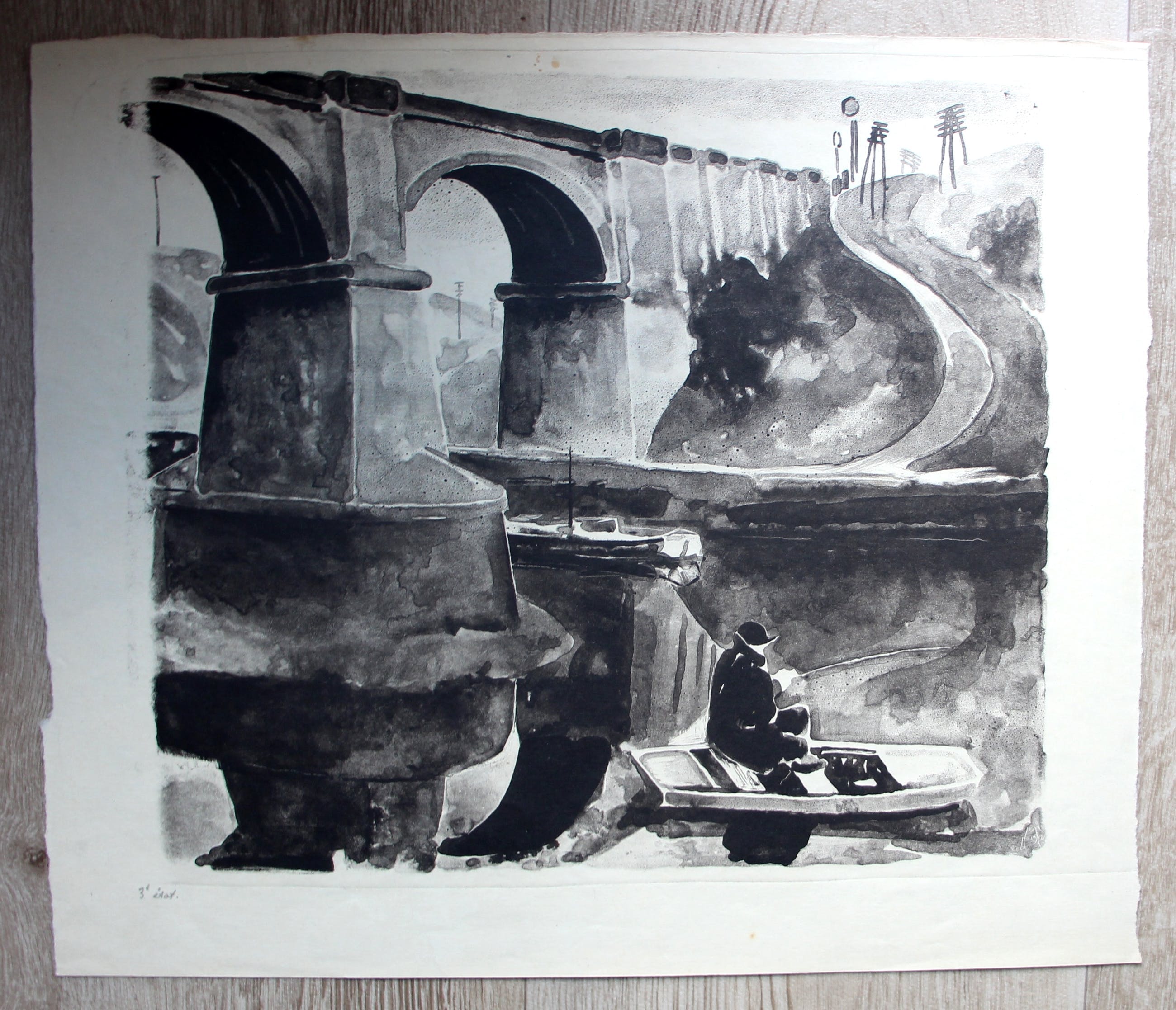 3 litho's van Harmen Meurs. Titel: Le viaduc de ST. Mammes. Het betreft de proefdrukken: 2e en 3e staat en het origineel. Nummer origineel: 19/25.