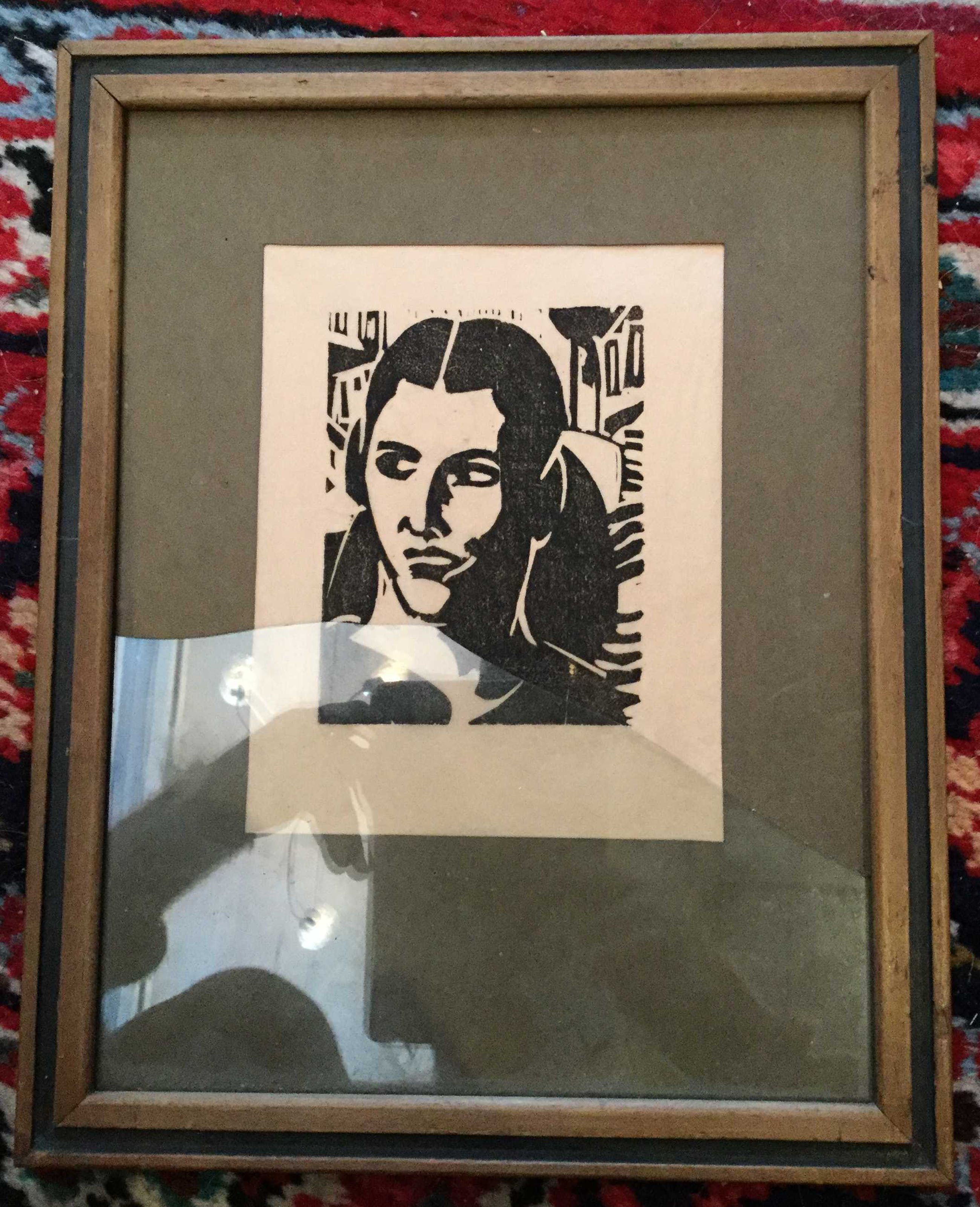 | Papier vergeeld, van de lijst is het glas kapot en staat wat bol. | |