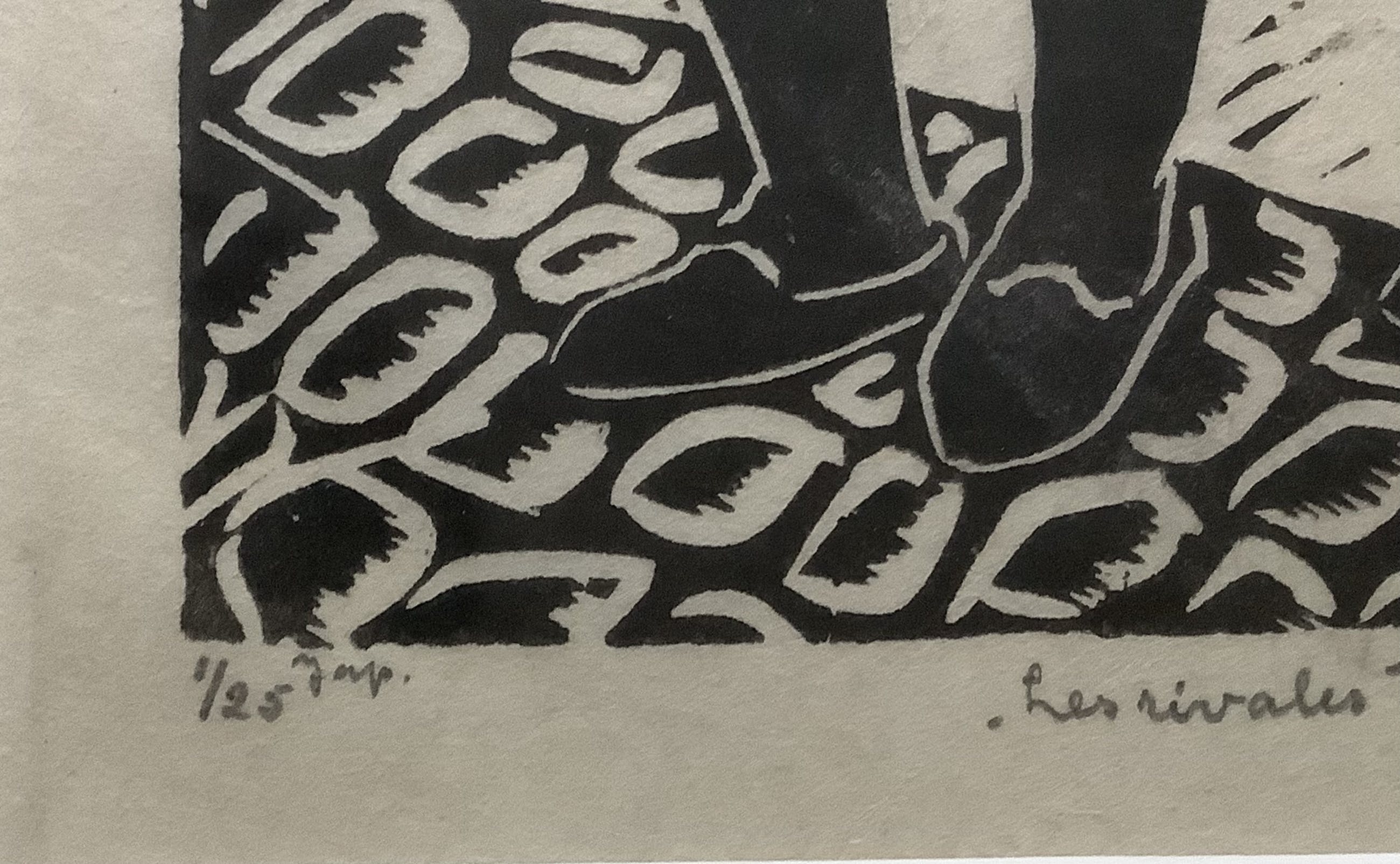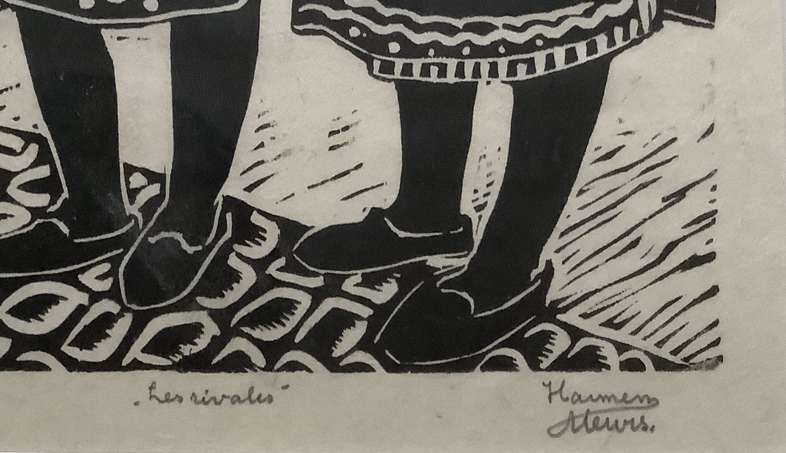 Karakteristieke houtsnede van Harmen Meurs, gesigneerd en genummerd. In mooie strakke lijst. Herkomst kunsthandel R. Smithuis BV.