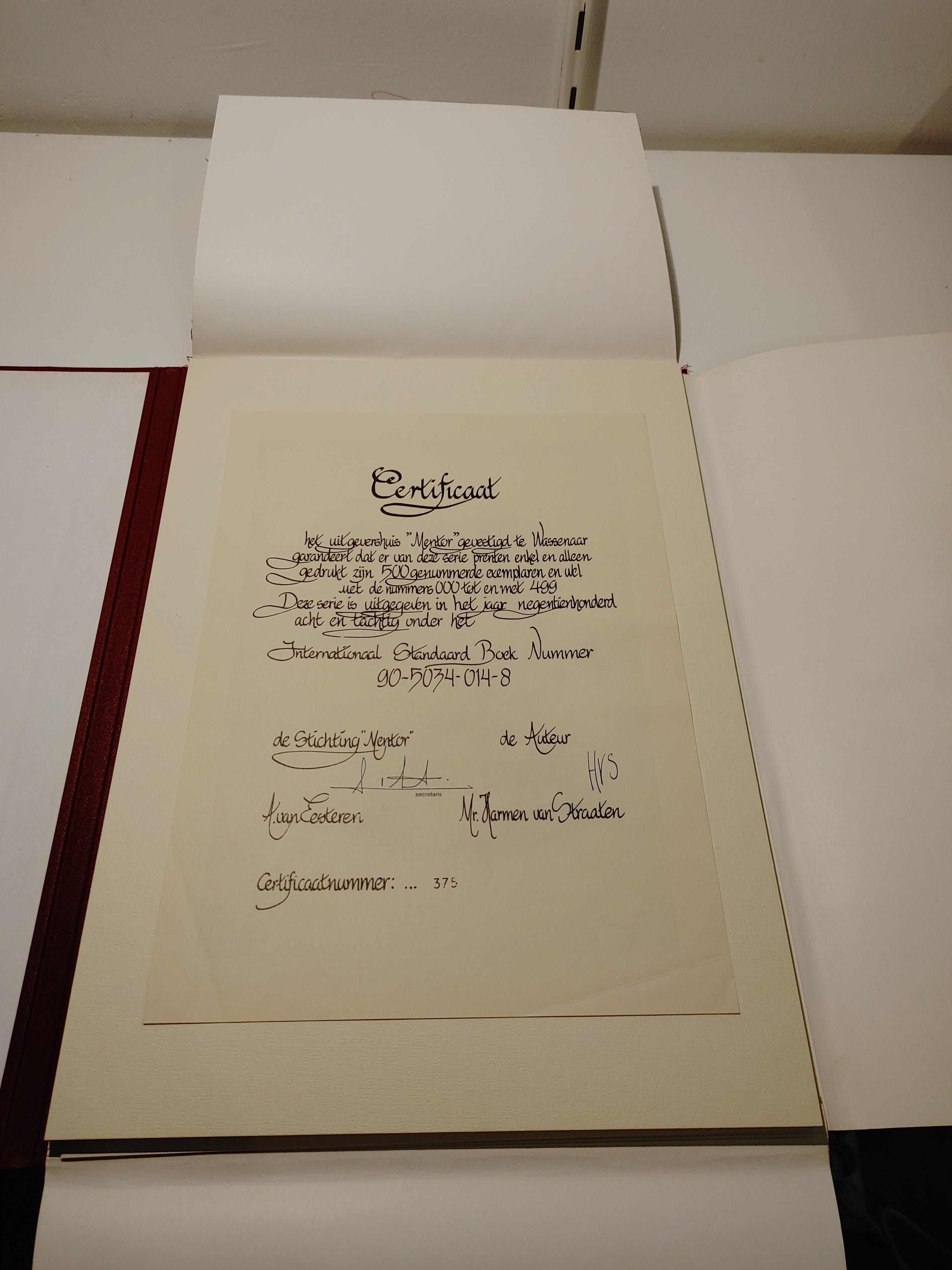 Elke prent is gesigneerd, de cover is gesigneerd in de plaat: HVS