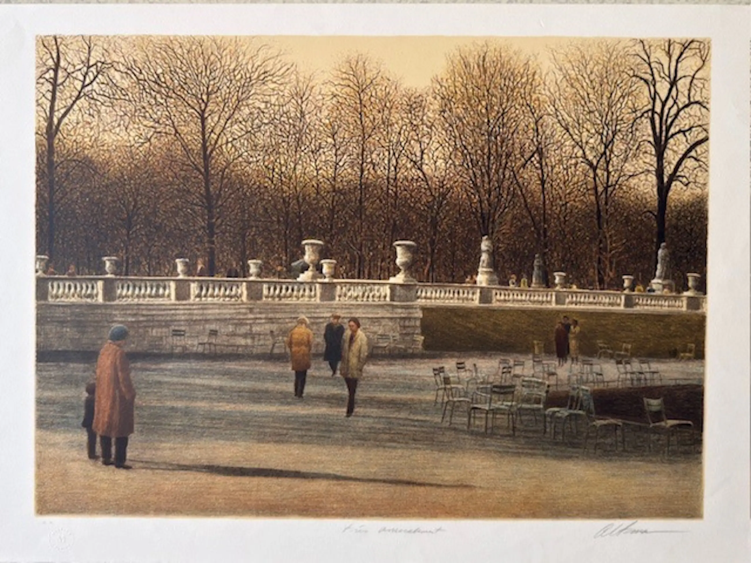 Hij is beroemd om zijn lithografieën en lijntekeningen, vaak uitgevoerd in levendige kleuren, die voornamelijk scènes van openbare parken en straten afbeelden.