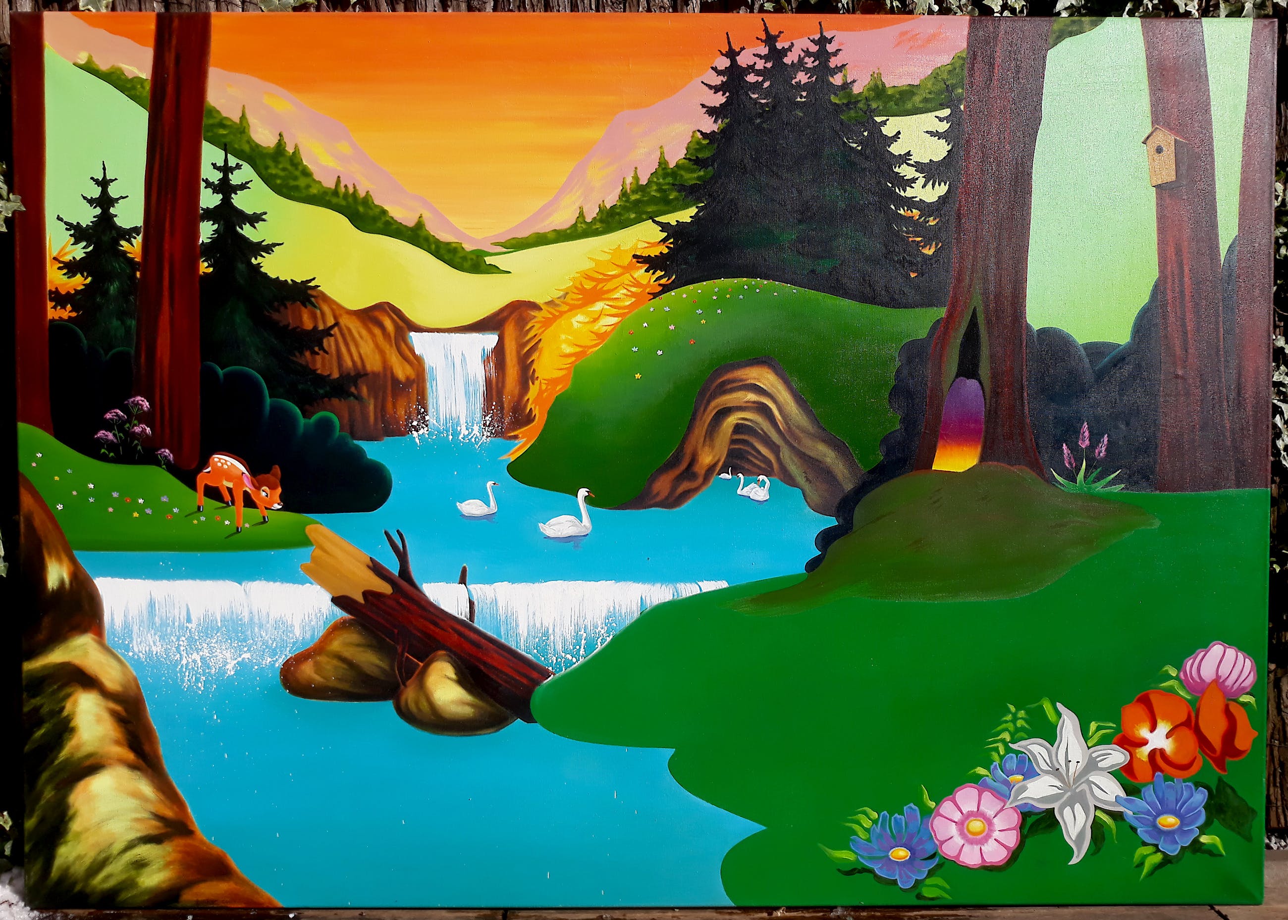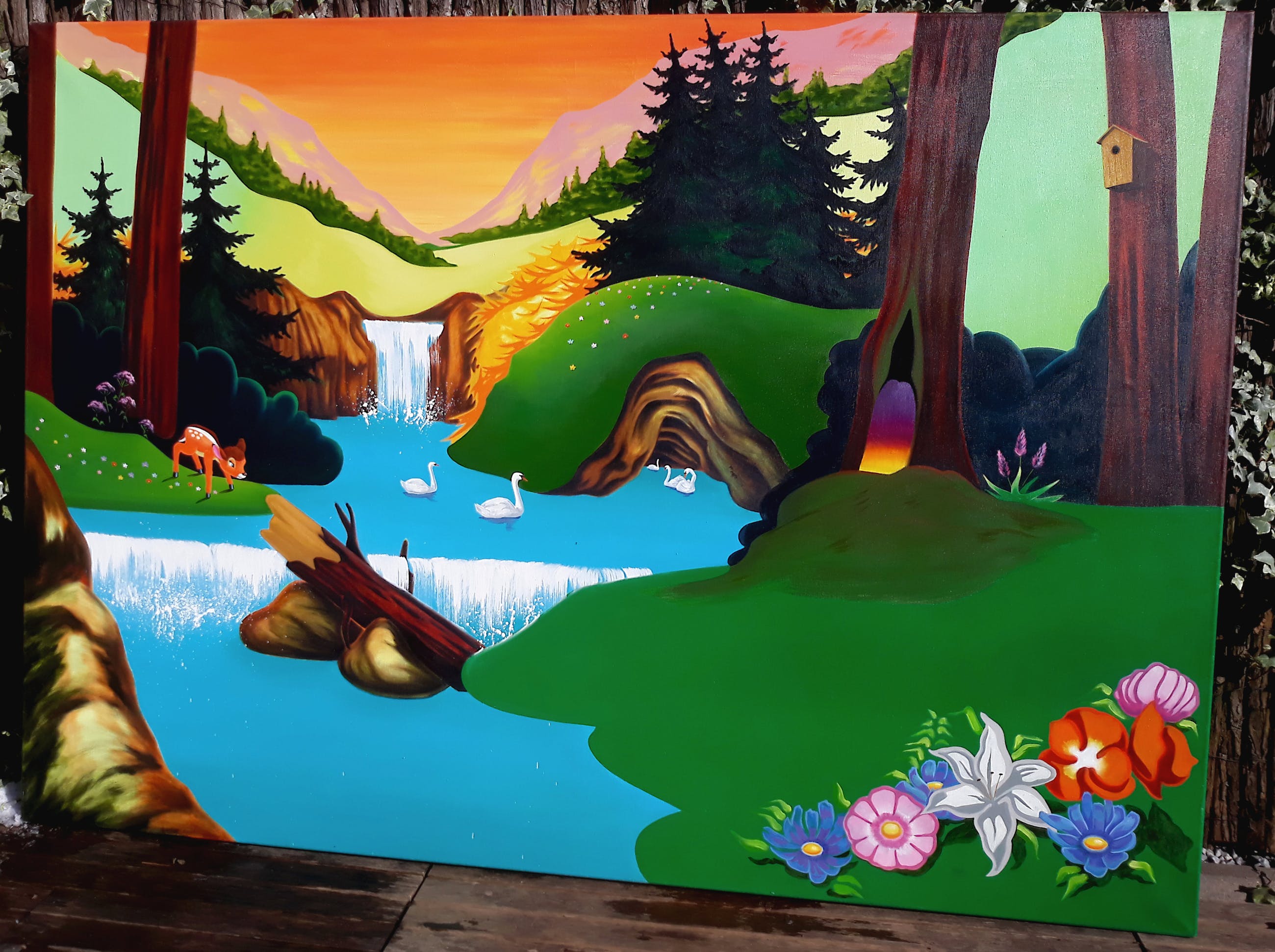 Idyllische, kleurrijke vlucht uit de de coronawerkelijkheid. Een land(e)scape van Disney-achtige allure. Hier kan geen Bambi op de 65 inch OLED TV tegen op!