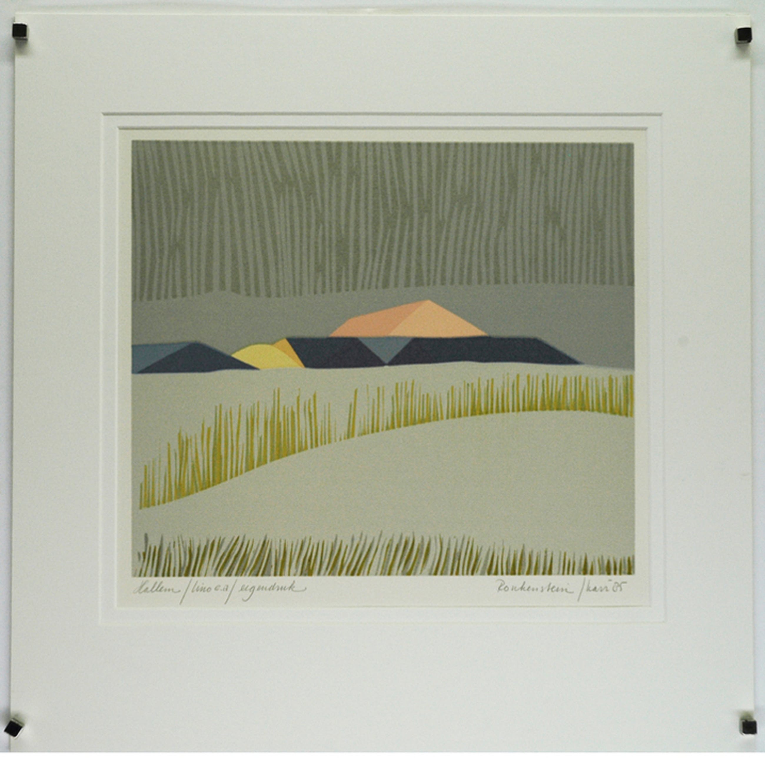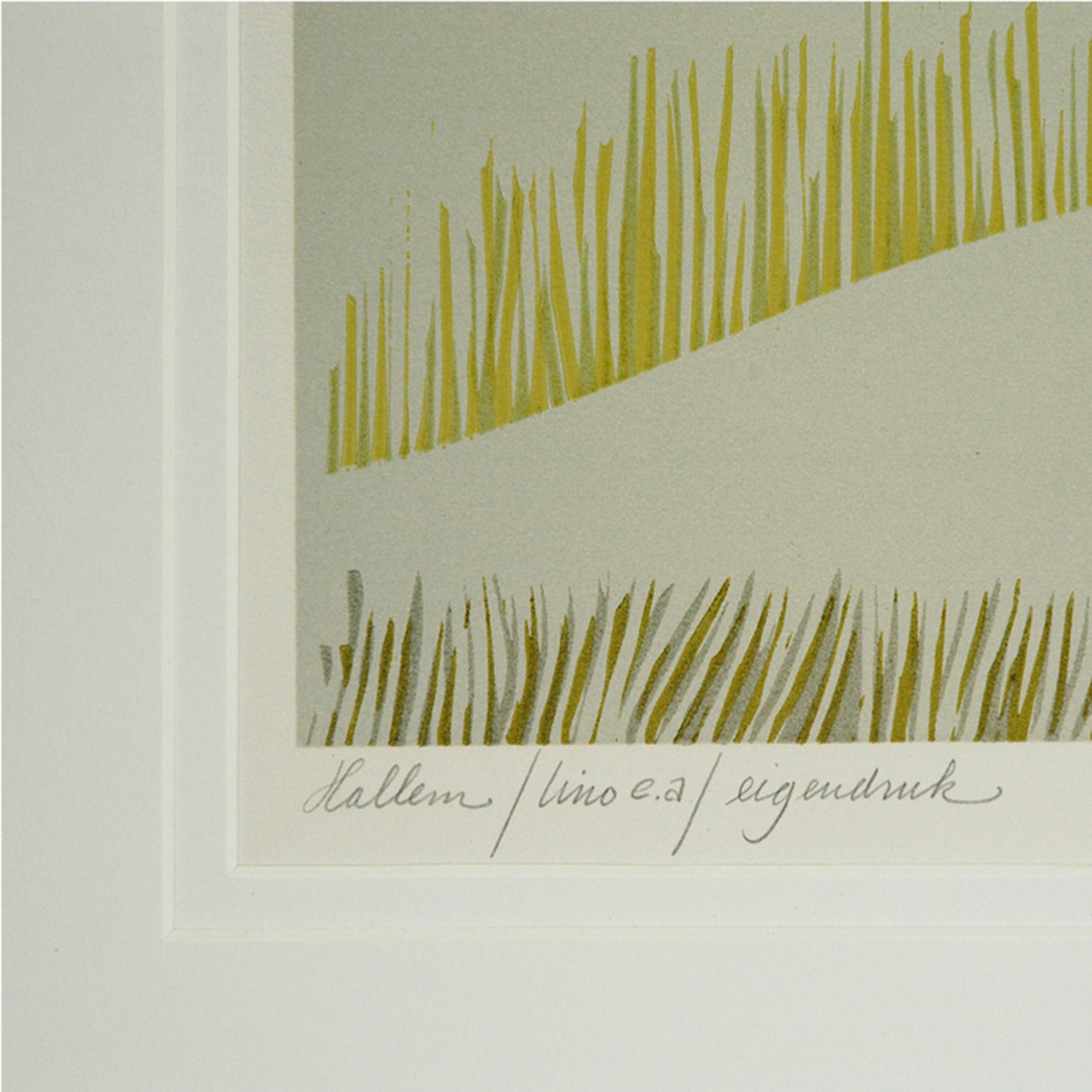 Deze linosnede is onlangs voorzien van een zuurvrij, dubbel passe-partout. Een passende lijst kan in overleg door Druktoets lijstenmakerij worden geleverd.