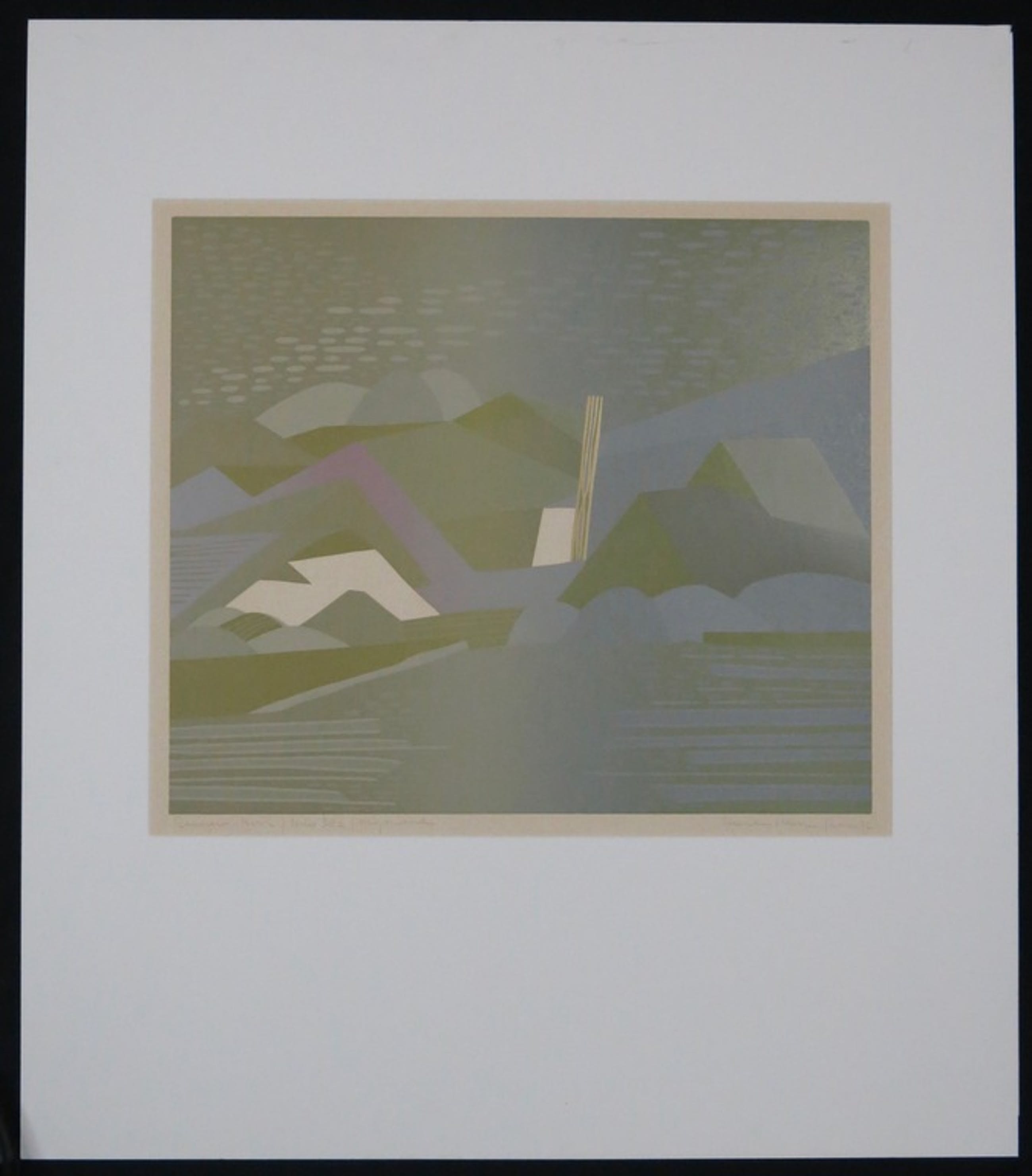 Materiaal: Lino op papier, bevestigd achter passe-partout
