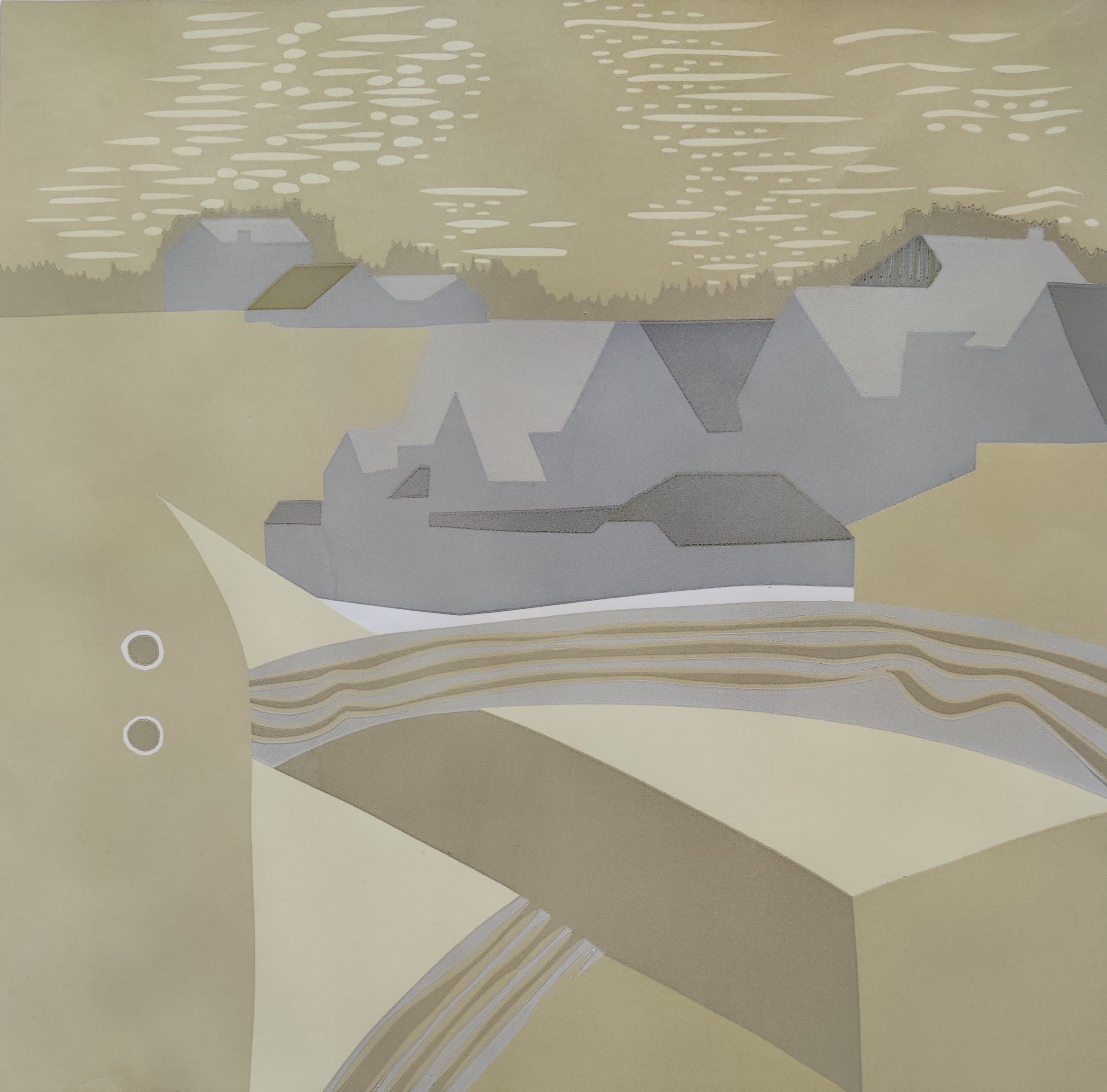 Linosnede potlood gesigneerd en gedateerd '91 rechtsonder en genummerd 5/24 linksonder. Beeldmaat 49x50 cm. Bladmaat 62x60 cm. Losbladig. Harr Scheffer werd geboren te Venlo op 28 augustus 1937 en overleed in 2016. Opleiding aan de Academie voor Industriële Vormgeving te Eindhoven van 1959-1961 en de Grafische School te Roermond. Lid van de Kunstkring Kyra.