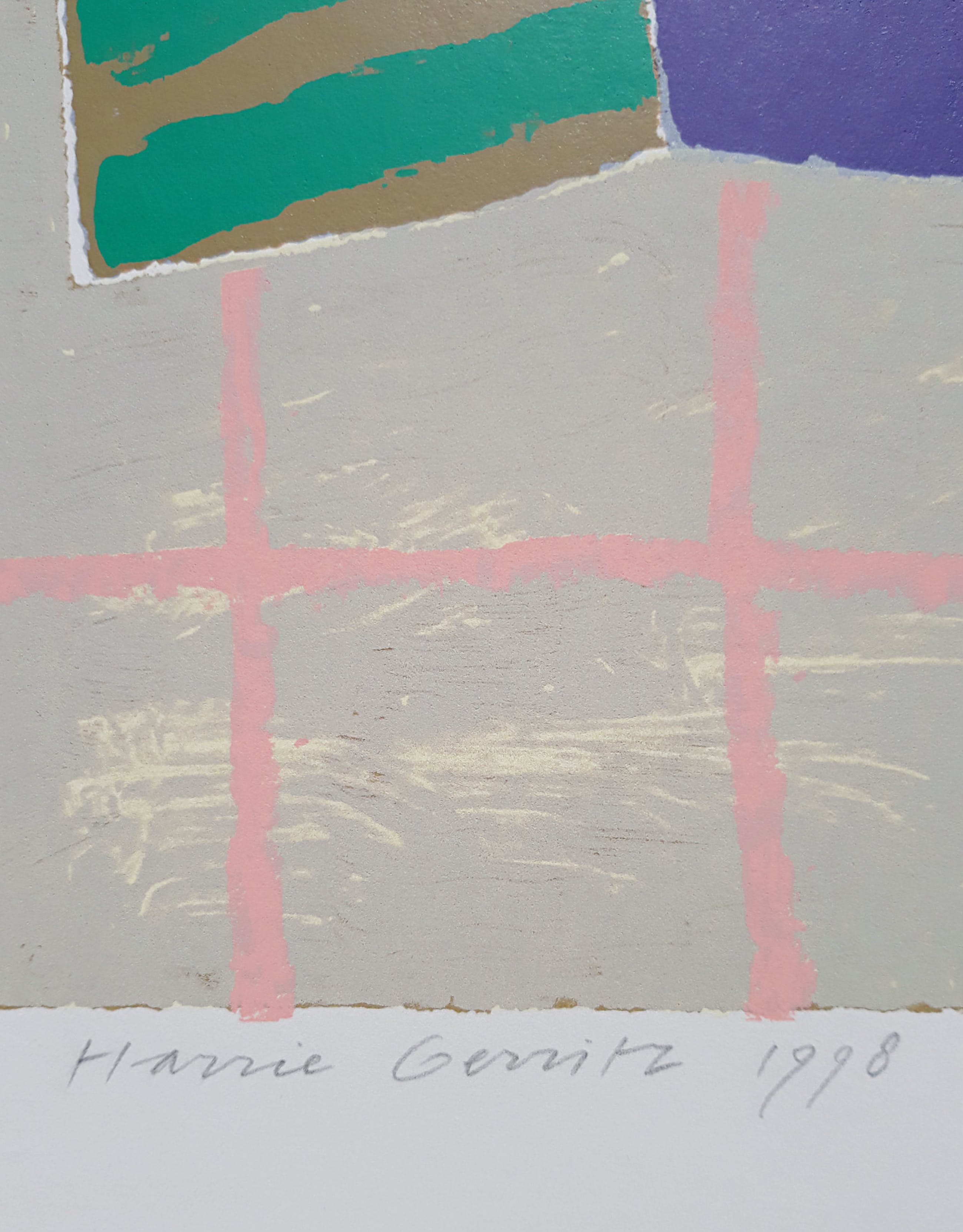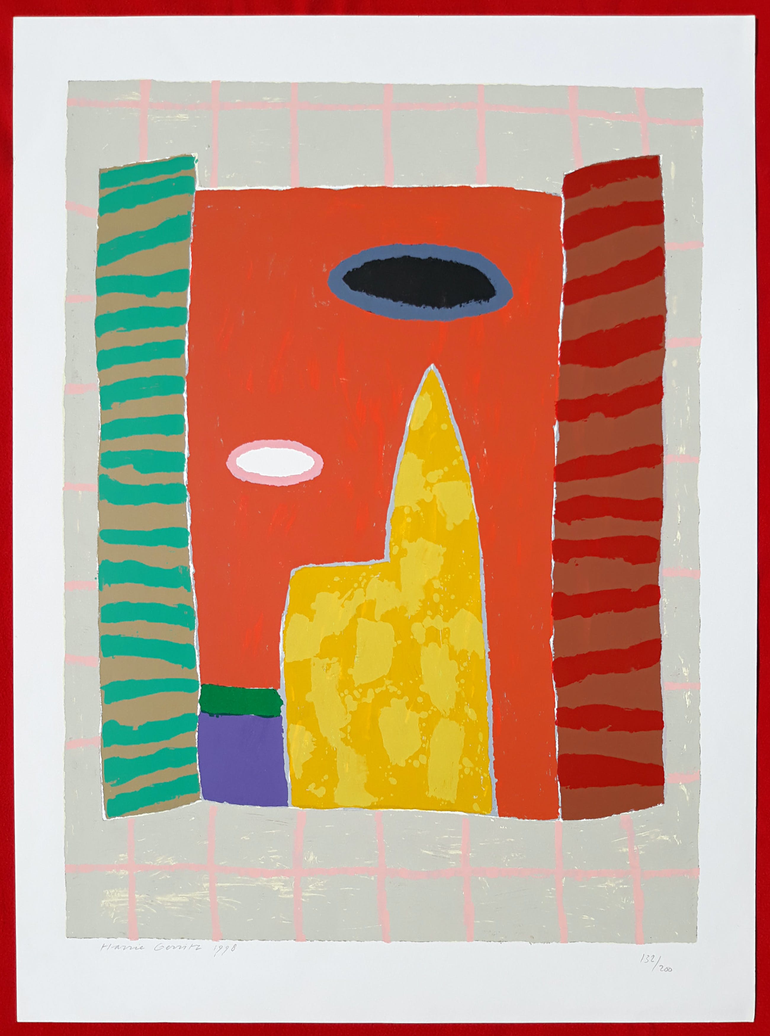 Prachtige, kleurrijke compositie van Harrie Gerritz. Zeefdruk op papier, met potlood gesigneerd, gedateerd (1998) en genummerd (132/200). In uitstekende conditie.