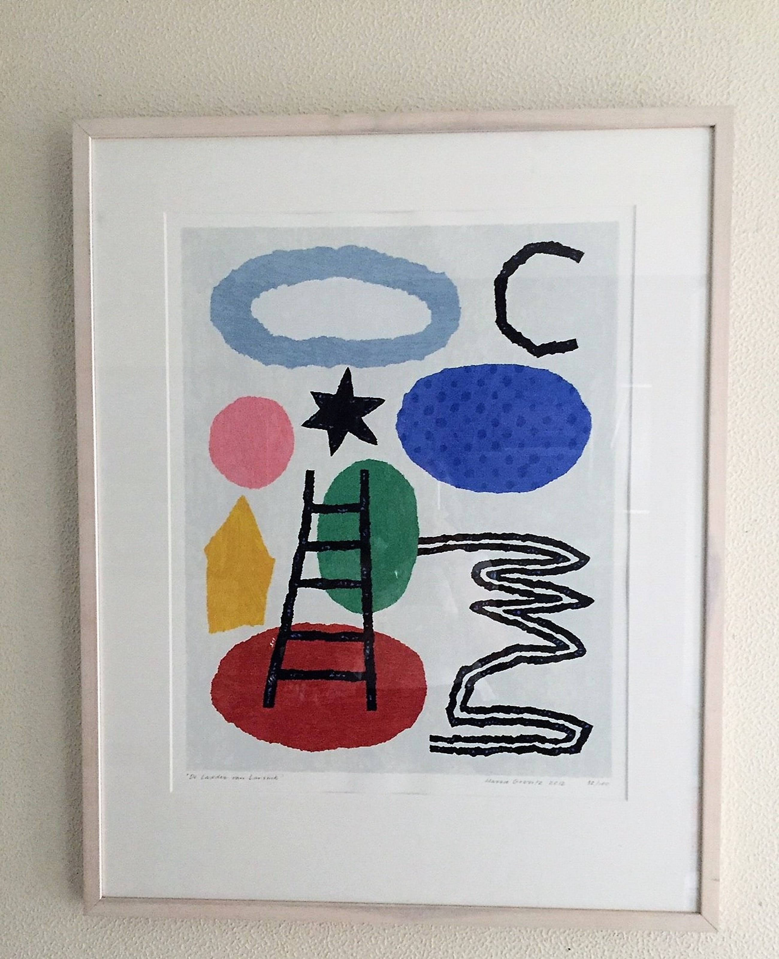 Grafische werken van Harrie Gerritz 1940 in de verzameling van het Rijksmuseum te Amsterdam. Uit de nalatenschap van meesterdrukker en galeriehouder Piet Clement die in 2012 is overleden, is een collectie etsen, litho’s en zeefdrukken geschonken aan het Rijksmuseum. Deze zeefdruk is groot. Lijst is mooi en zwaar. Ophalen in Roosteren of B-Maaseik. Bezorgen via koerier of aanbieder mogelijk in overleg. https://rkd.nl/nl/explore/artists/31154