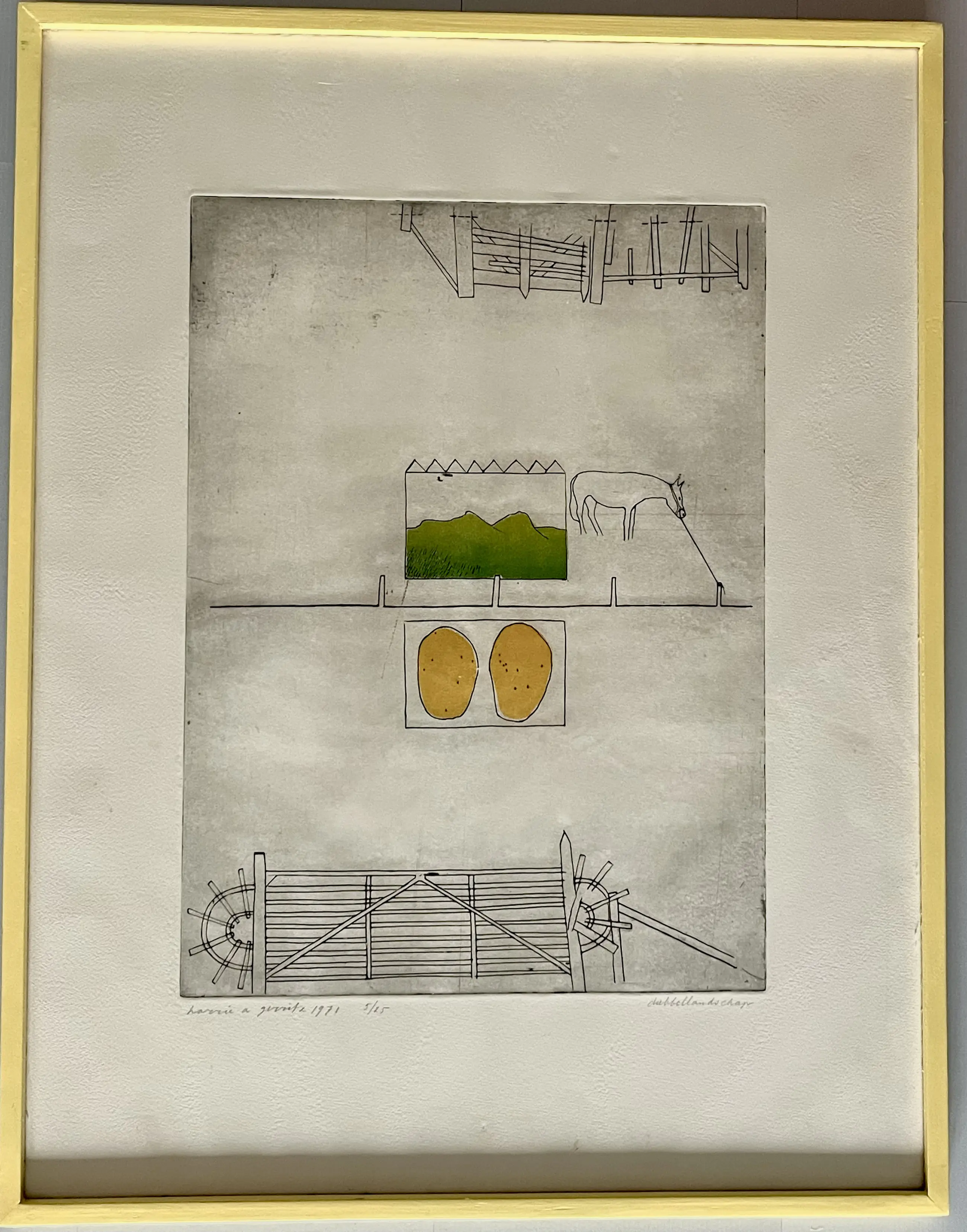 Het werk is op een eenvoudige manier ingelijst. Geen passe-partout. De lijst is licht geel geschilderd.