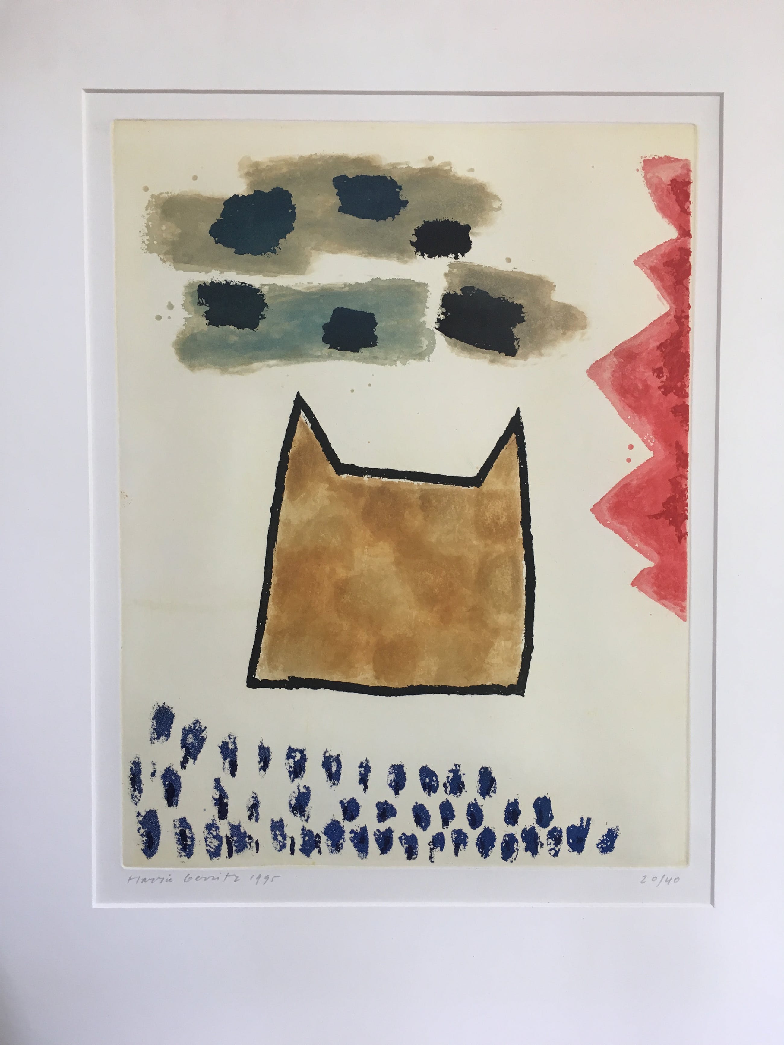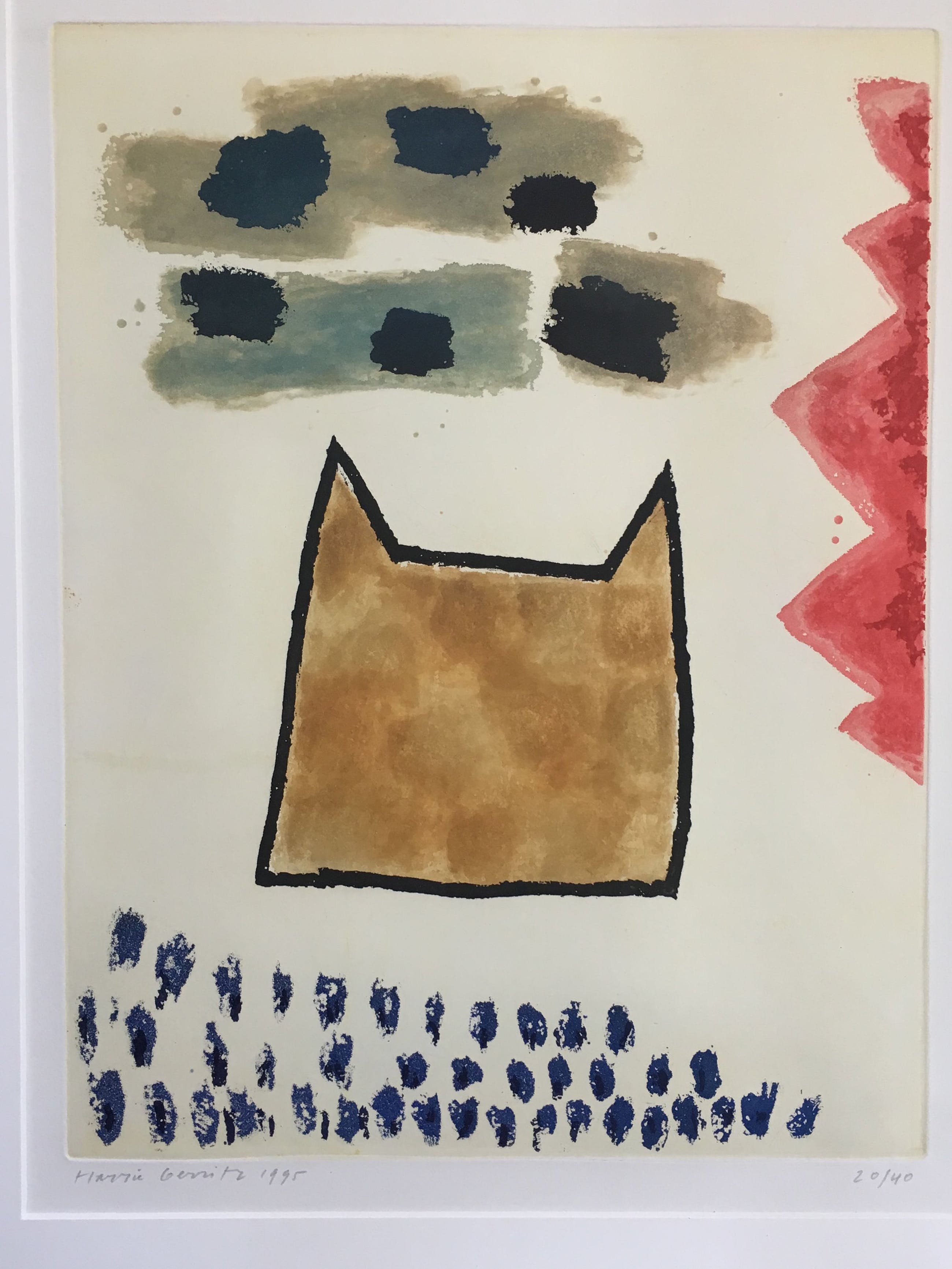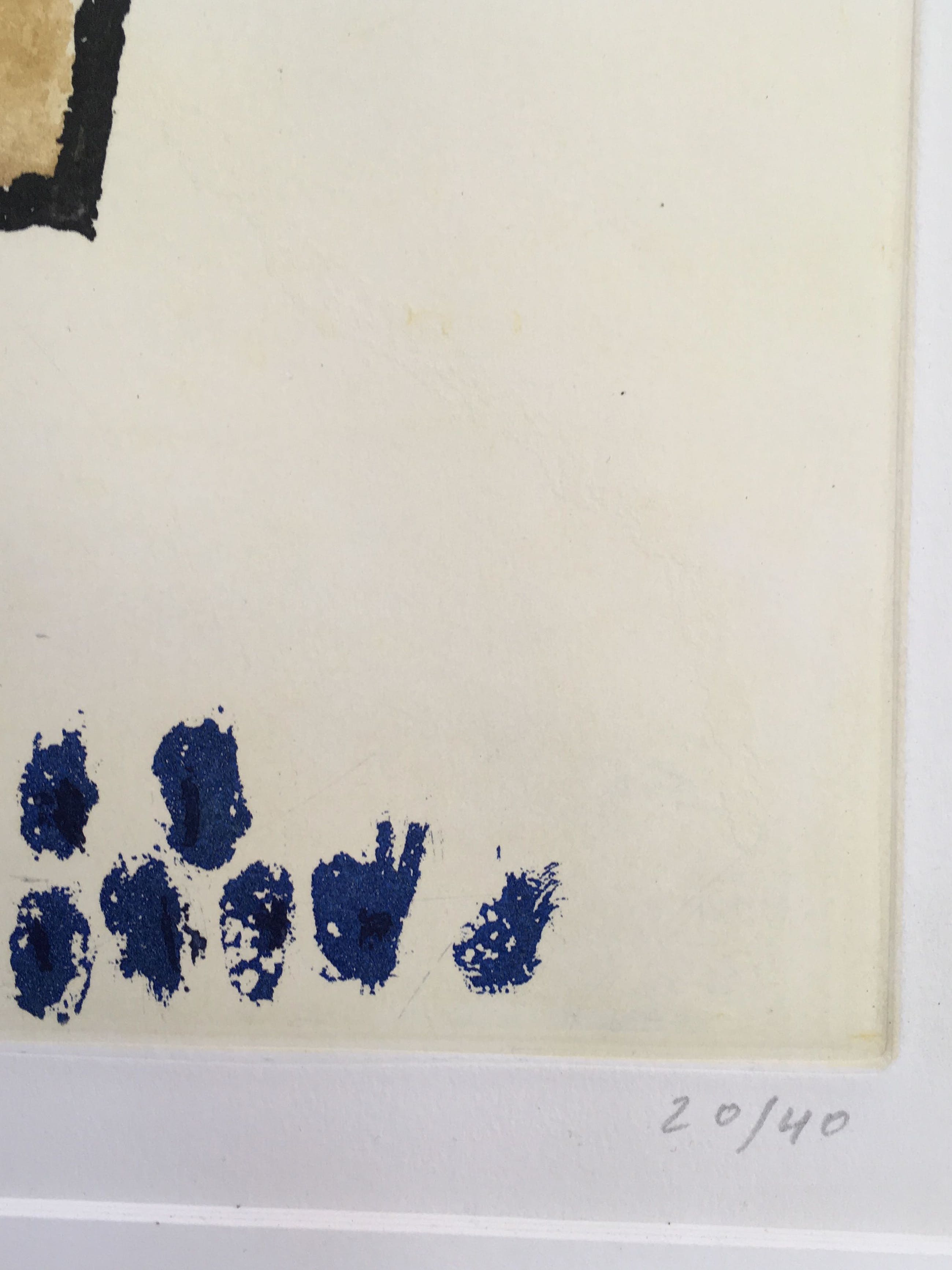 Wil voorkomen dat iemand misschien een oneffenheid ontdekt. Het werk is altijd ingelijst en achter glas bewaard. Passe partout heeft een paar lichte beschadigingen. Kleine lichte veeg en krasje.