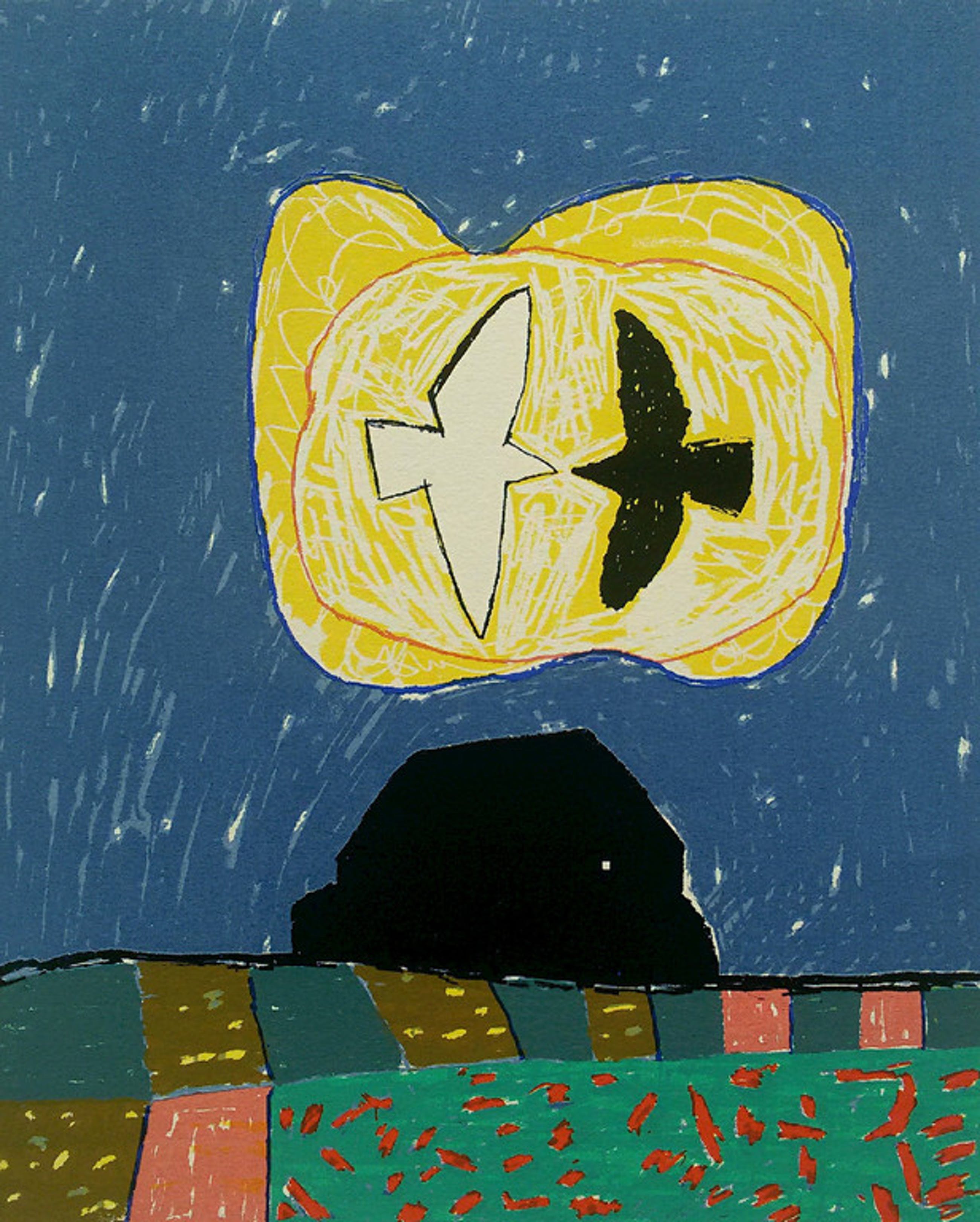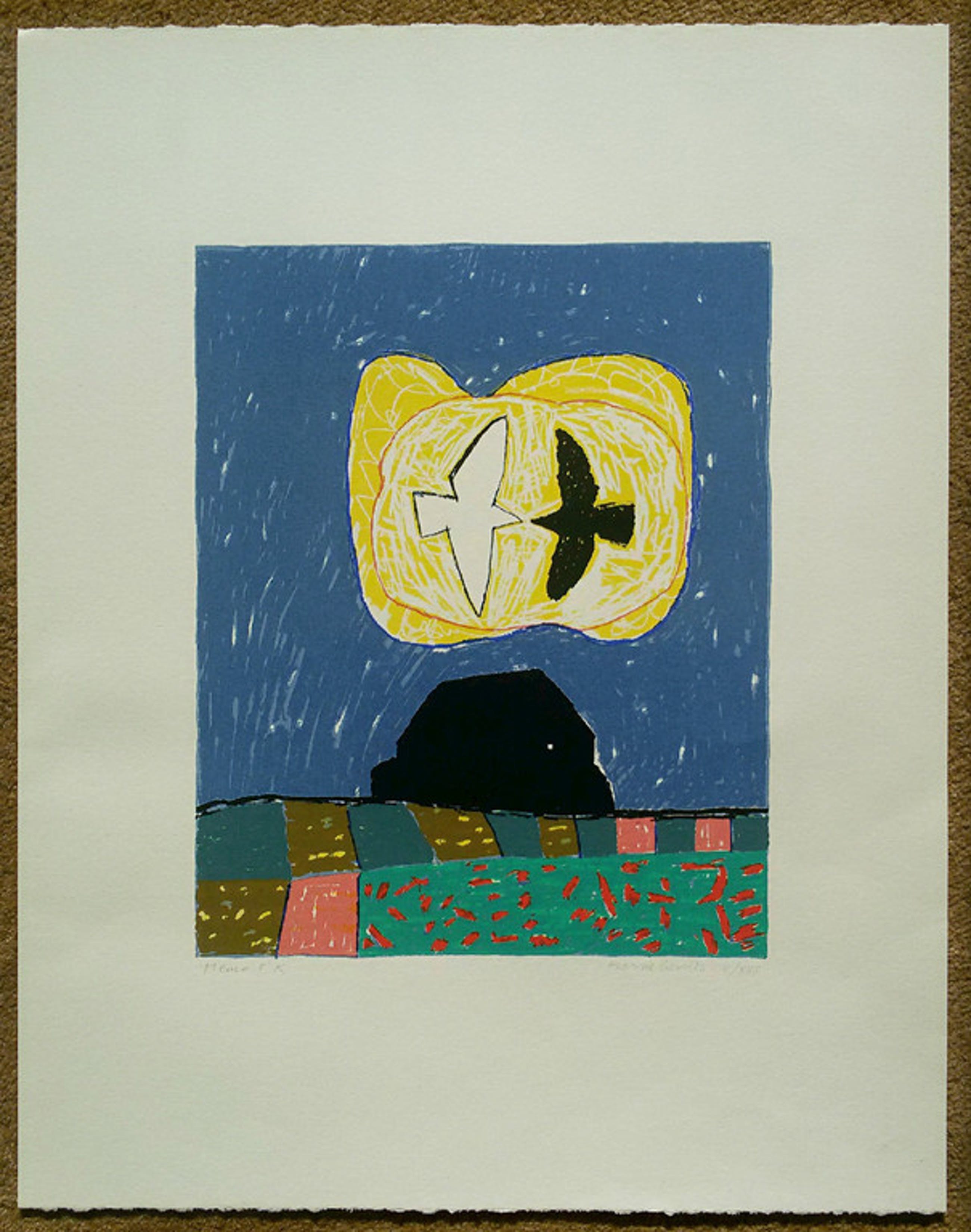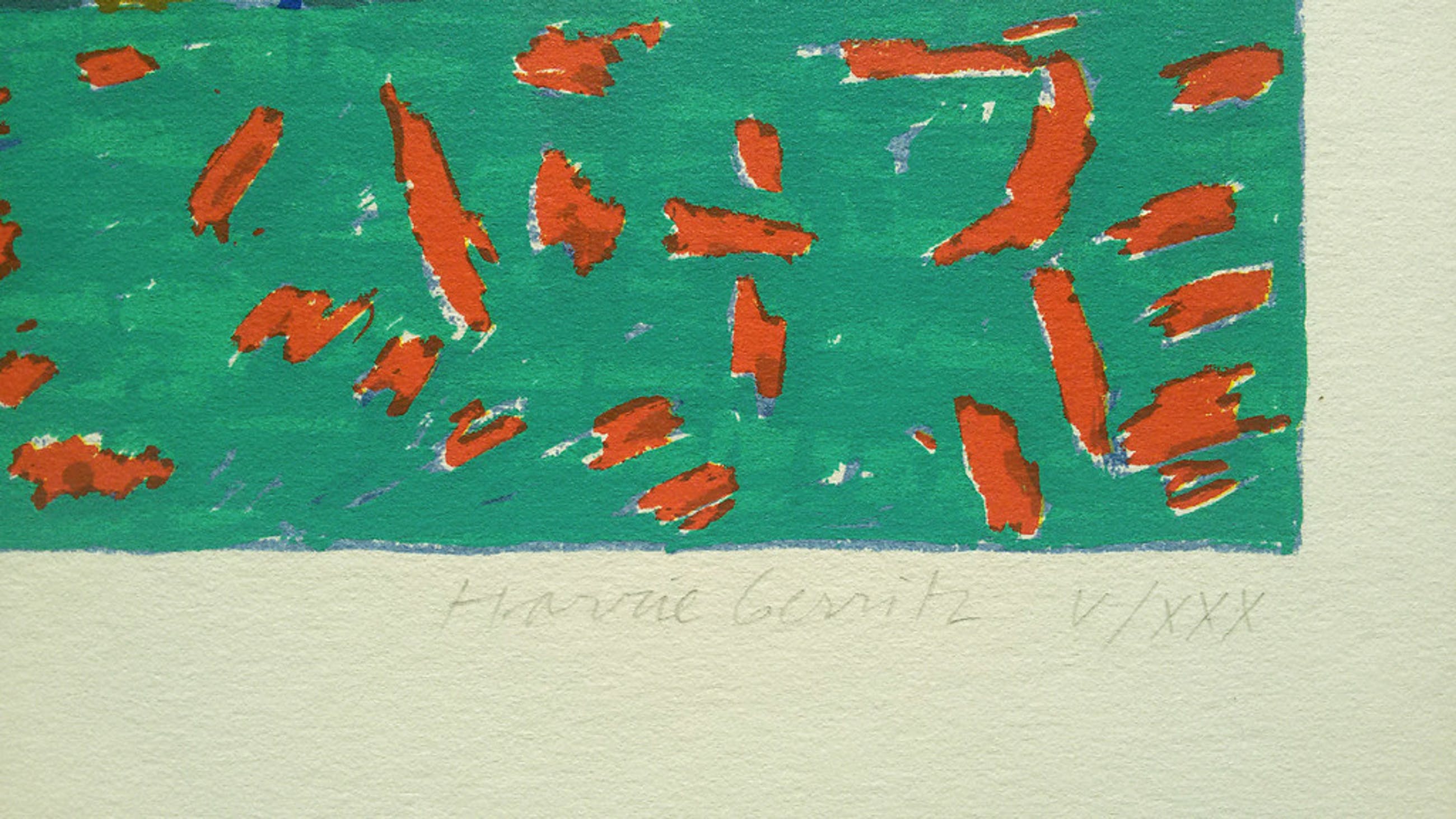 Mooie zeefdruk van Harrie Gerritz op dik geschept papier. Met potlood gesigneerd, getiteld en genummerd “V/XXX” (5/30). Nooit ingelijst geweest, in uitstekende conditie.