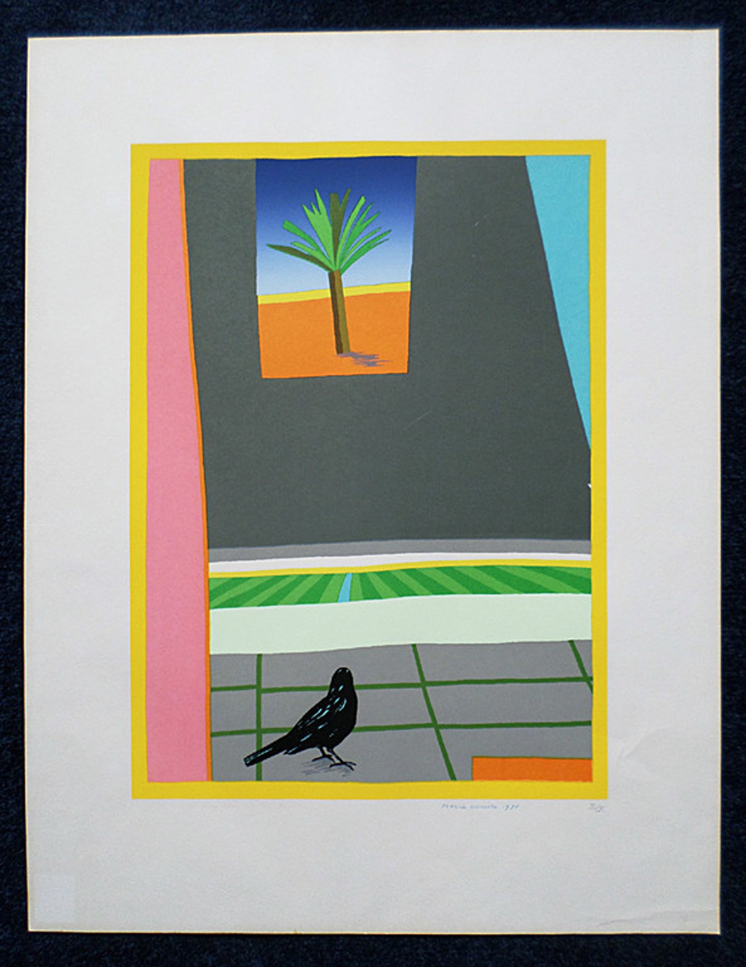 Mooie zeefdruk van Harrie Gerritz uit 1978. Gesigneerd in blauw (potlood?), titel nog net leesbaar en genummerd met gewoon potlood (II/X). Dit is dus nummer 2 uit een oplage van 10 stuks. In prima conditie, alleen wat lichte kreuken in witte marge linksonder, niet zichtbaar wanneer ingelijst met passe-partout.