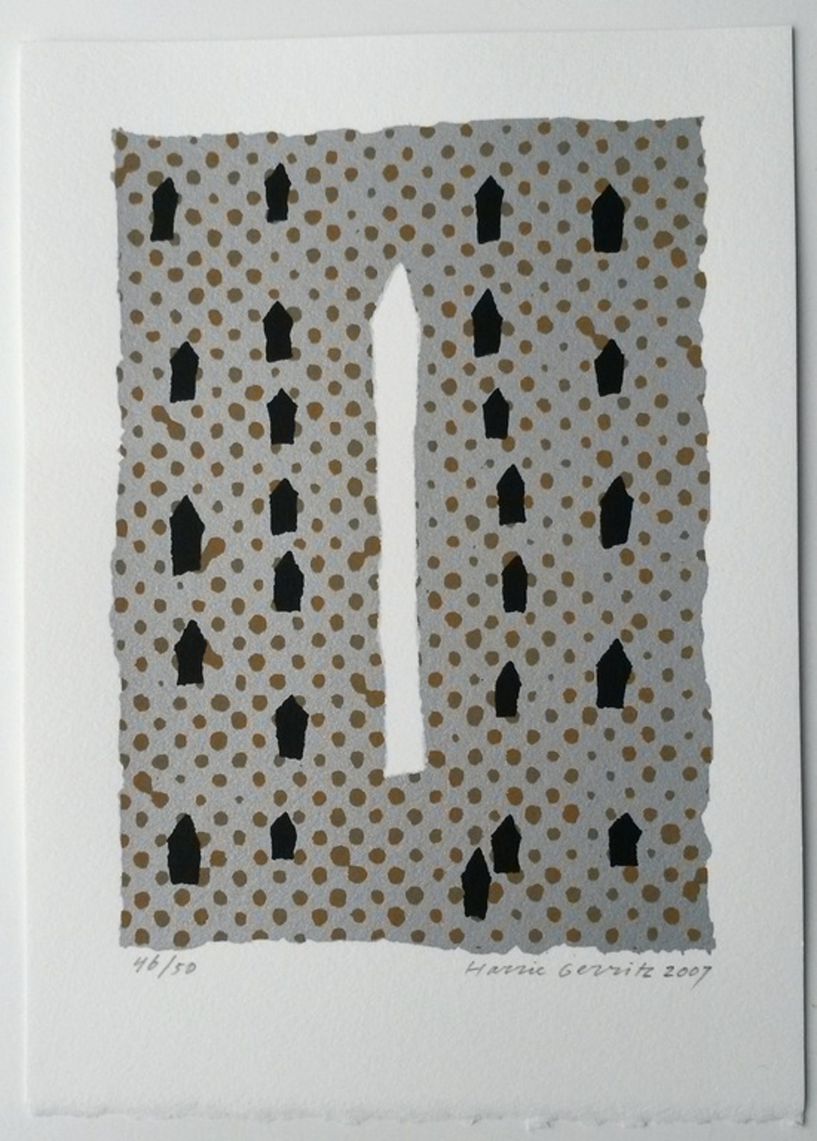 Zeefdruk van Harrie Gerritz, getiteld White Tower. Het werk is met o.a. zilverkleurige inkt gedrukt op geschept papier van 28 x 20 cm. De afbeelding is 21 x 15 cm. De zeefdruk is met potlood gesigneerd, gedateerd 2007 en van oplagenummer 46 / 50 voorzien. Het werk is als nieuw, losbladig, nooit ingelijst geweest.