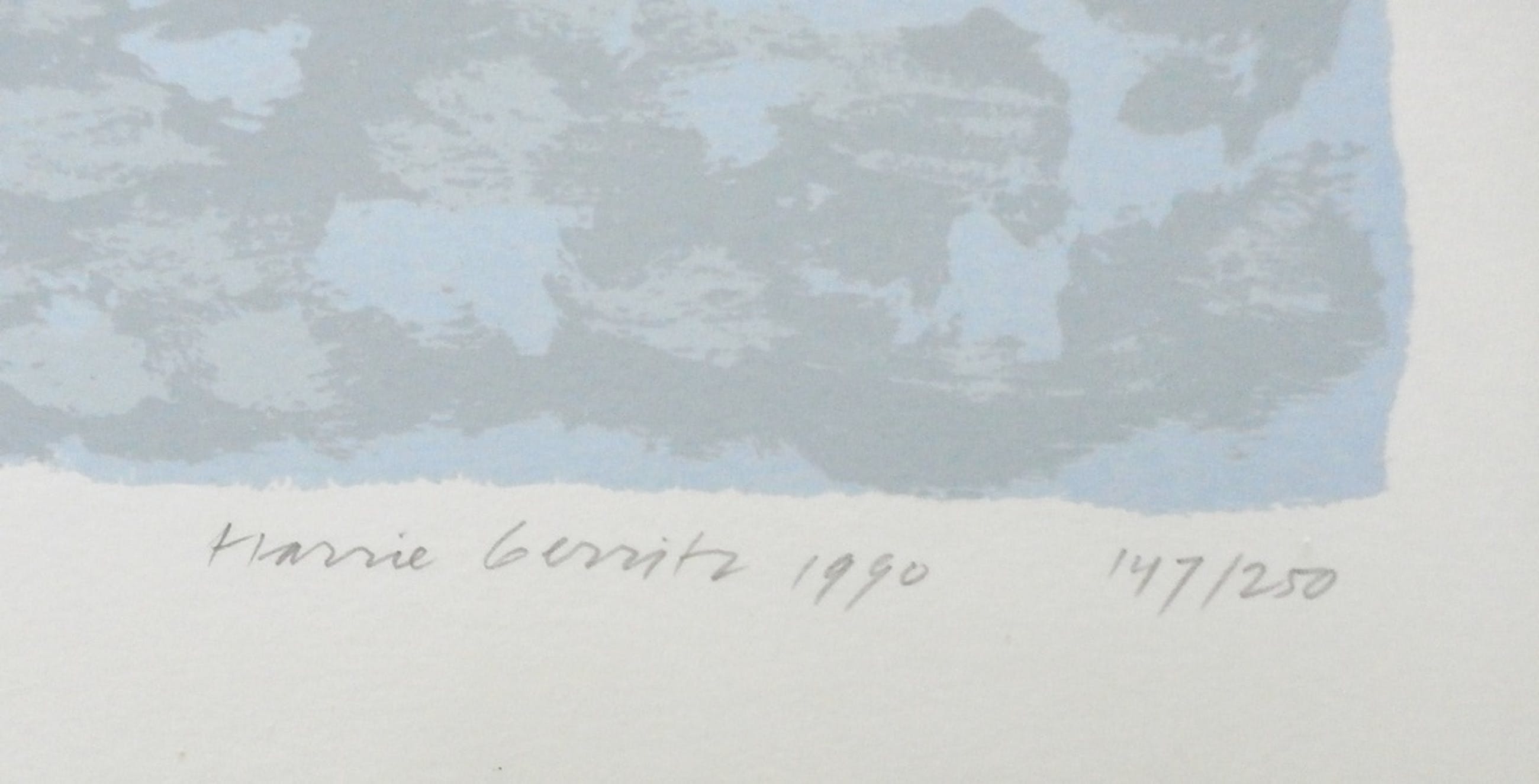 Zeefdruk van Harrie Gerritz uit 1990. Nummer 147/250. Afmetingen blad H54.5x b60cm. Afmetingen voorstelling H45.5 x b45.5cm. Het werk is rechtsonder gesigneerd door de kunstenaar. De authenciteit van het aangeboden werk wordt voor 100% gegarandeerd. Een certificaat van echtheid kan, op aanvraag worden meegestuurd. Herkomst: Collectie ABN AMRO. Conditie: Plakresten aan bovenzijde, deze vallen bij inlijsting in de passe partout. Hoekje linksonder is iets omgevouwen.
