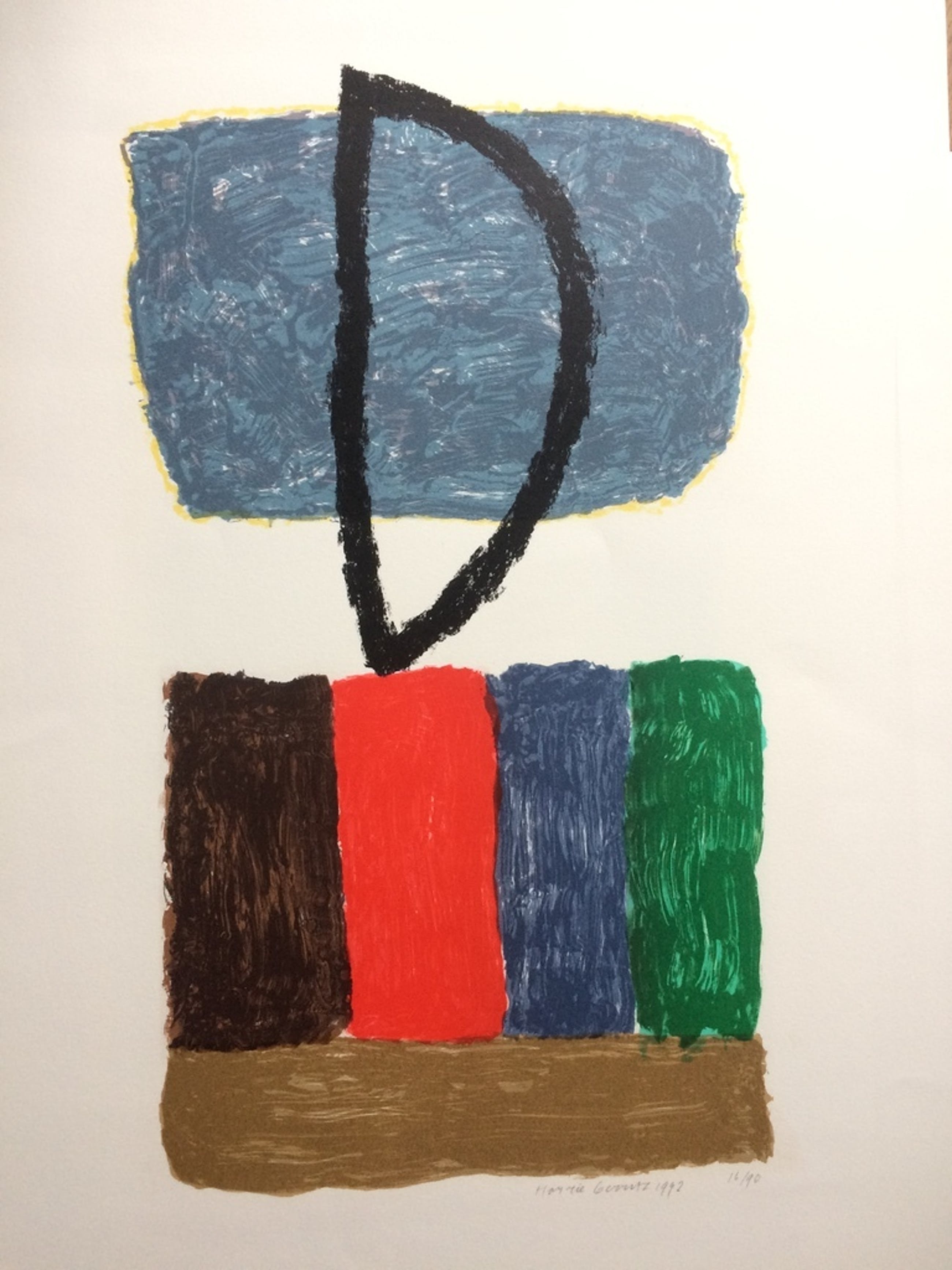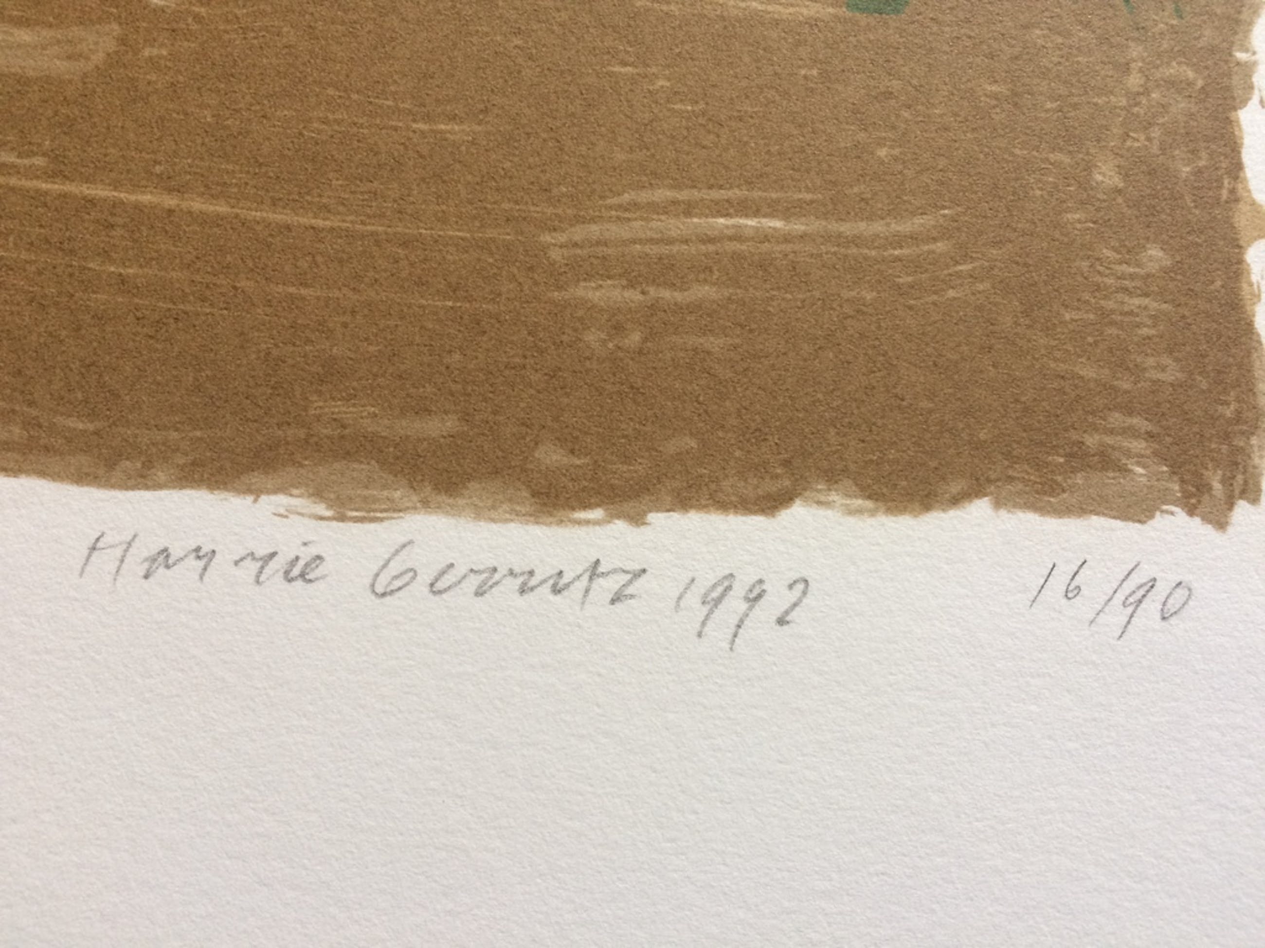 Harry Gerritz, zeefdruk zonder titel, 16/90. Formaat 73 x 55 cm. Afgedrukt in een oplage van 90 exemplaren is dit nummer 16. Het kunstwerk kan worden opgehaald in onze galerie of aangetekend verzonden worden in een stevige kartonnen verpakking.