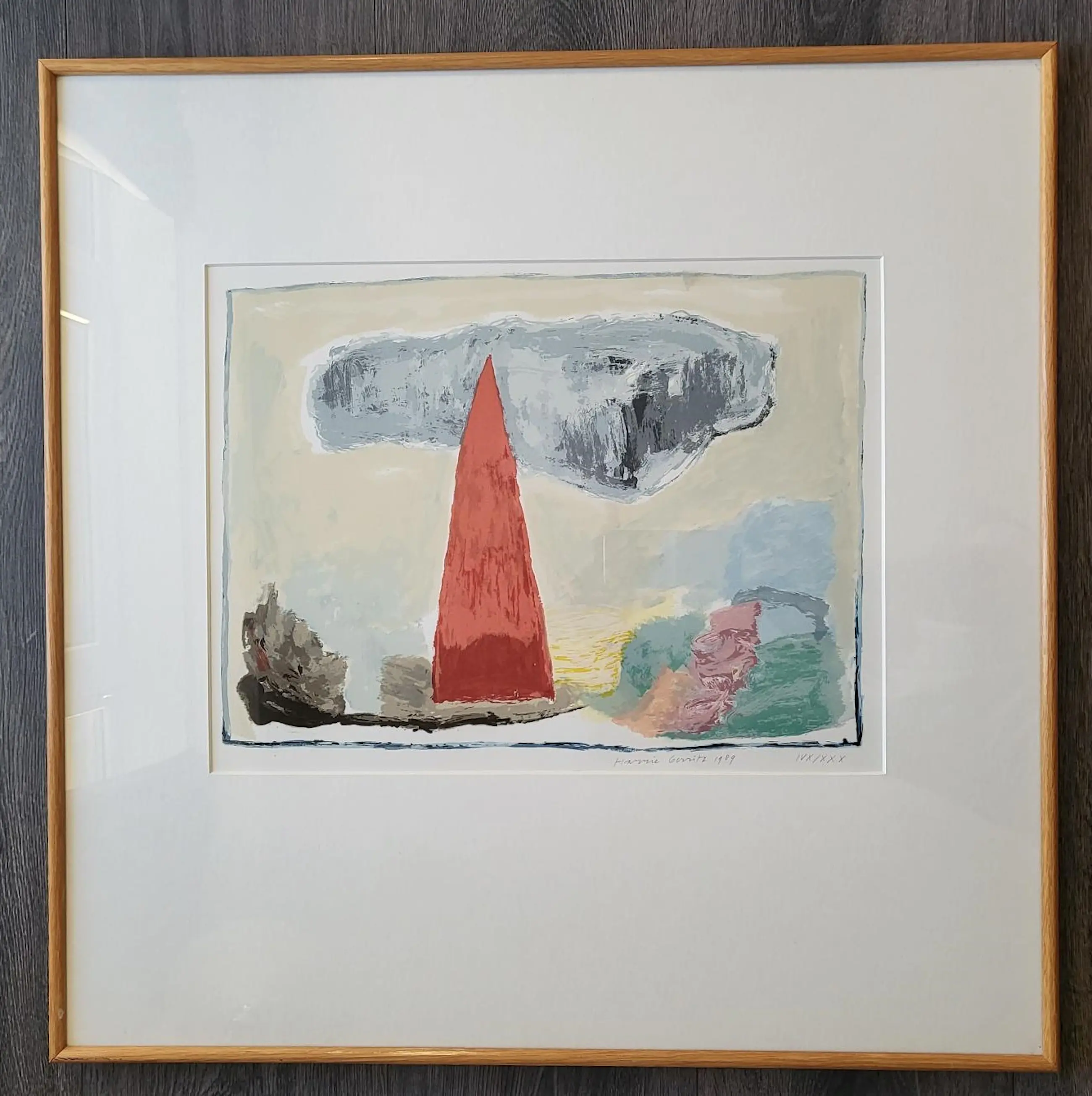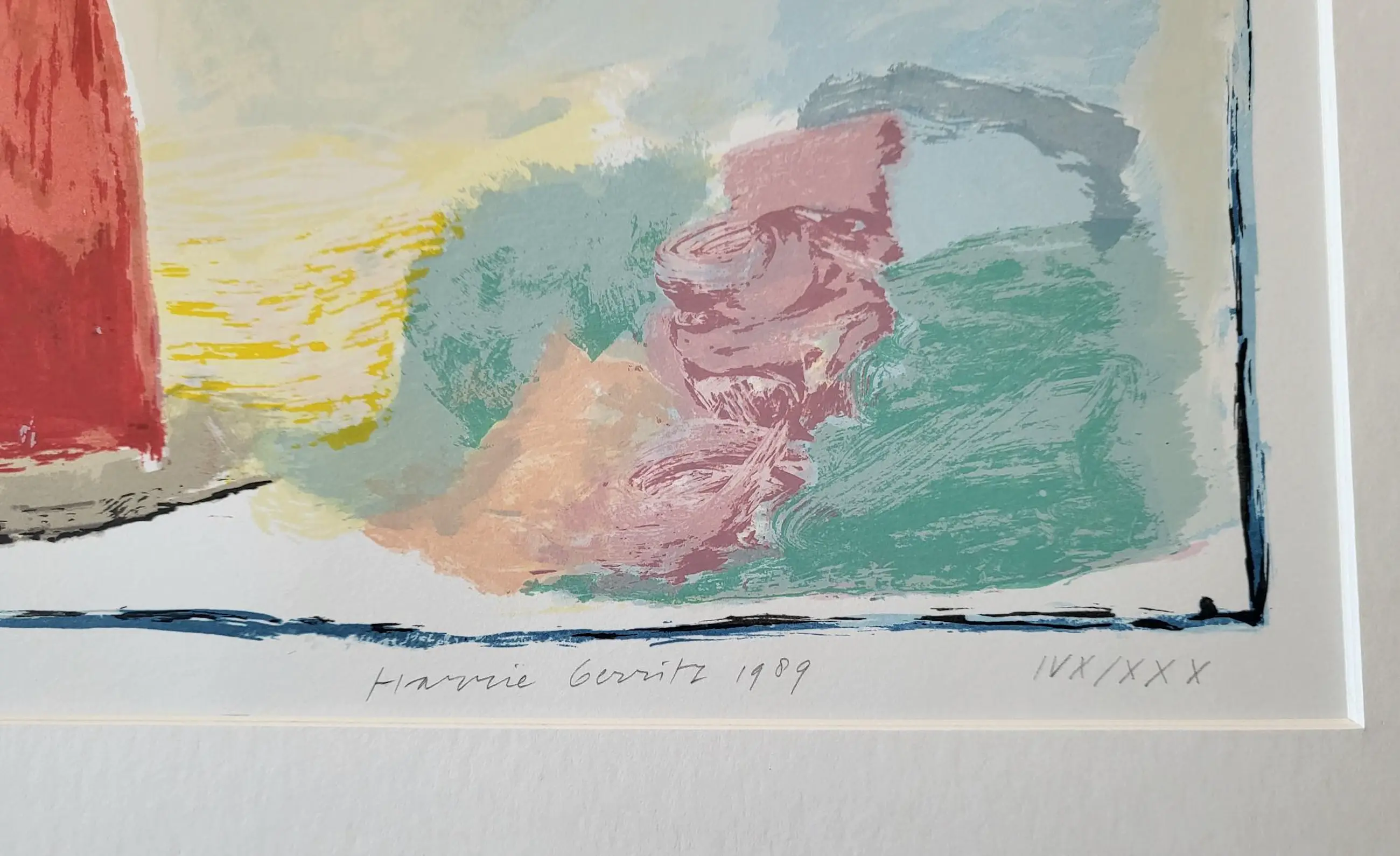 Prachtige kenmerkende zeefdruk van Harrie Gerritz. Netjes ingelijst achter glas in een houten lijst met passe partout.