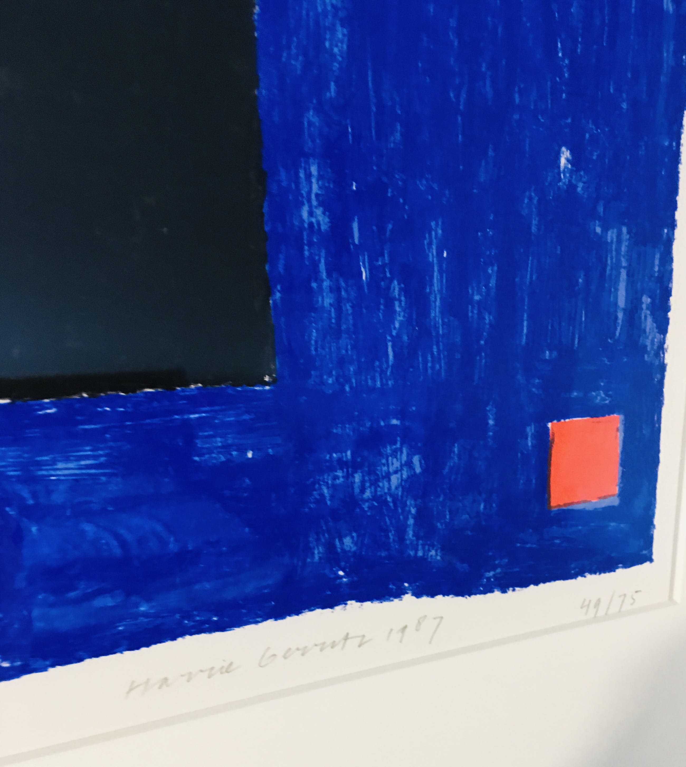 Fraaie grote zeefdruk van Harrie Gerritz uit 1987. Het werk is gesigneerd, betiteld en genummerd 49/75.