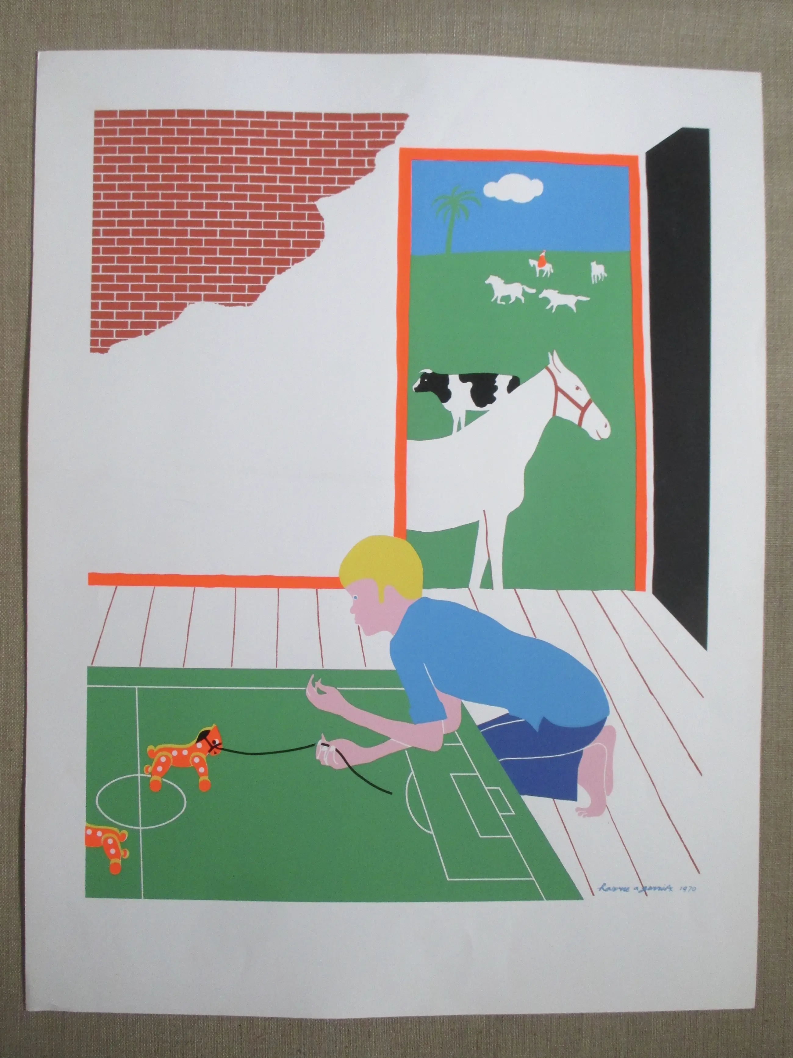 Zeefdruk van harrie Gerritz, gesigneerd en gedateerd in de druk.