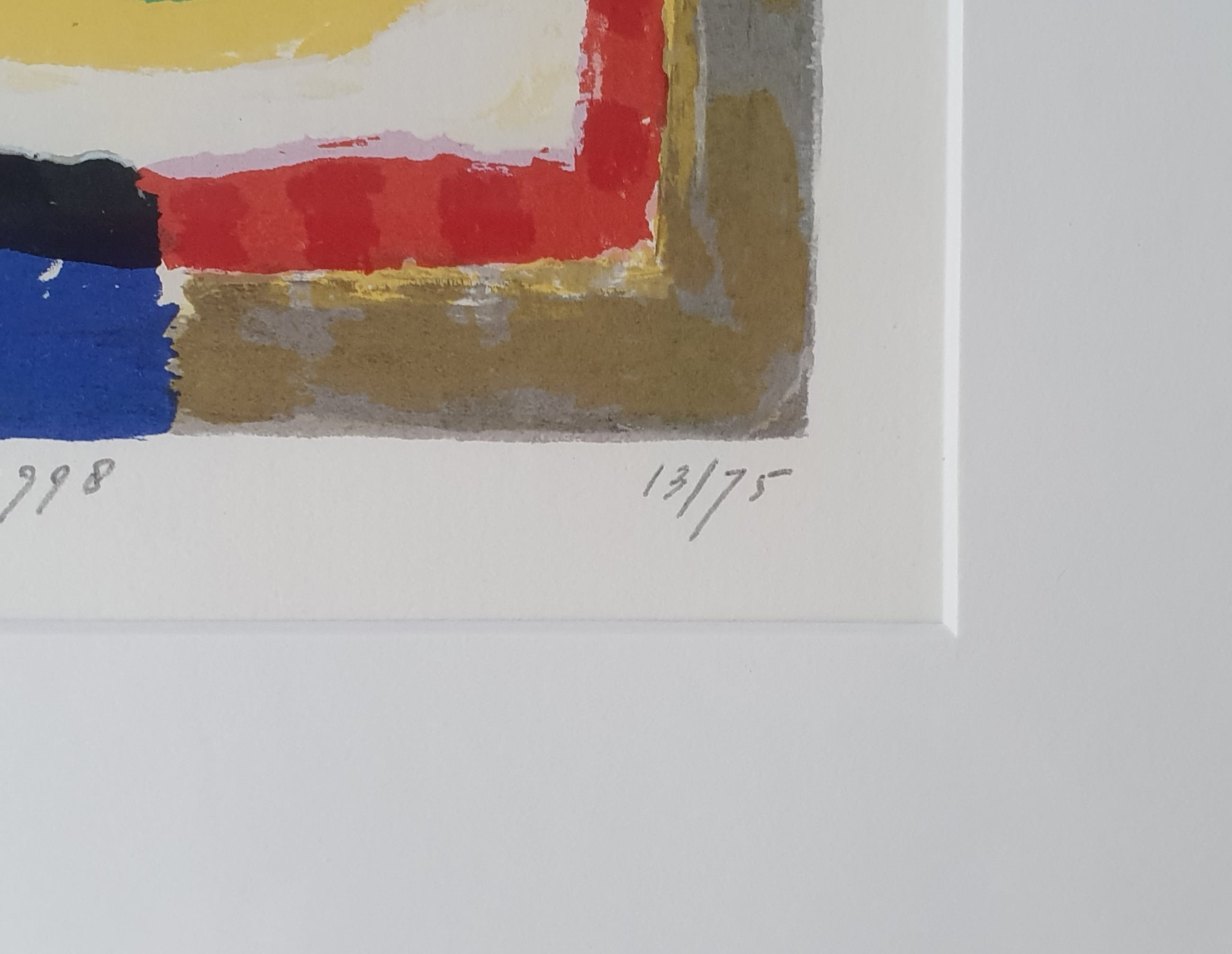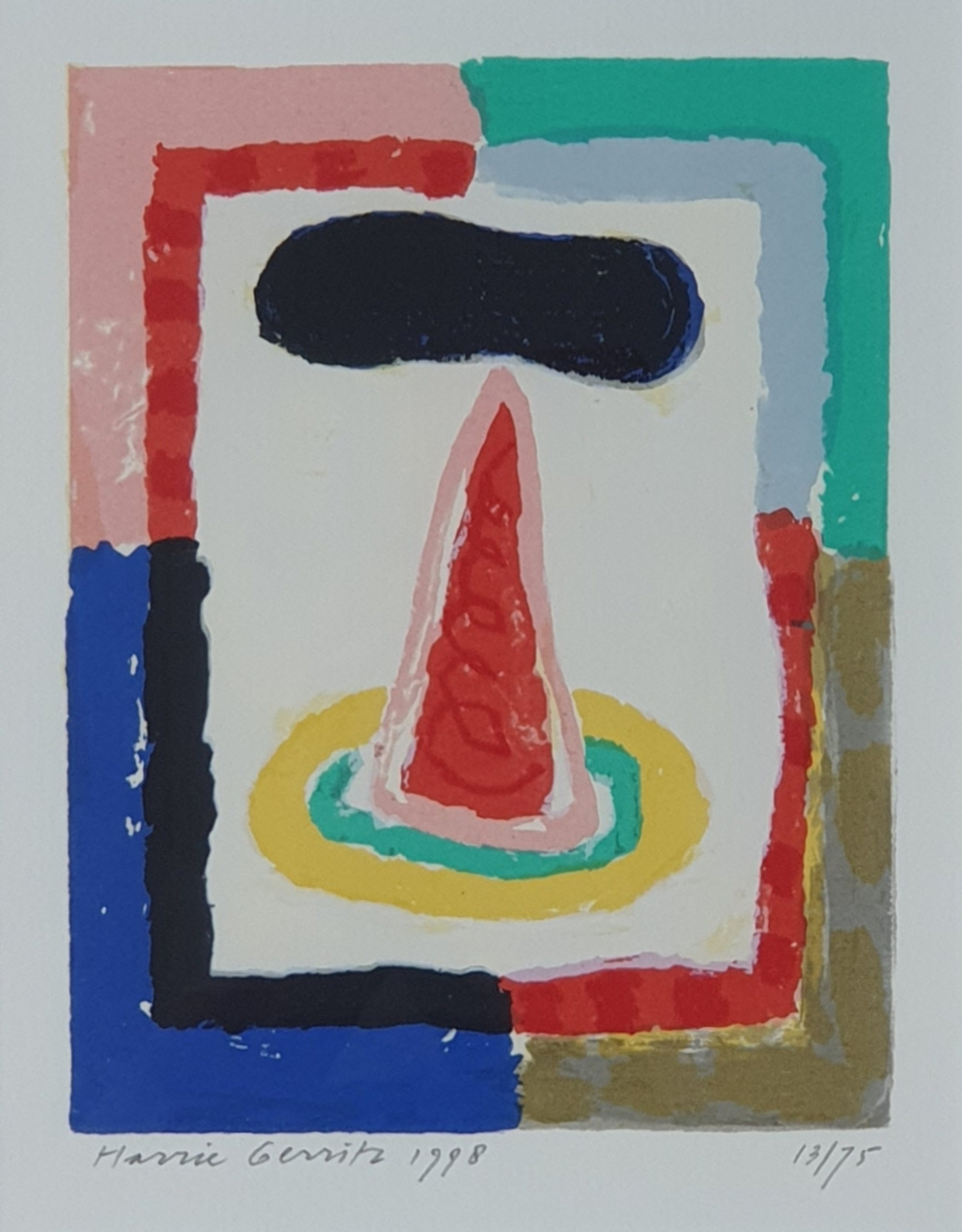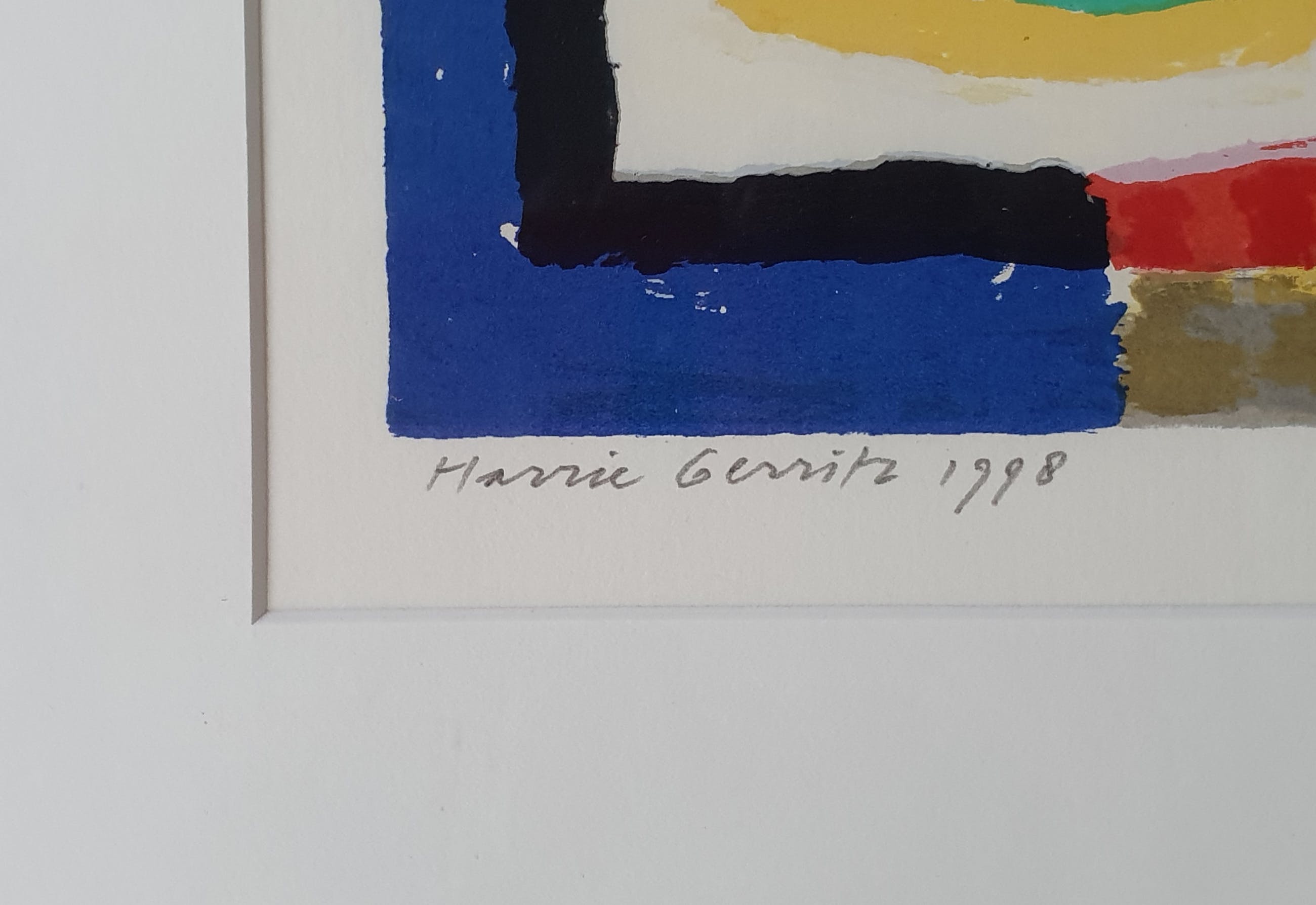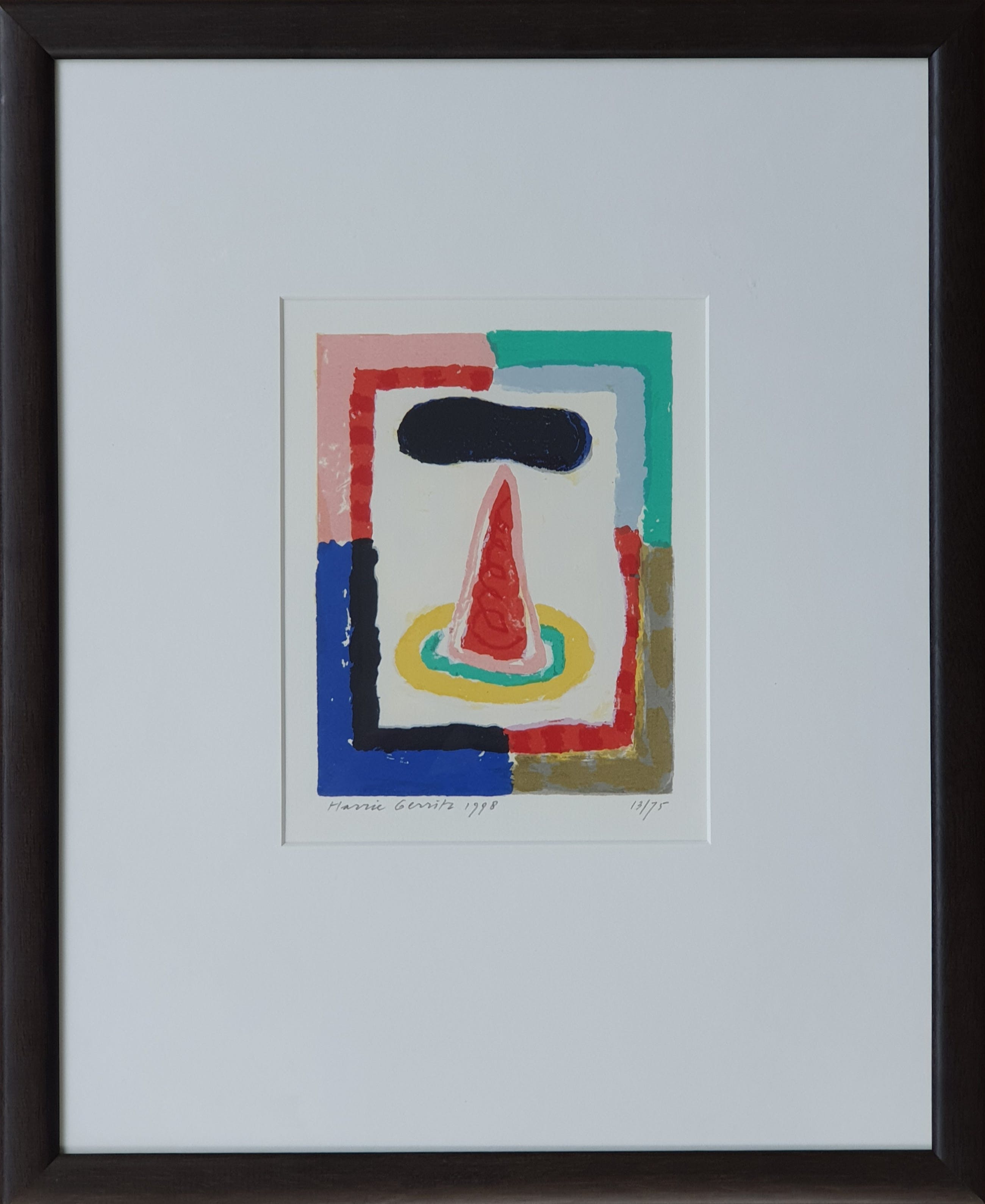 Mooi kleurrijke zeefdruk van Harrie Gerritz uit 1998. Ingelijst en gesigneerd. Totale afmetingen met lijst 44x36 cm. Genummerd: nr 15 van 75.