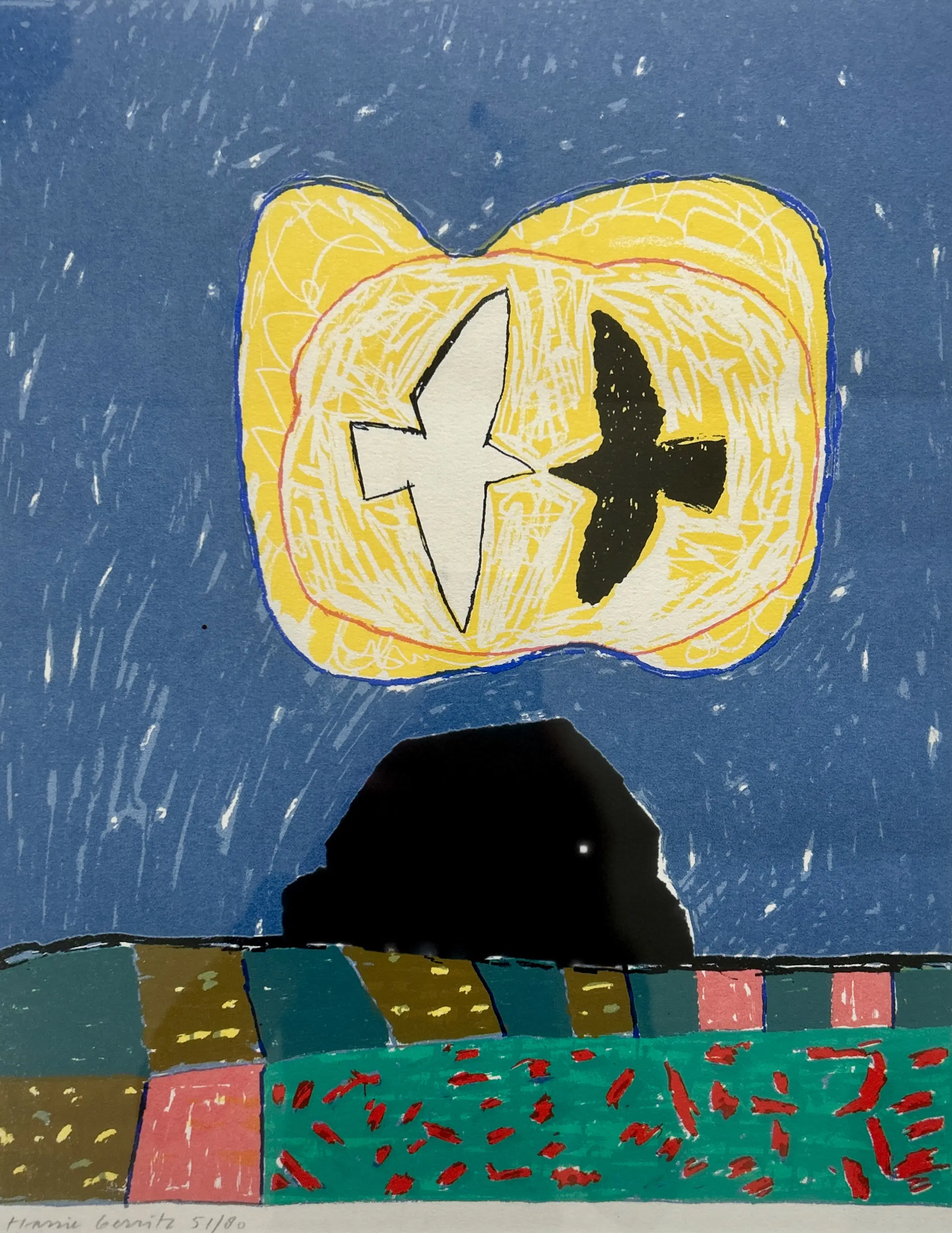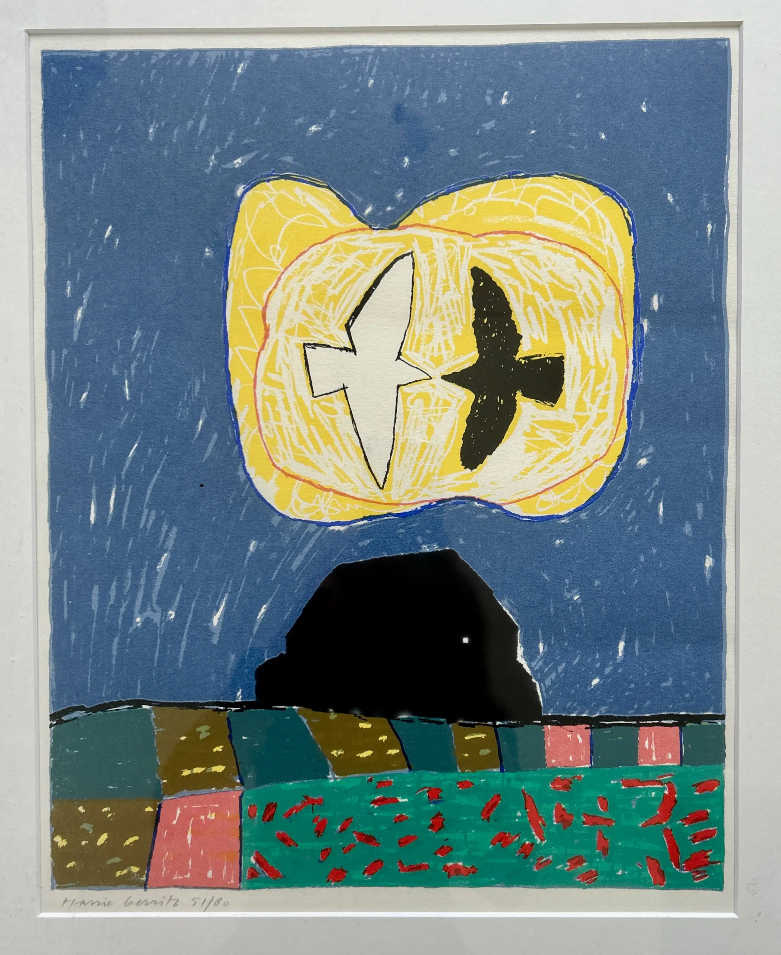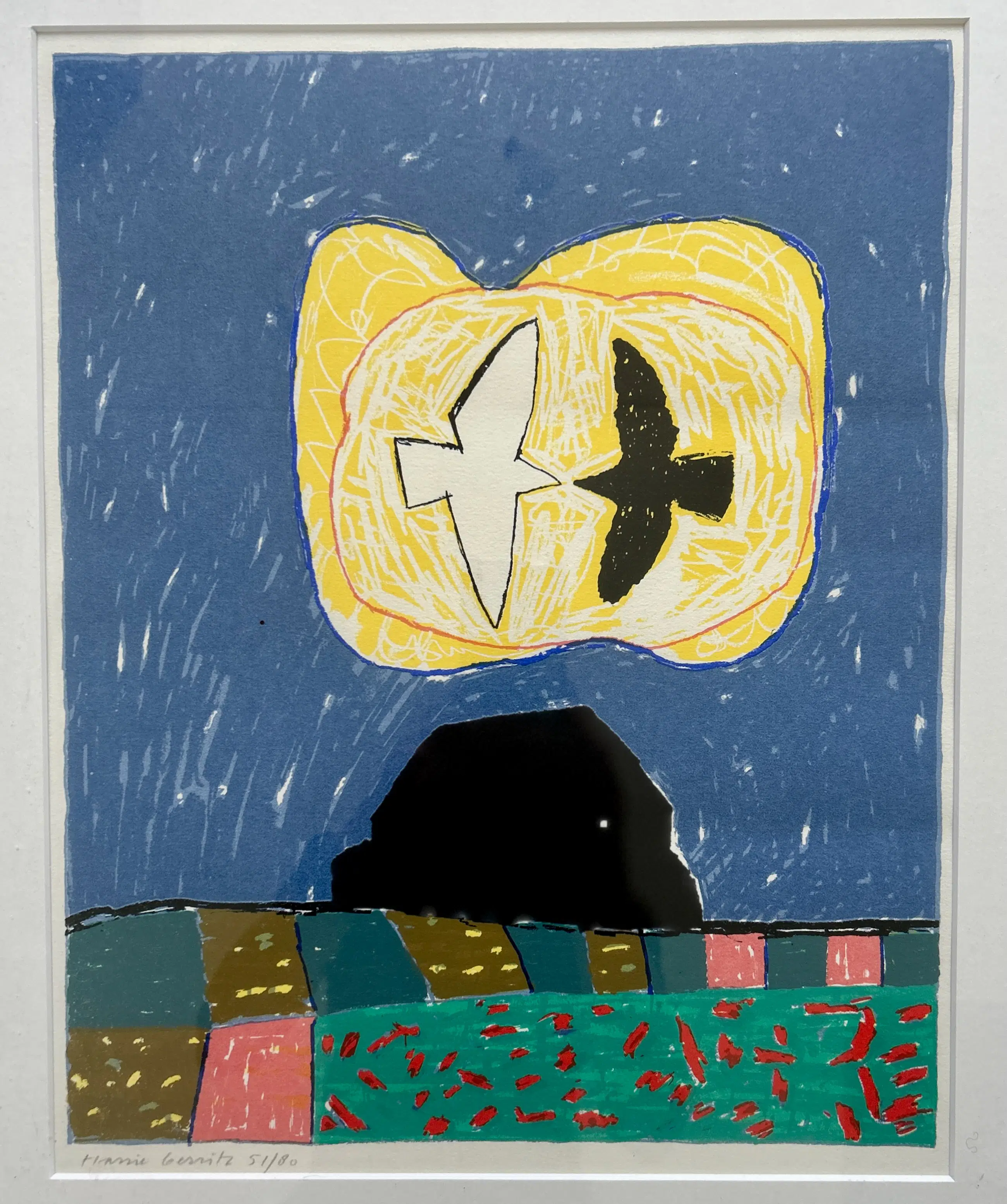 Conditie: uitstekend. Ingelijst achter glas in een zwarte lijst, lijst heeft lichte gebruikssporen. Weerspiegeling van mobiel op foto's. Oplage: 51/80.