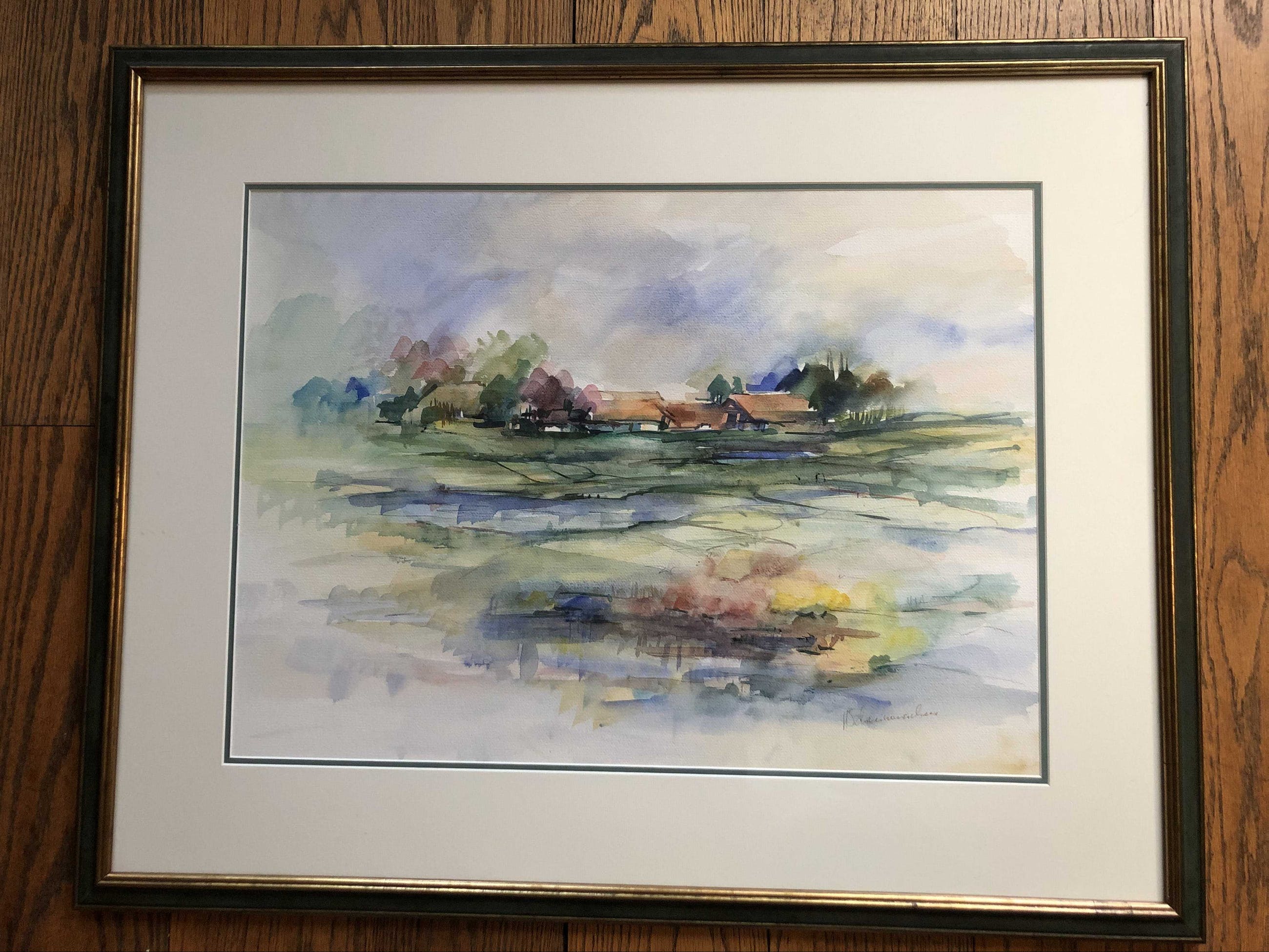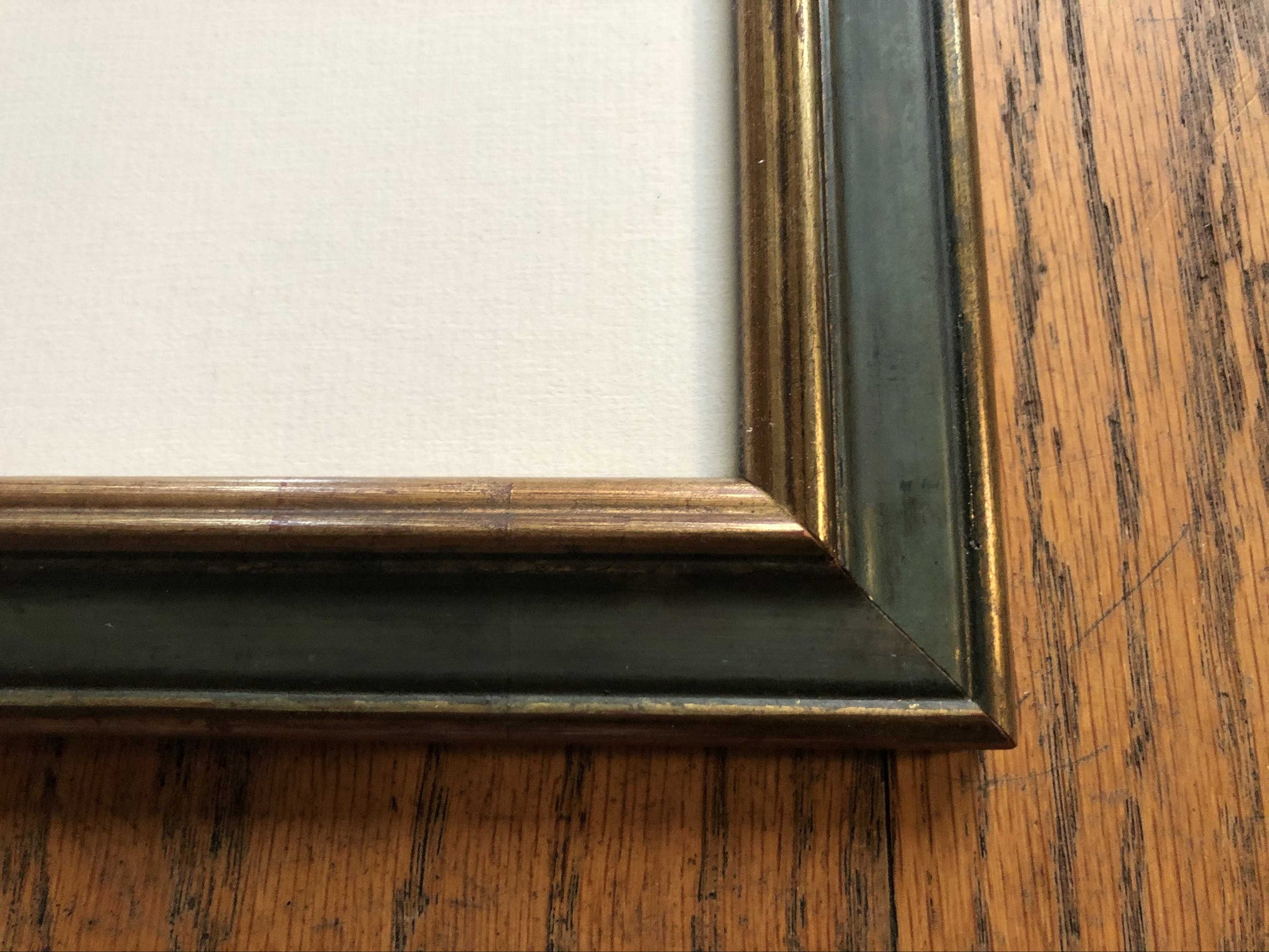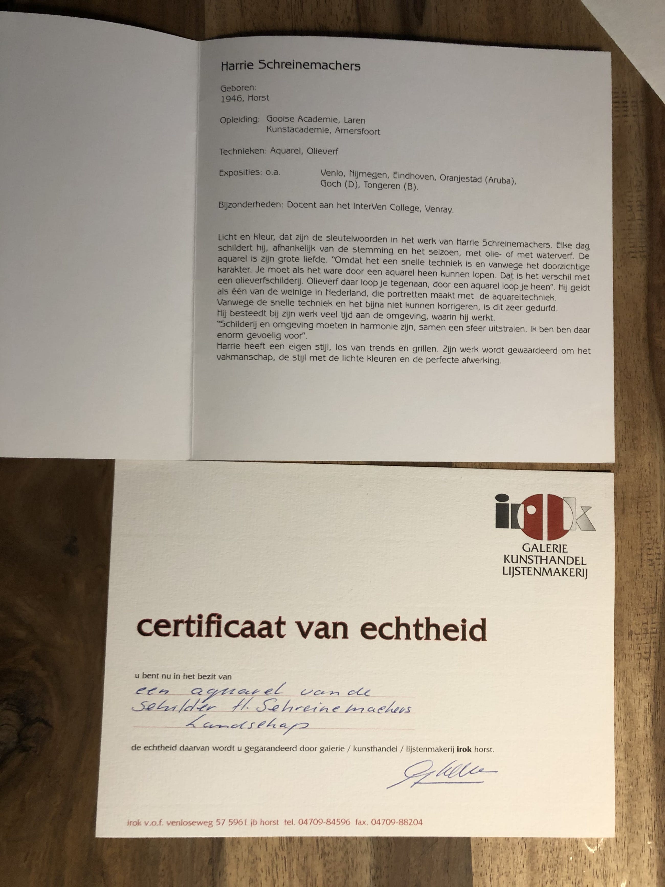 Ingelijst in donker groene/koper kleurige lijst. In bezit van certificaat van echtheid.