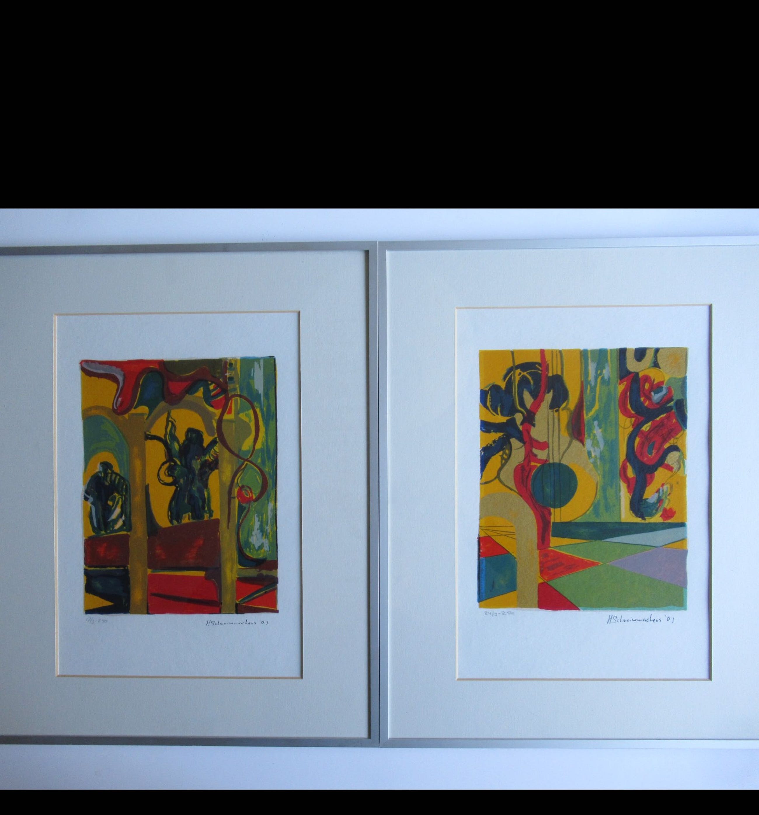 Twee mooi werken in aluminium lijst.De afmetingen zijn per werk.