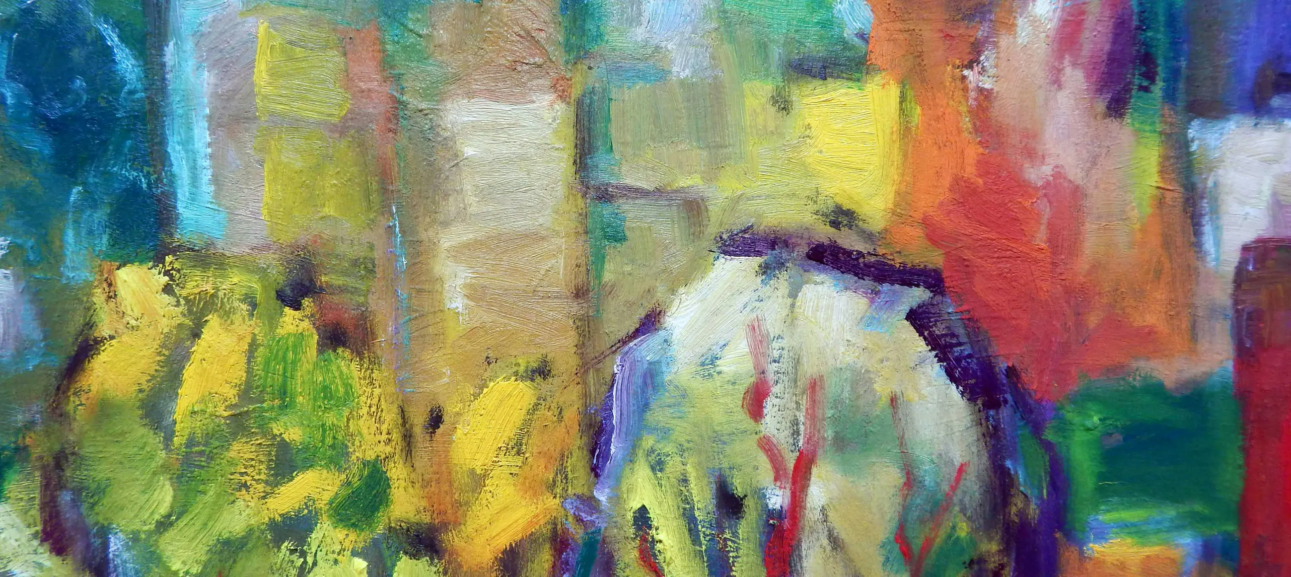 Expressive cityscape in which canal and architecture are rendered in a free, painterly manner. Color and rhythm shape the composition rather than literal representation.