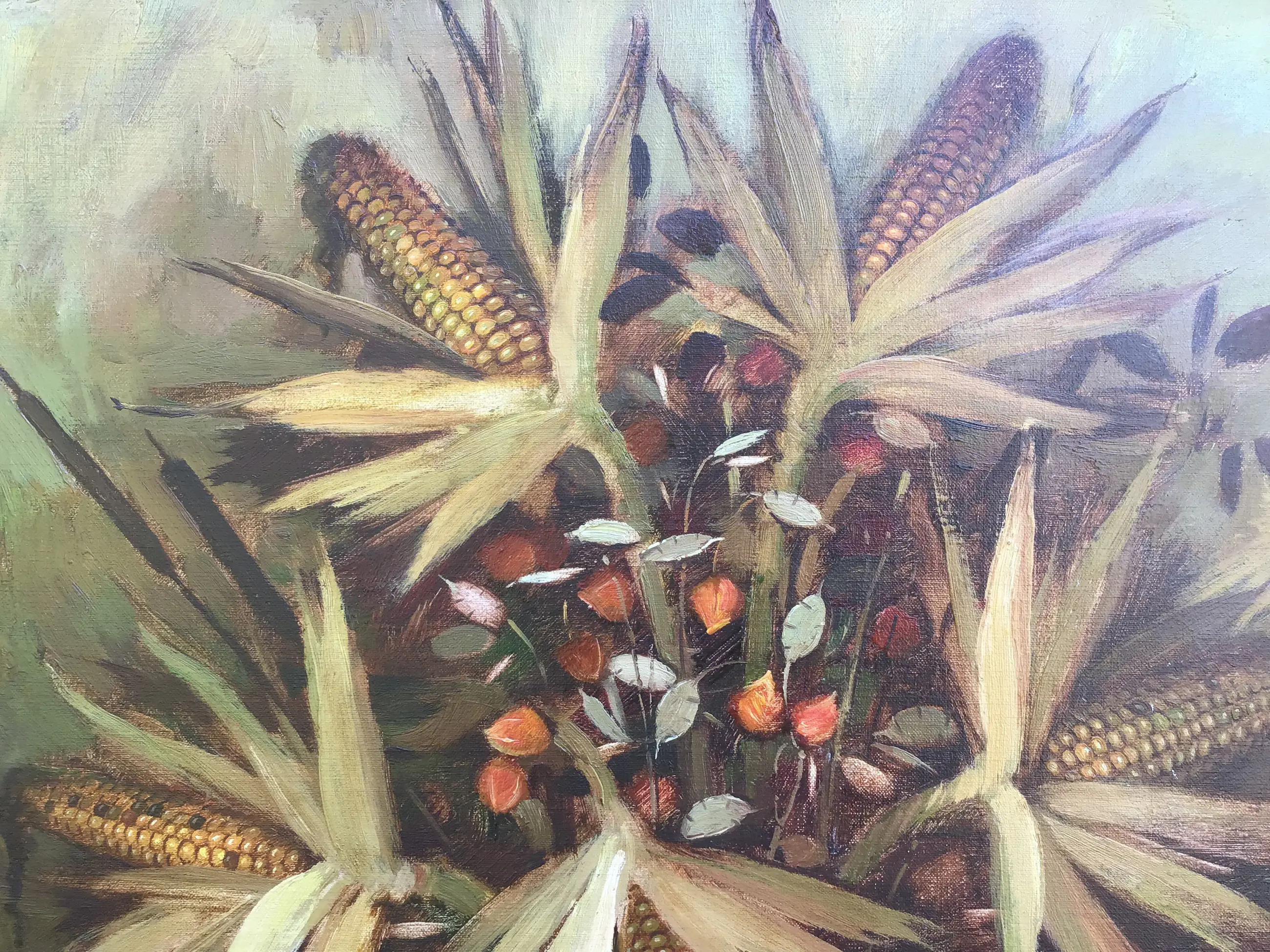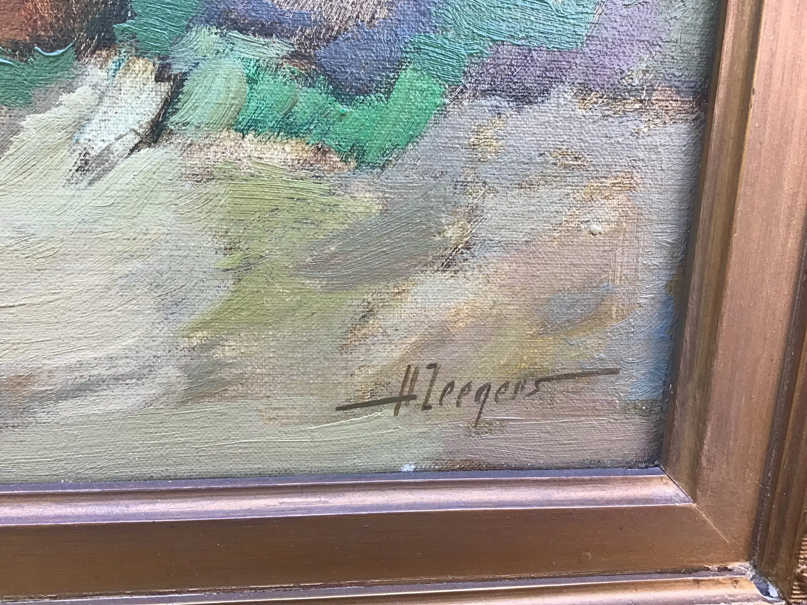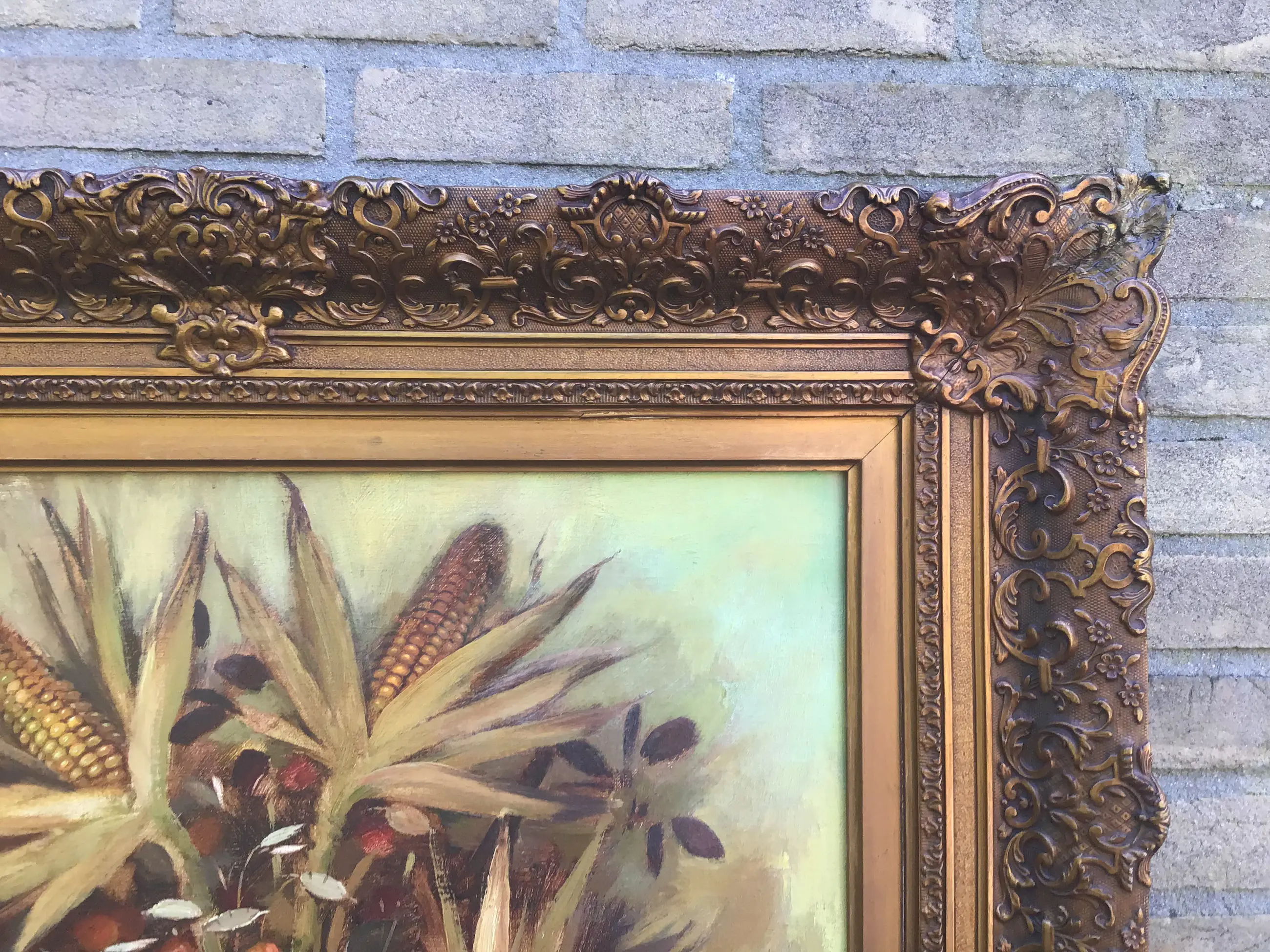 Indrukwekkend stilleven in zware indrukwekkende baroklijst van Harrie Zeegers(1929). Sfeervolle compositie in aardse tinten met een ondanks een reparatie nog steeds prachtige lijst.