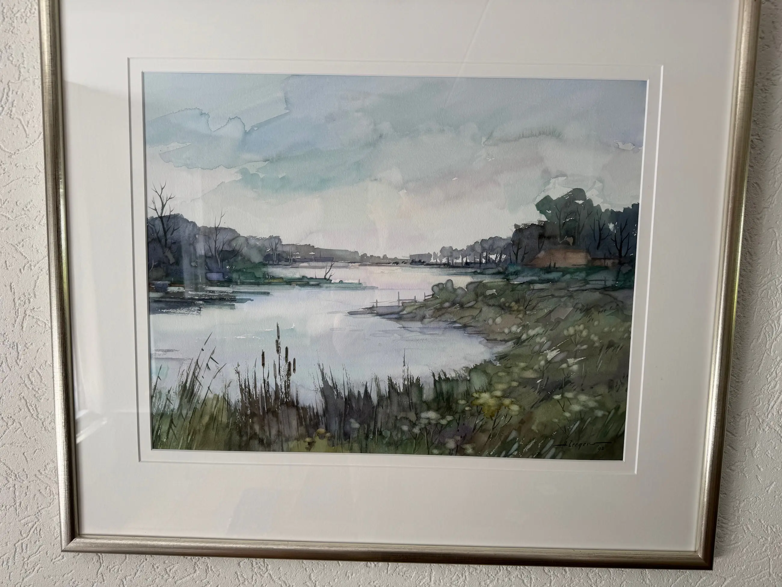 Aquarel zicht op de Oude Maas, Gekocht bij Galerie "Sous-Terre" in Lithoyen, na een expositie 1992-1993. Achter glas. Alles in goede conditie. Originele aankooppapieren beschikbaar.