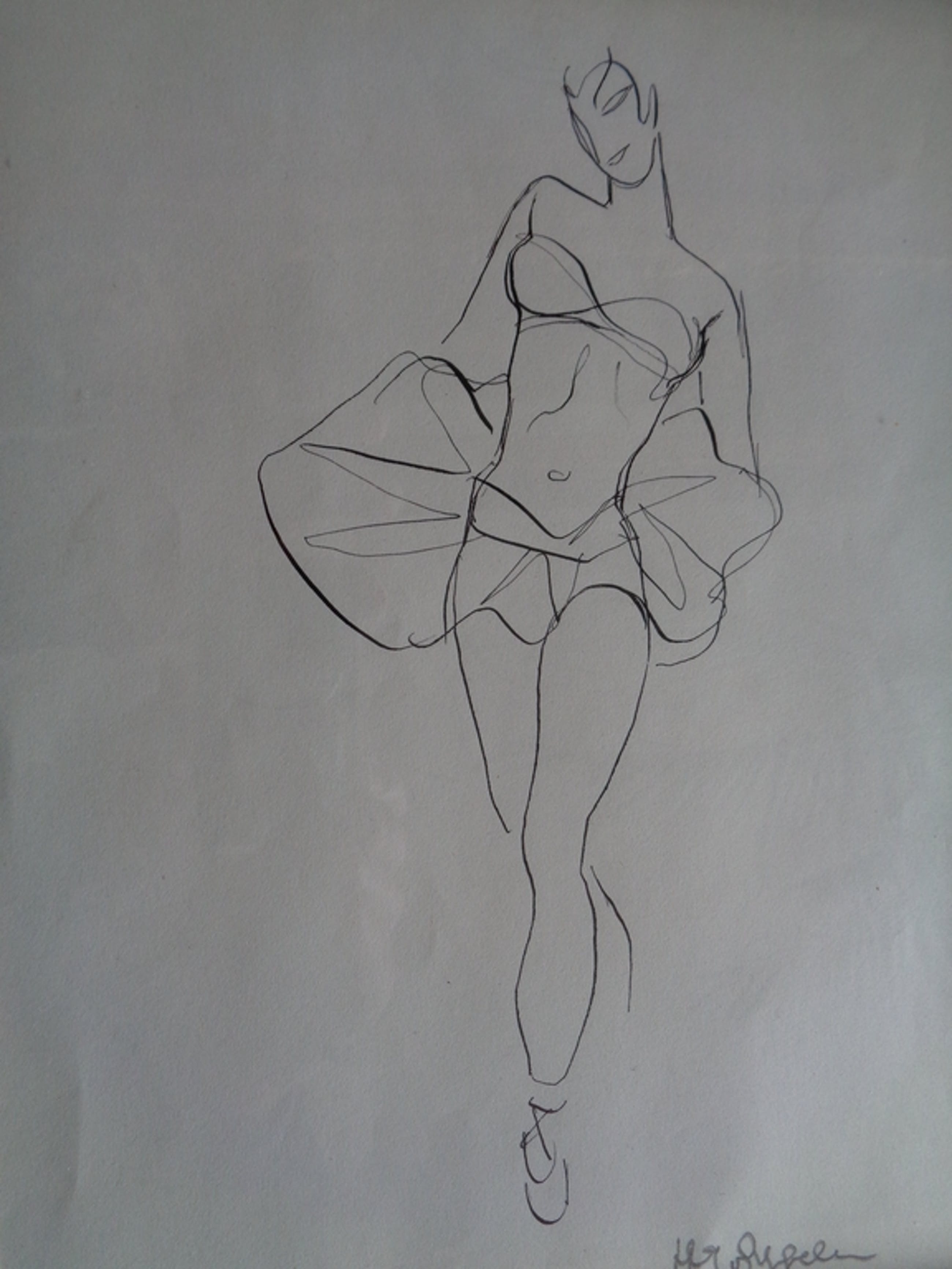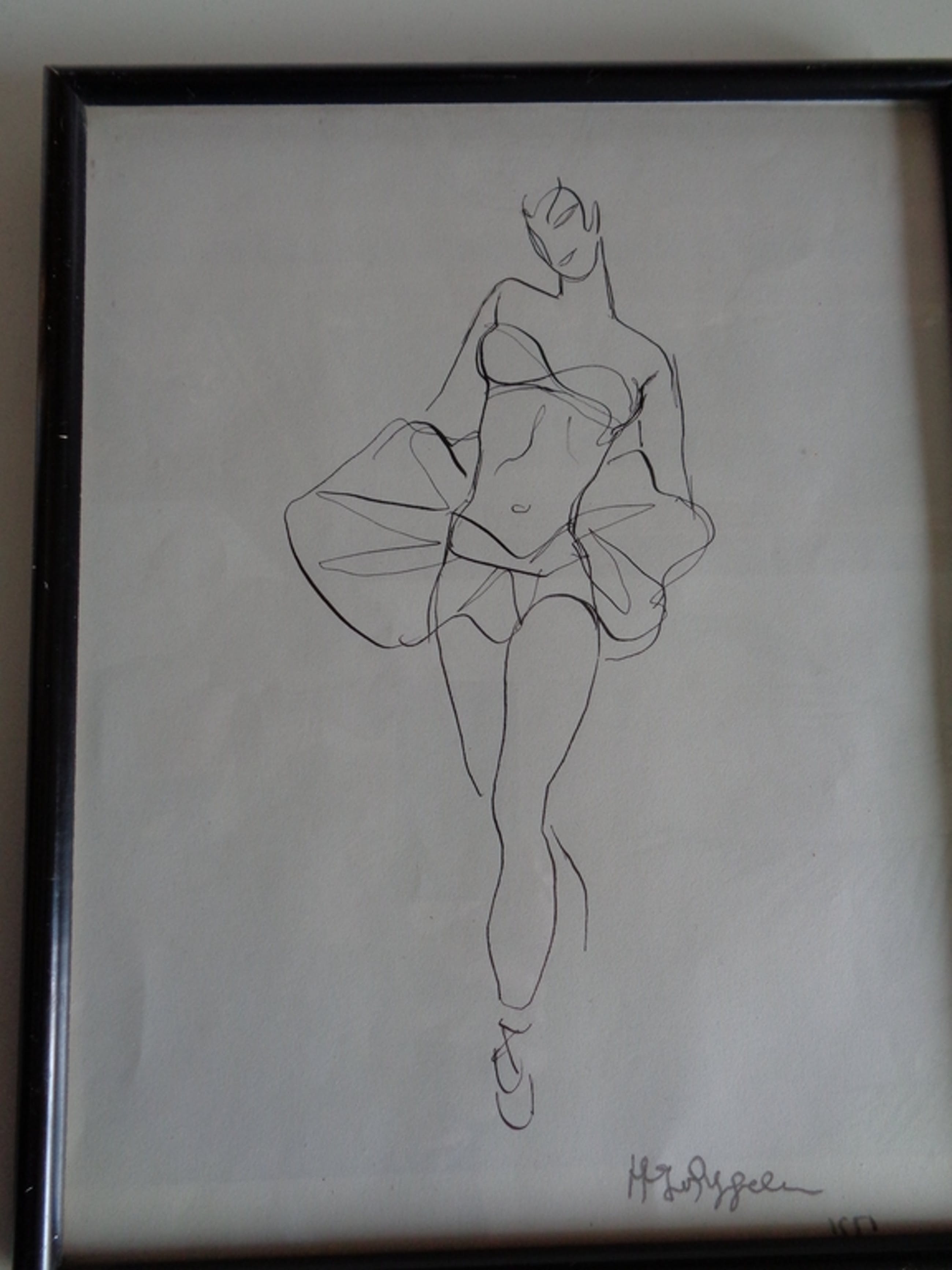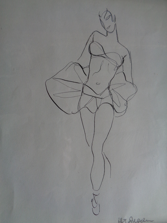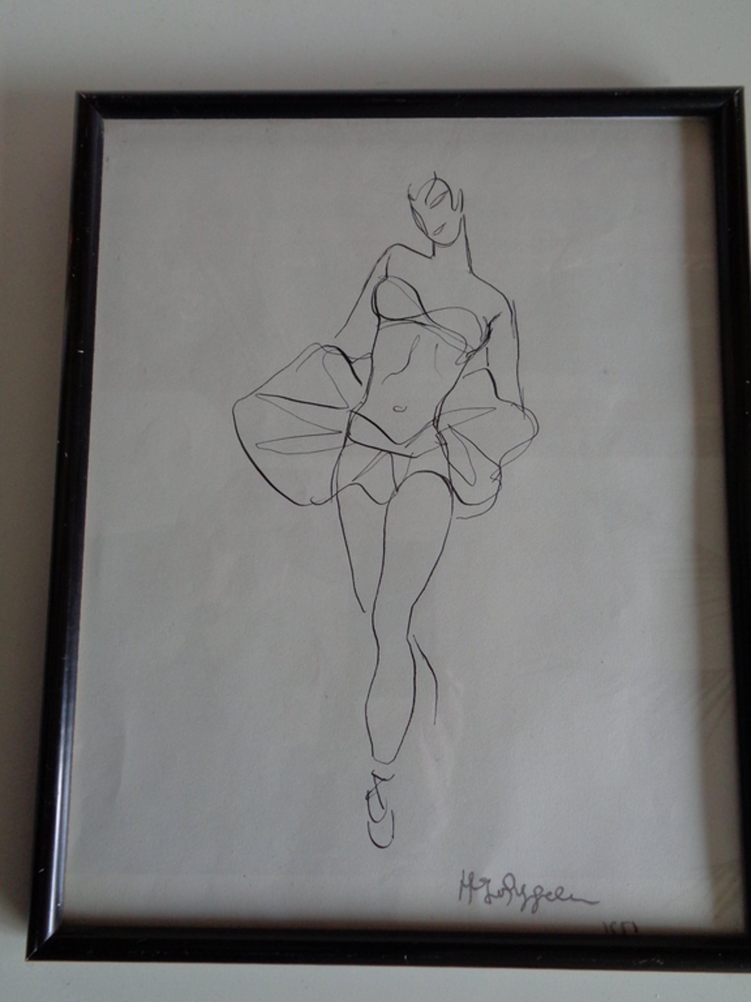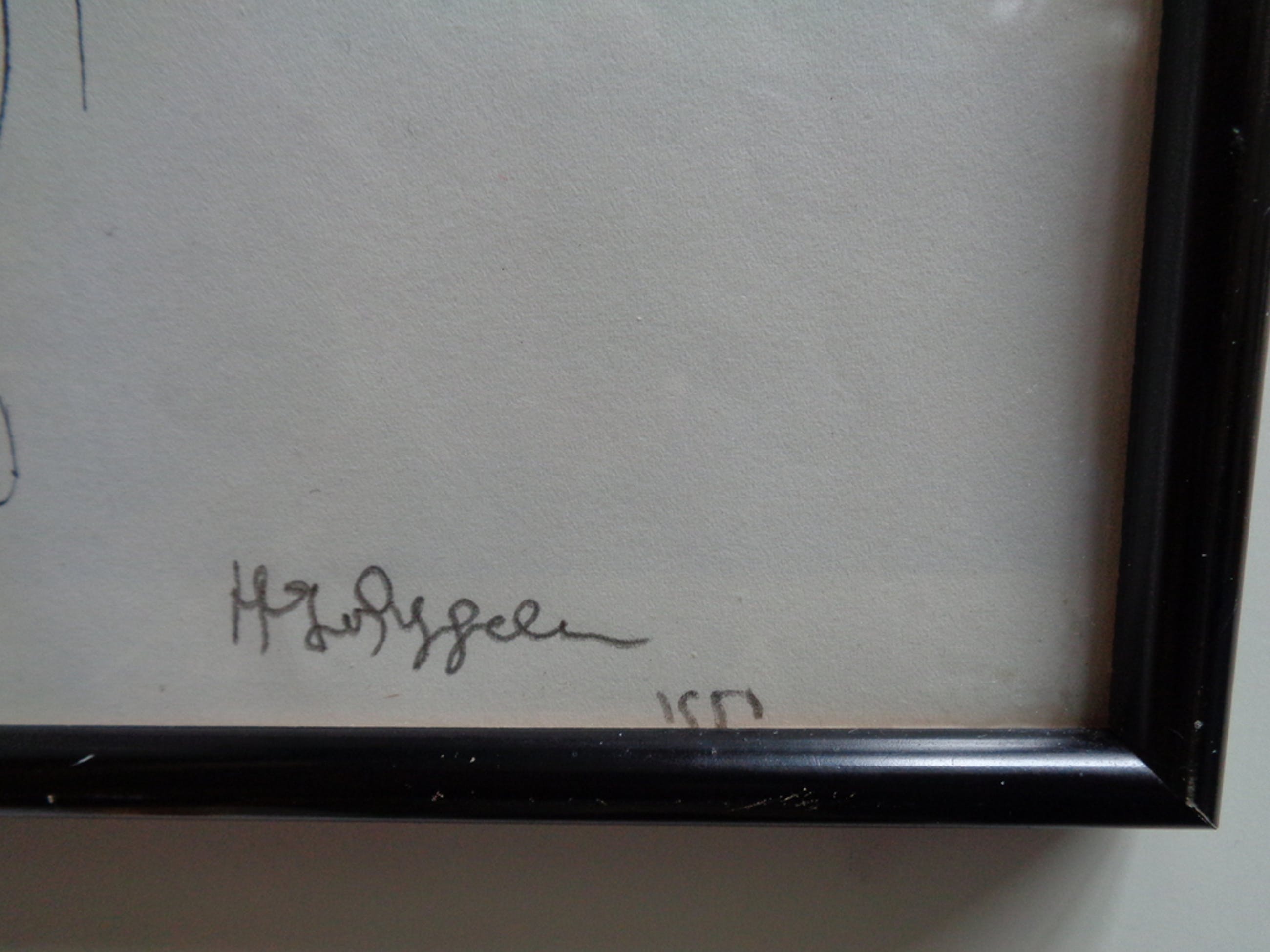 Inkttekening van H.J. van Piggelen, 20x25cm., 1953, gesigneerd r.o.