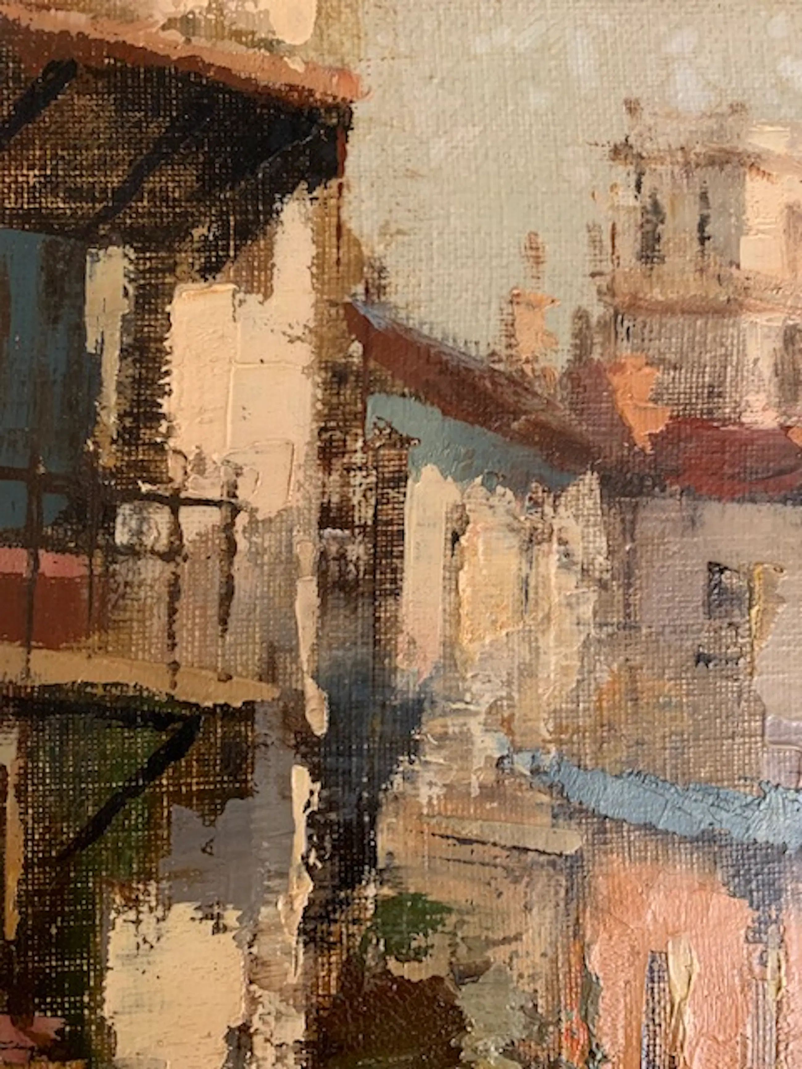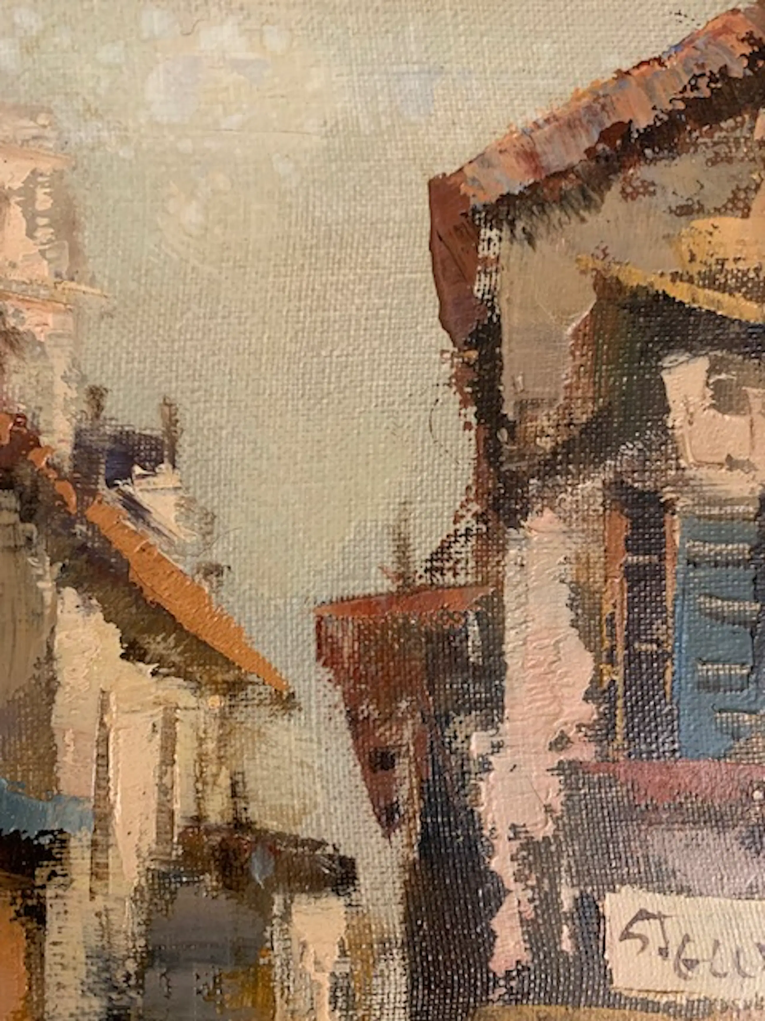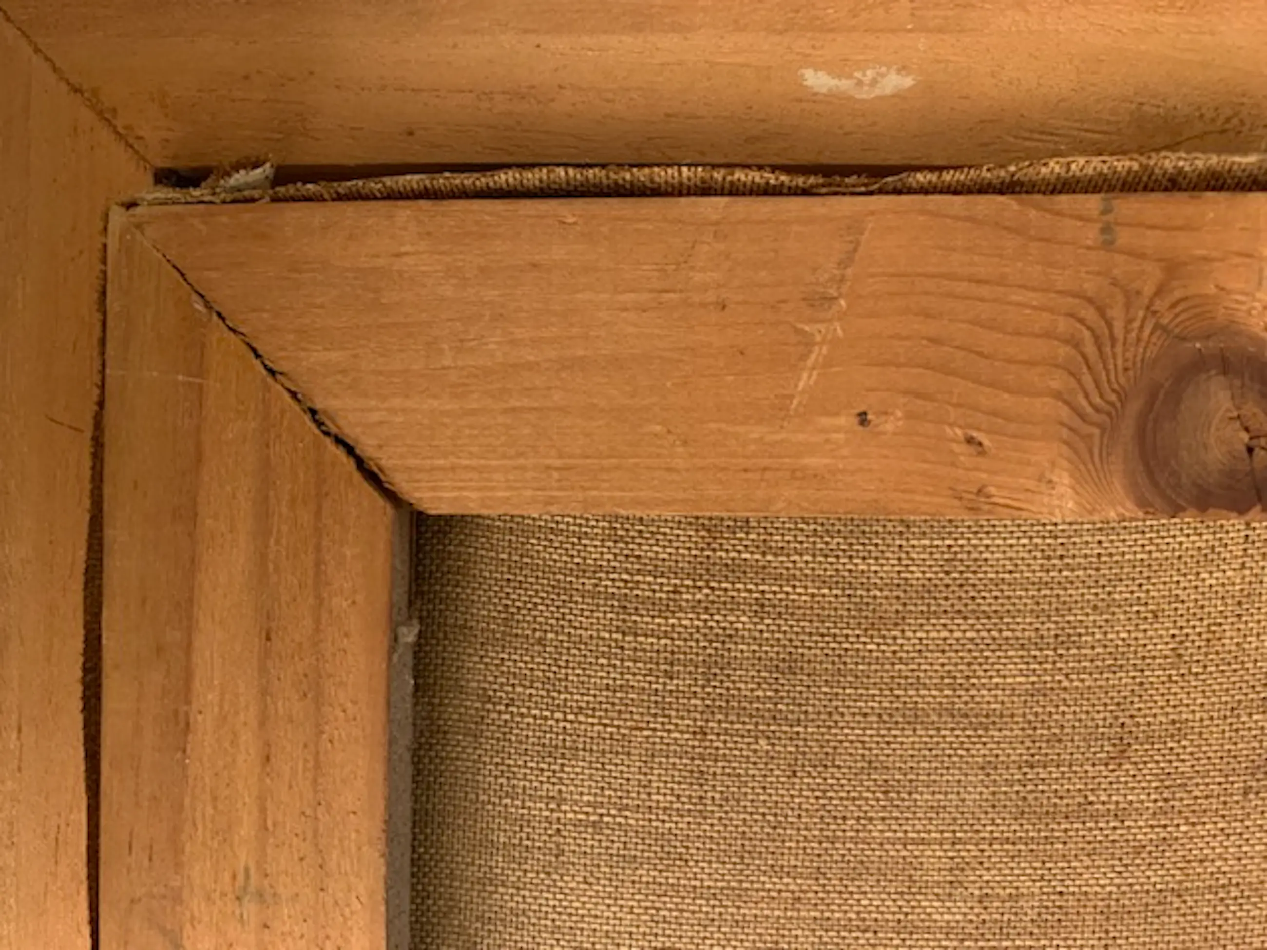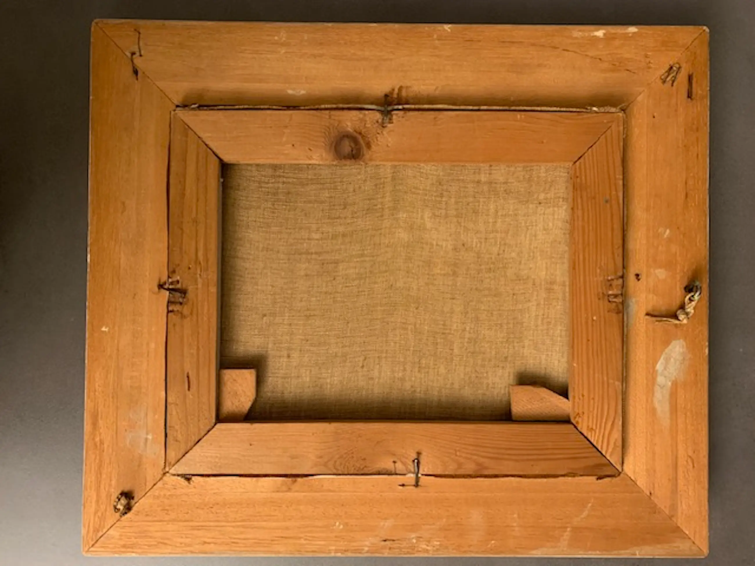 De lijst heeft rechts onderin een kleine beschadiging. Het kunstwerk is sinds circa 1950 in familiebezit. Het schilderij is verder in goede staat.
